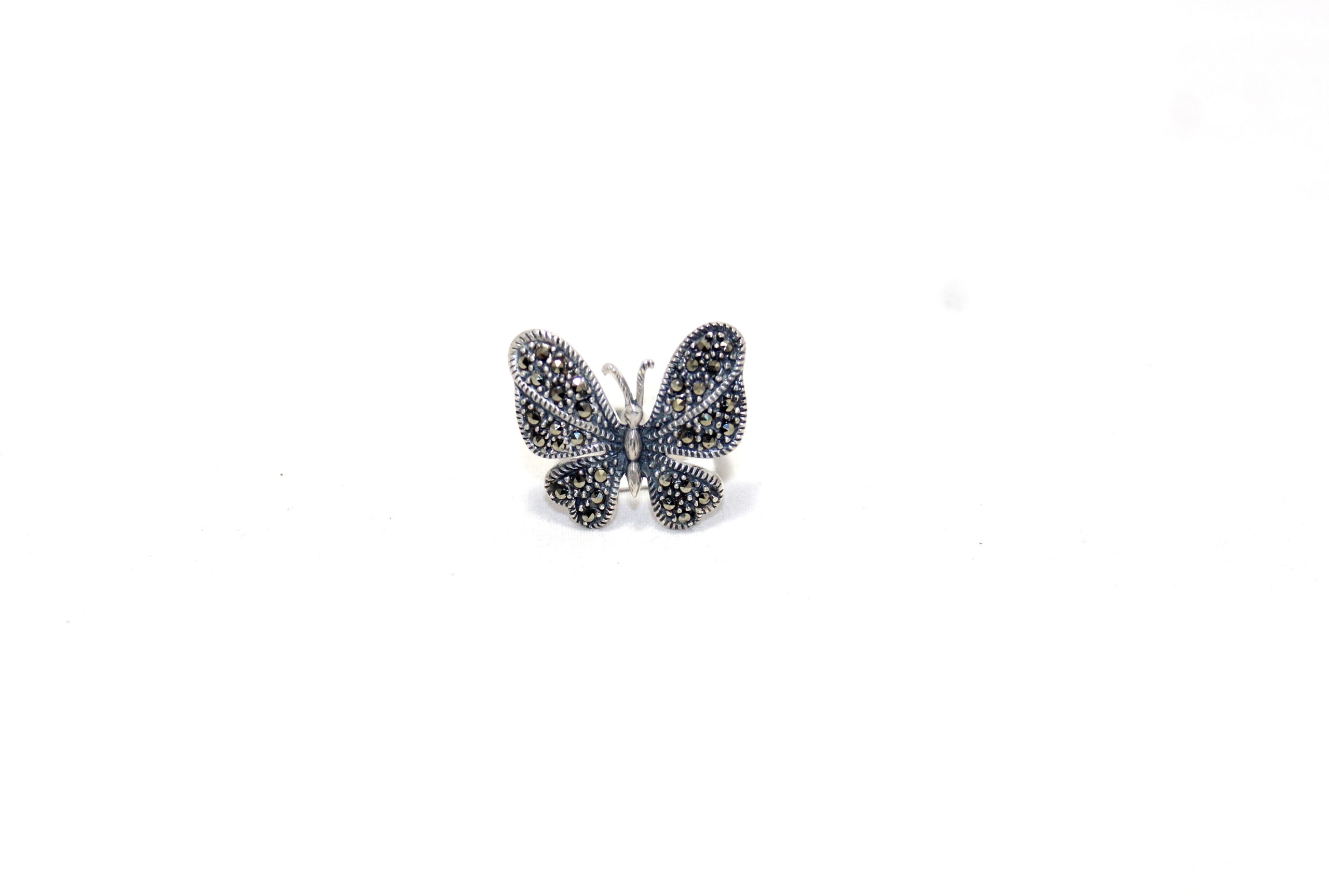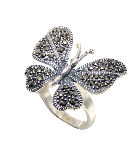 Butterfly Ring 925 Sterling Silver Marcasite Gem Stone Handmade Women Gift H656