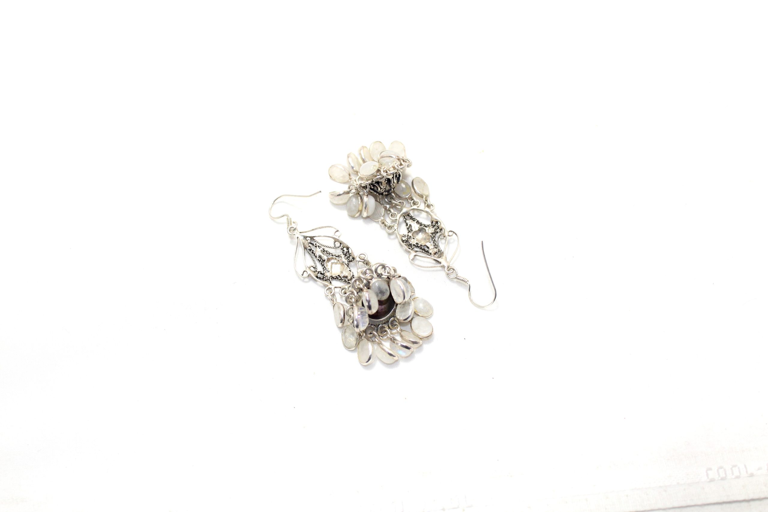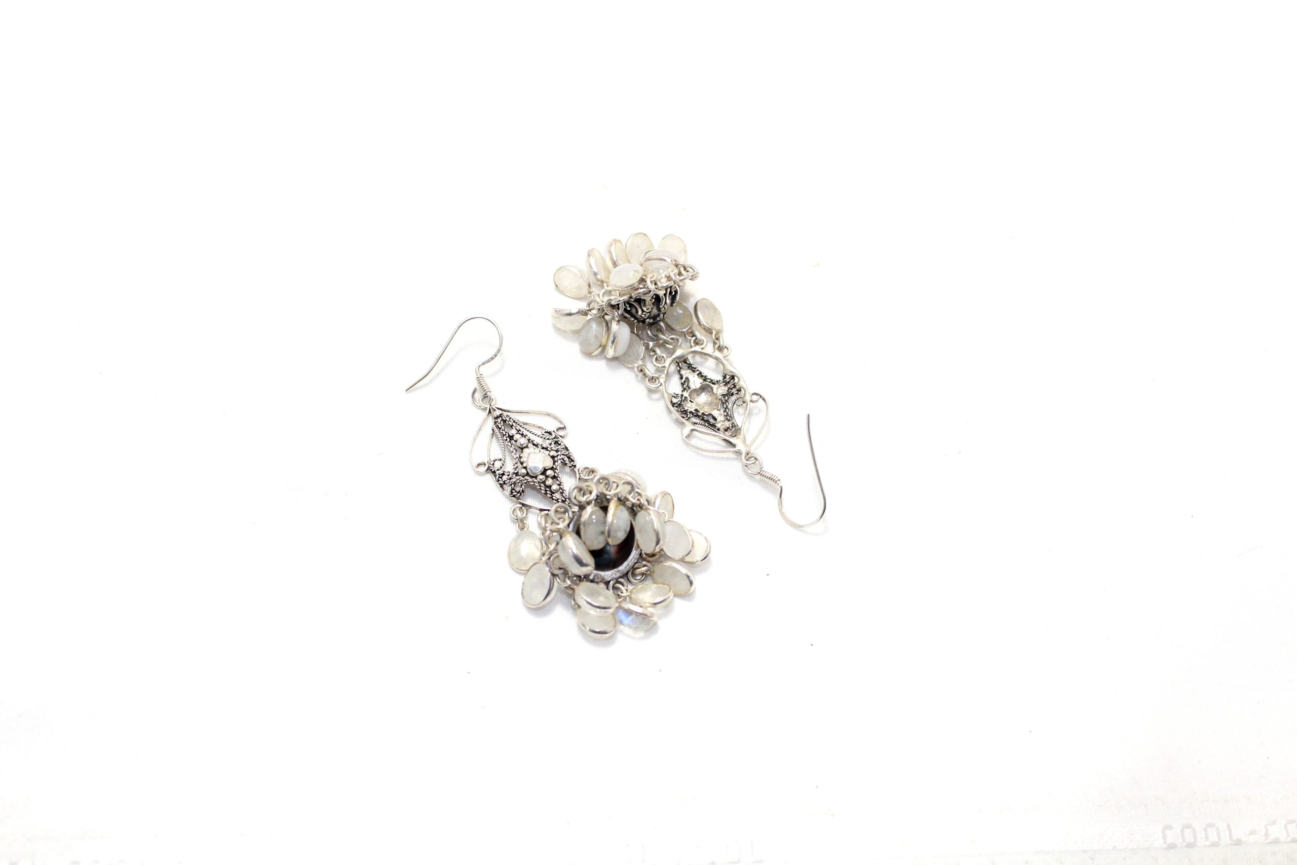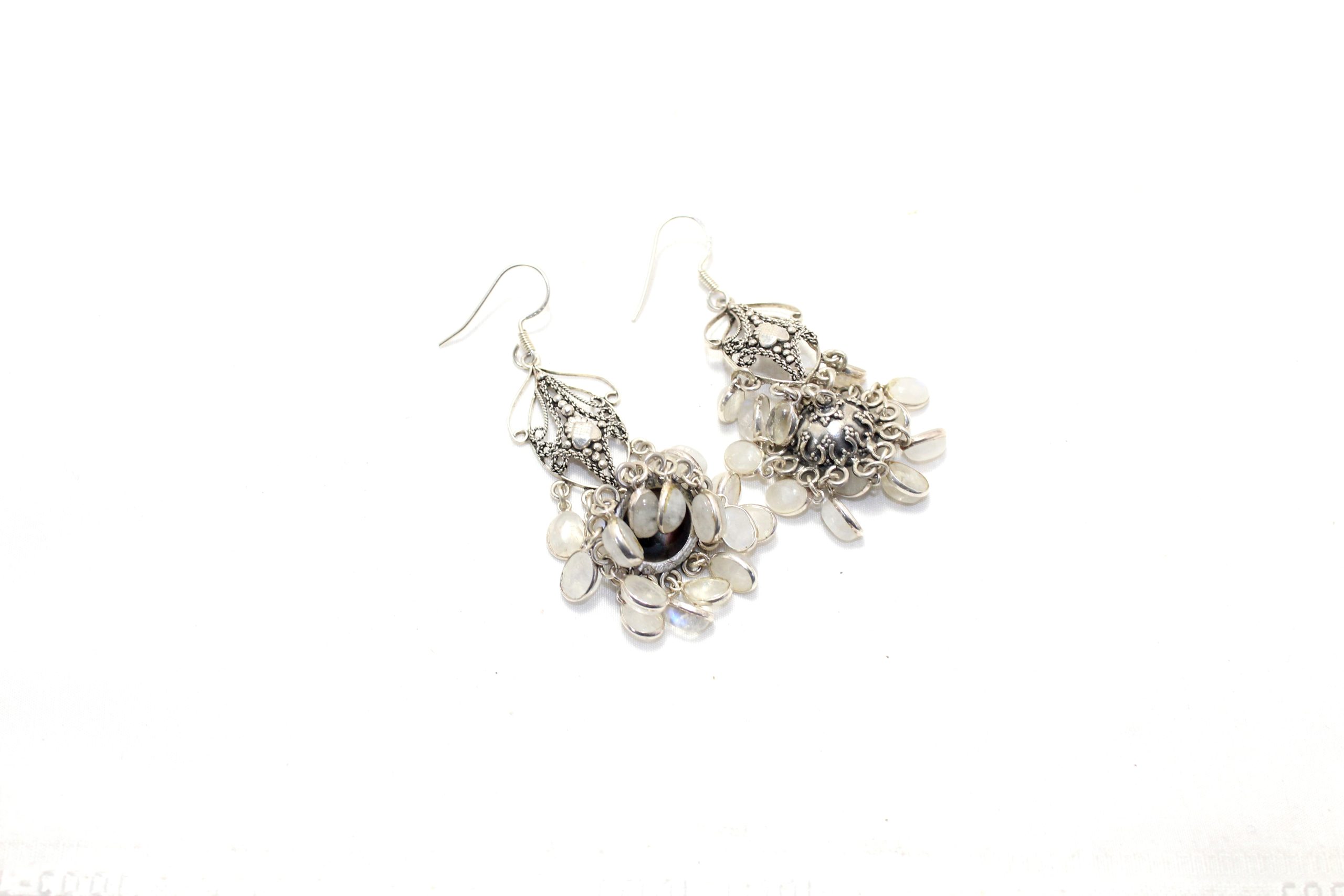 Dangle Earrings 925 Sterling Silver Natural Rainbow Moonstone Gem Stone Handmade Women Gift Traditional H696
