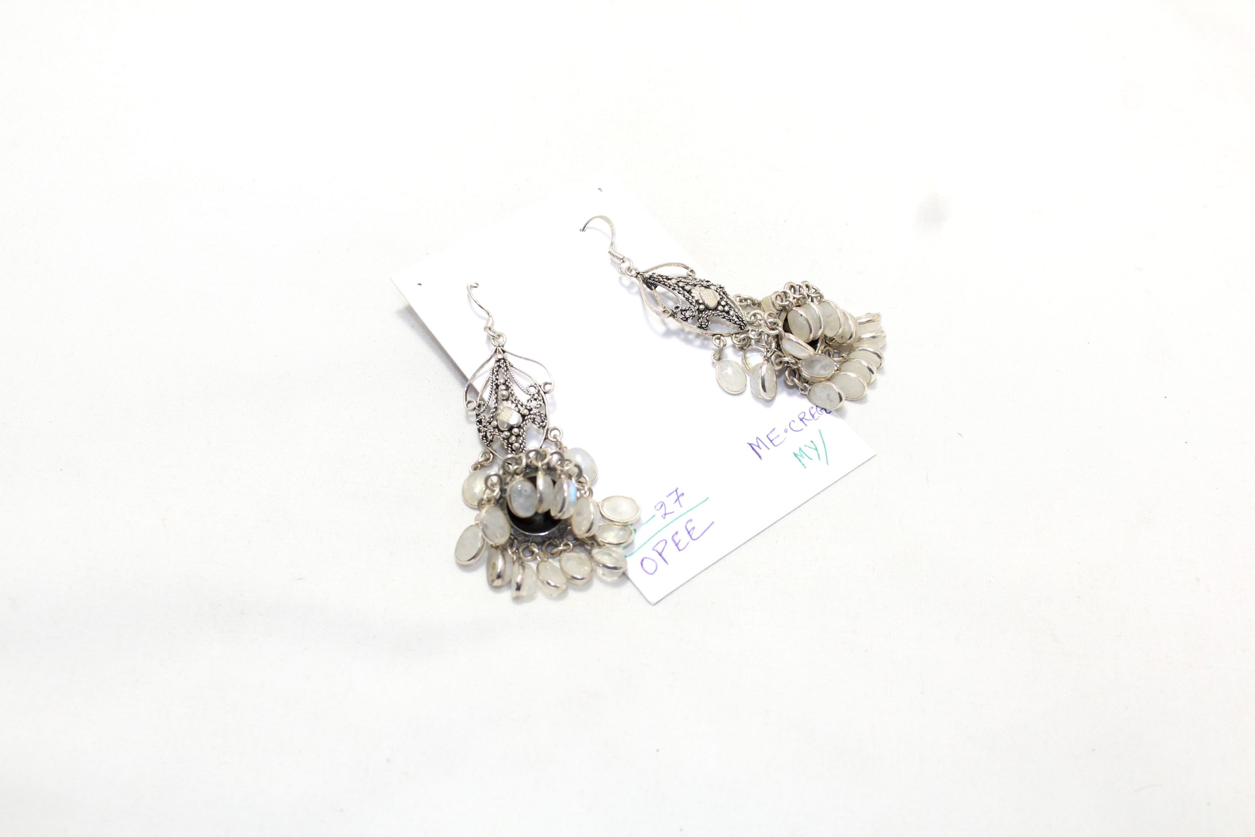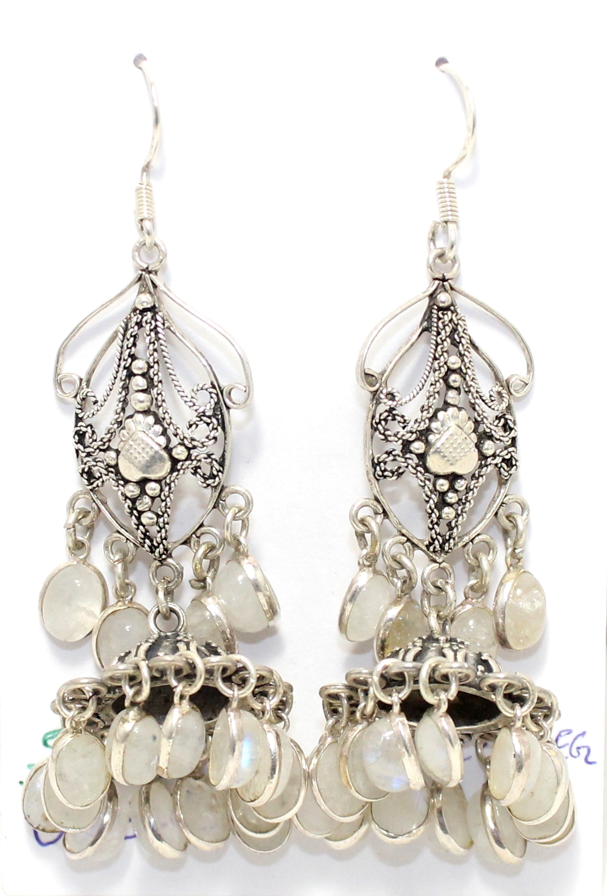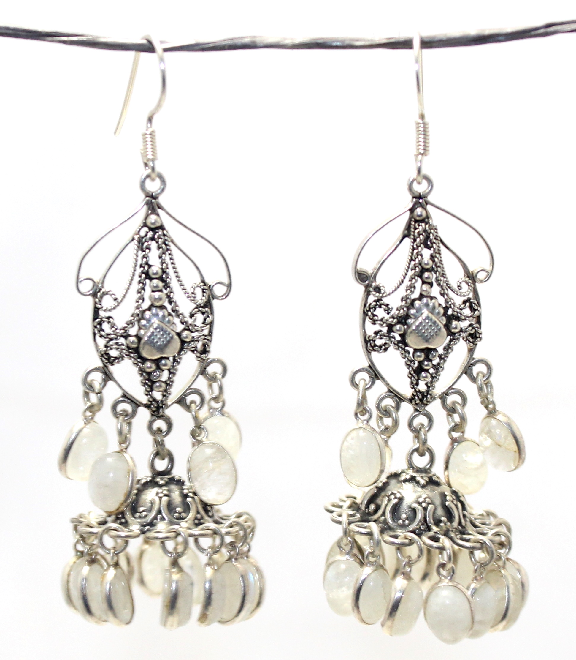 Dangle Earrings 925 Sterling Silver Natural Rainbow Moonstone Gem Stone Handmade Women Gift Traditional H696