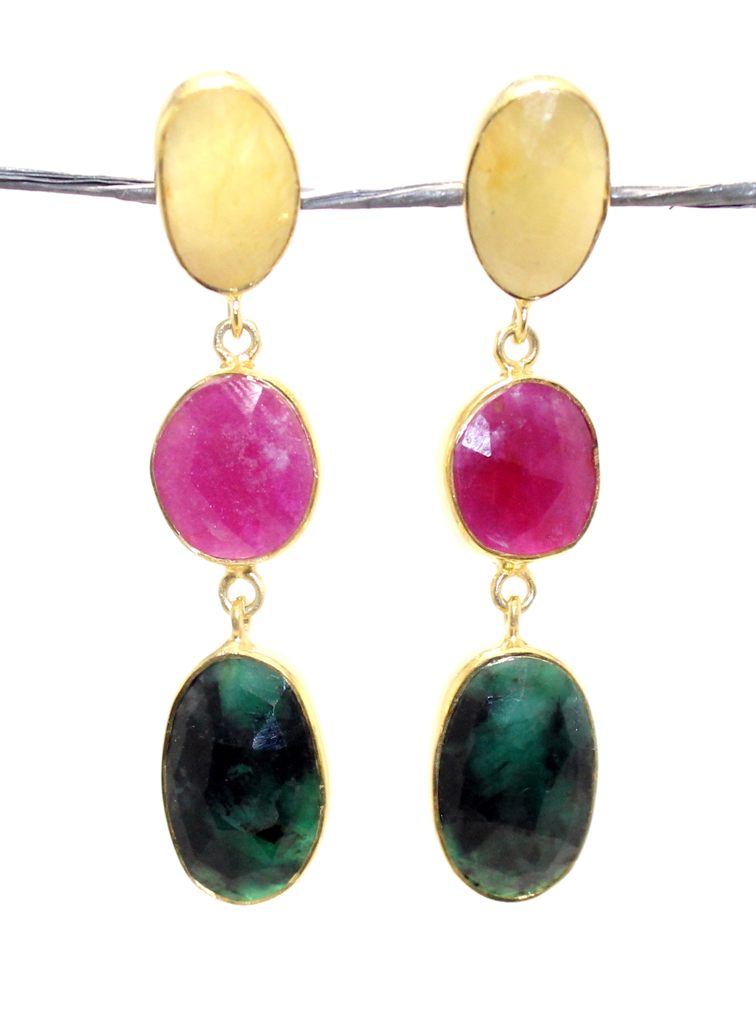Home » Shop » Rajasthan Gems Earrings 925 Sterling Silver Gold Rhodium Designer Natural Multi Sapphire Gem Stone Gemstone Handmade Gift Women H745