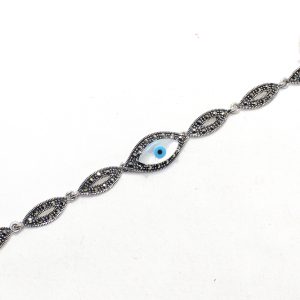 Evil Eye Charm Bracelet 925 Sterling Silver Jewelry Marcasite Stone Women Handmade Gift Designer H592