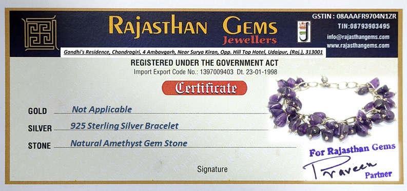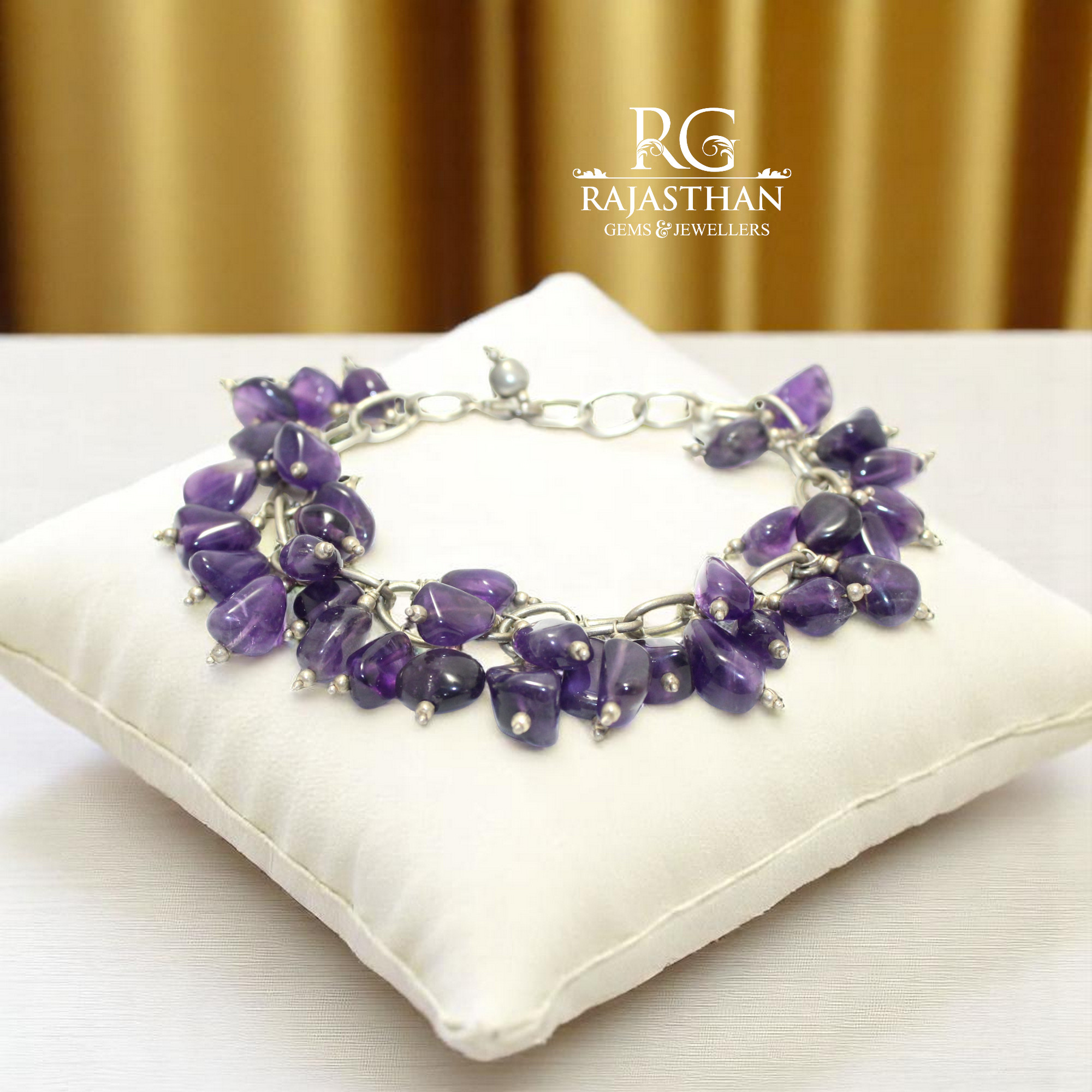 Rahasthan Gems Bracelet Silver Sterling 925 Jewelry Natural Amethyst Gem Stone Women Handmade Gift F774