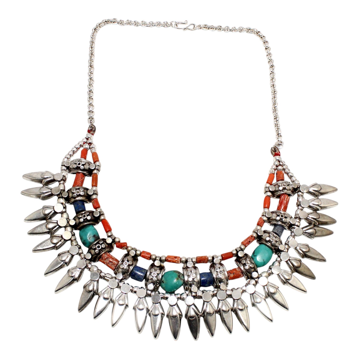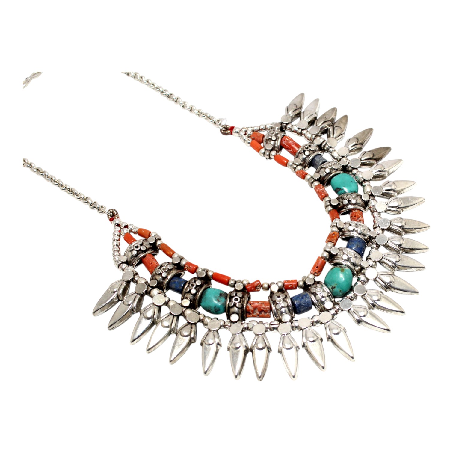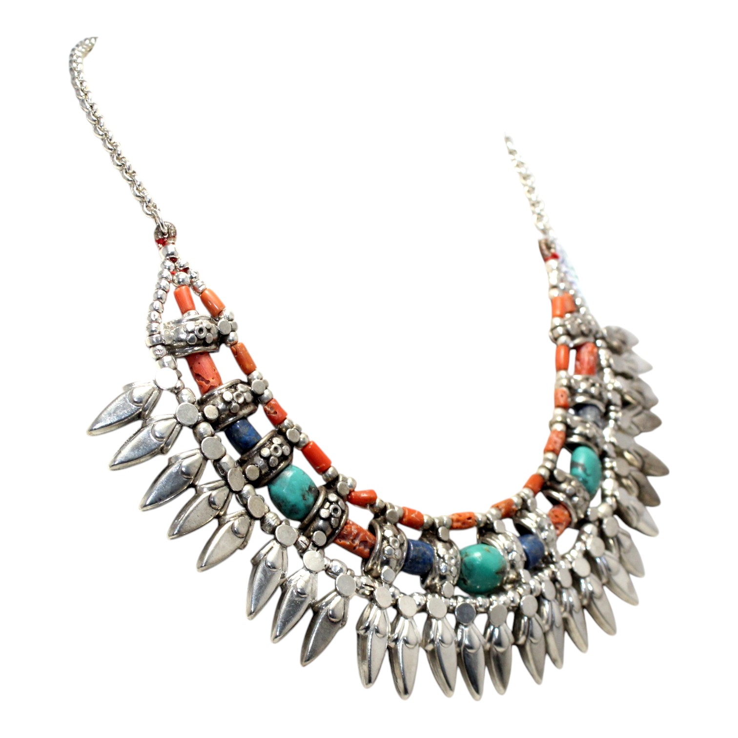 Rajasthan Gems Antique Necklace Tibetan Old Silver Natural Turquoise & Lapis Lazuli Gem Stone Handmade Women Gift j805
