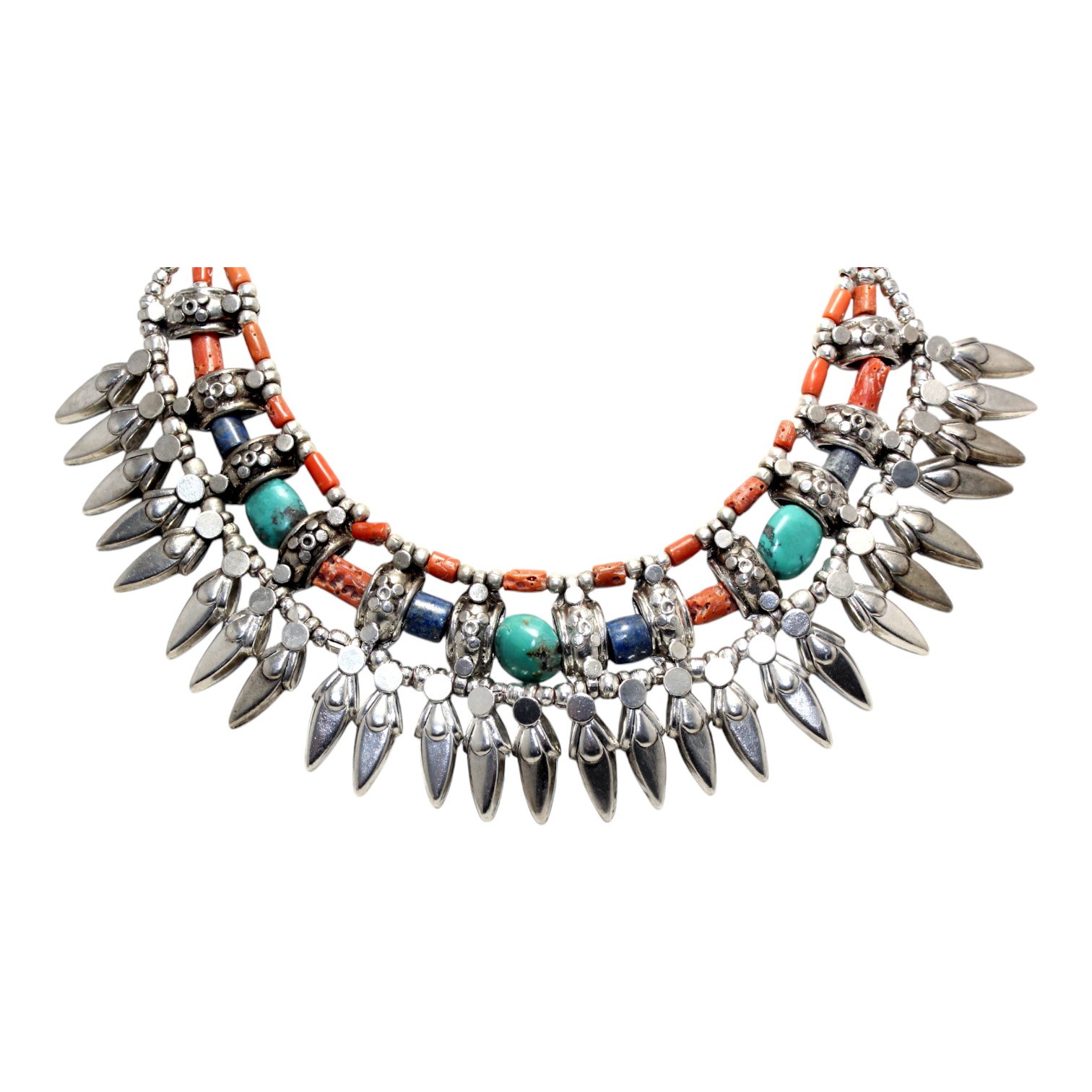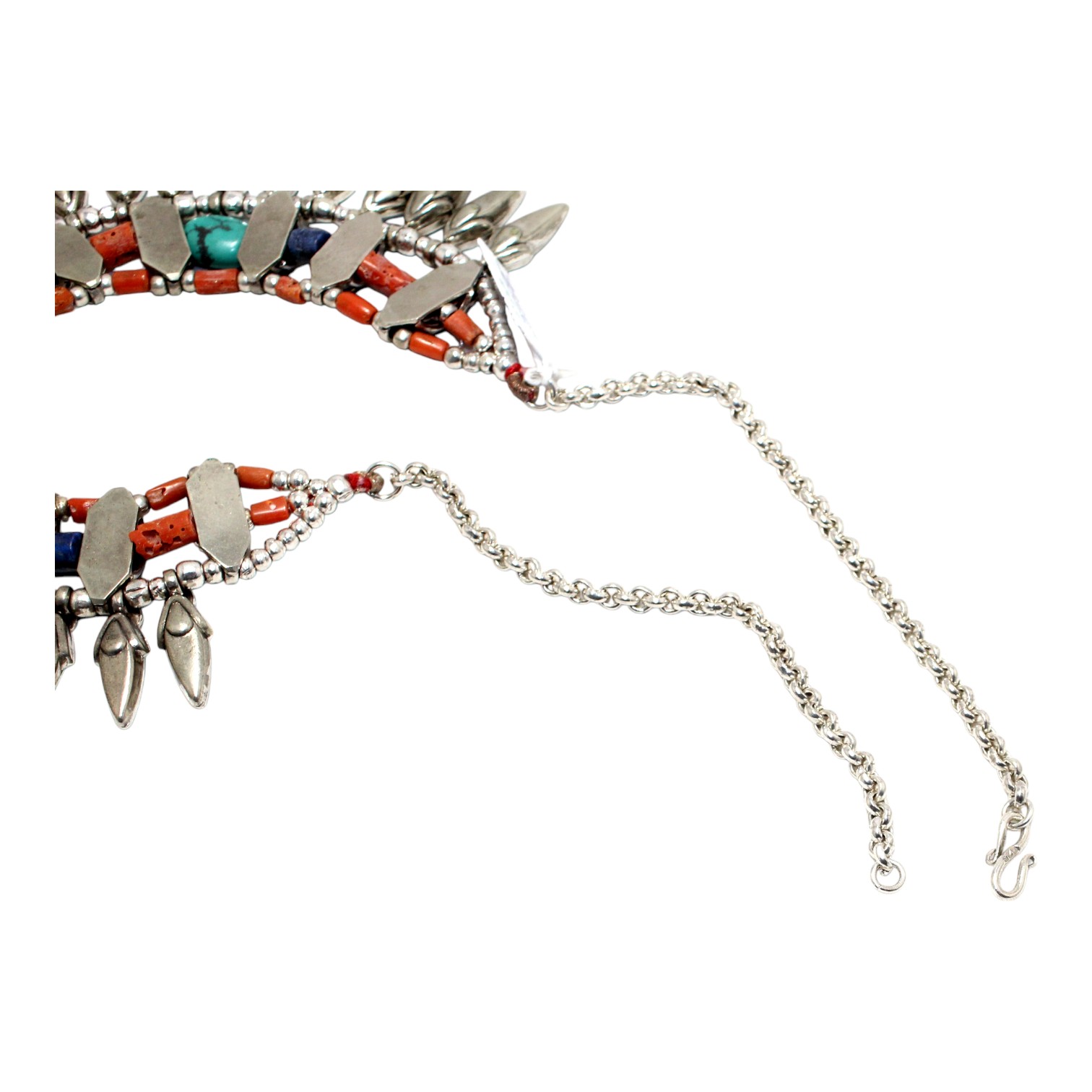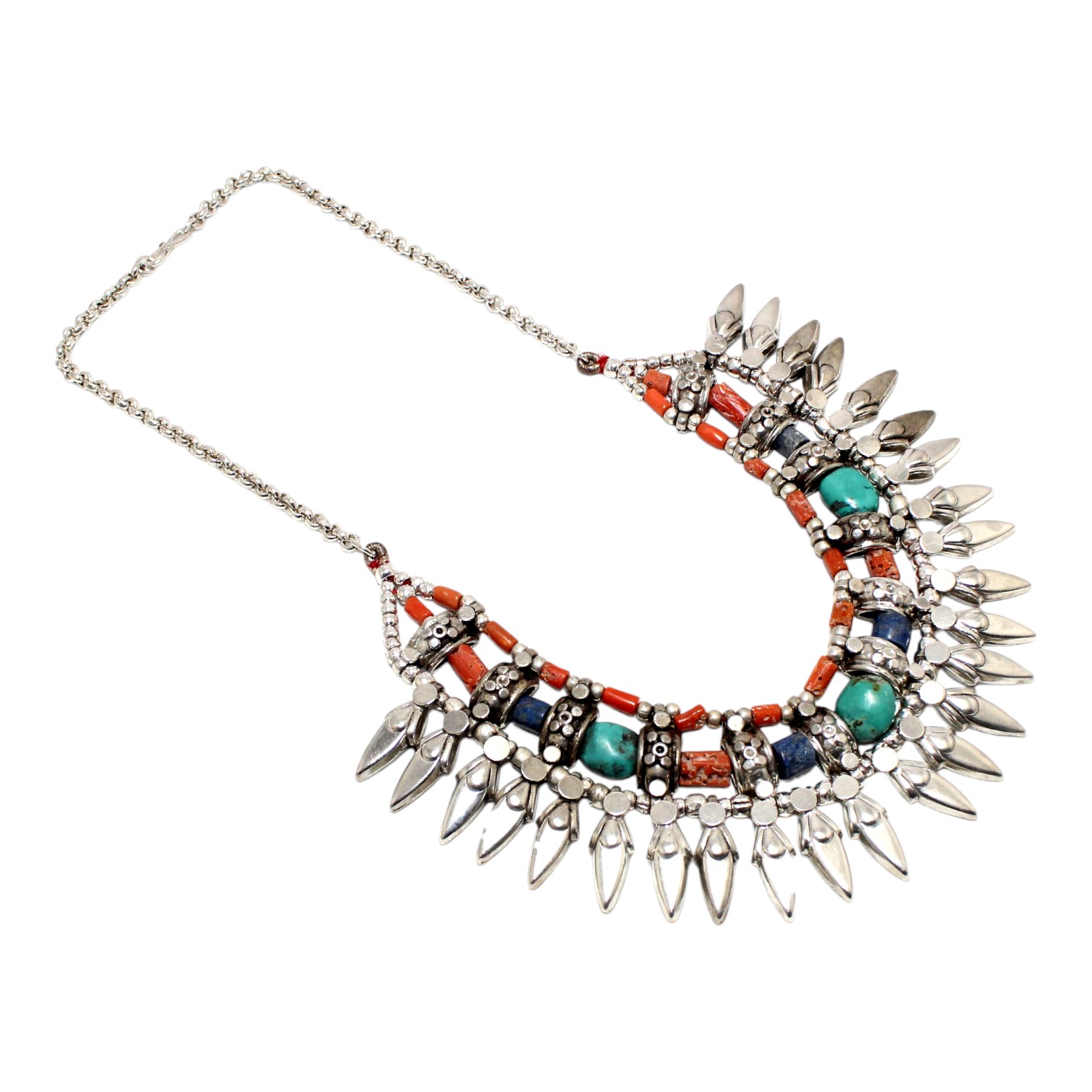 Rajasthan Gems Antique Necklace Tibetan Old Silver Natural Turquoise & Lapis Lazuli Gem Stone Handmade Women Gift j805