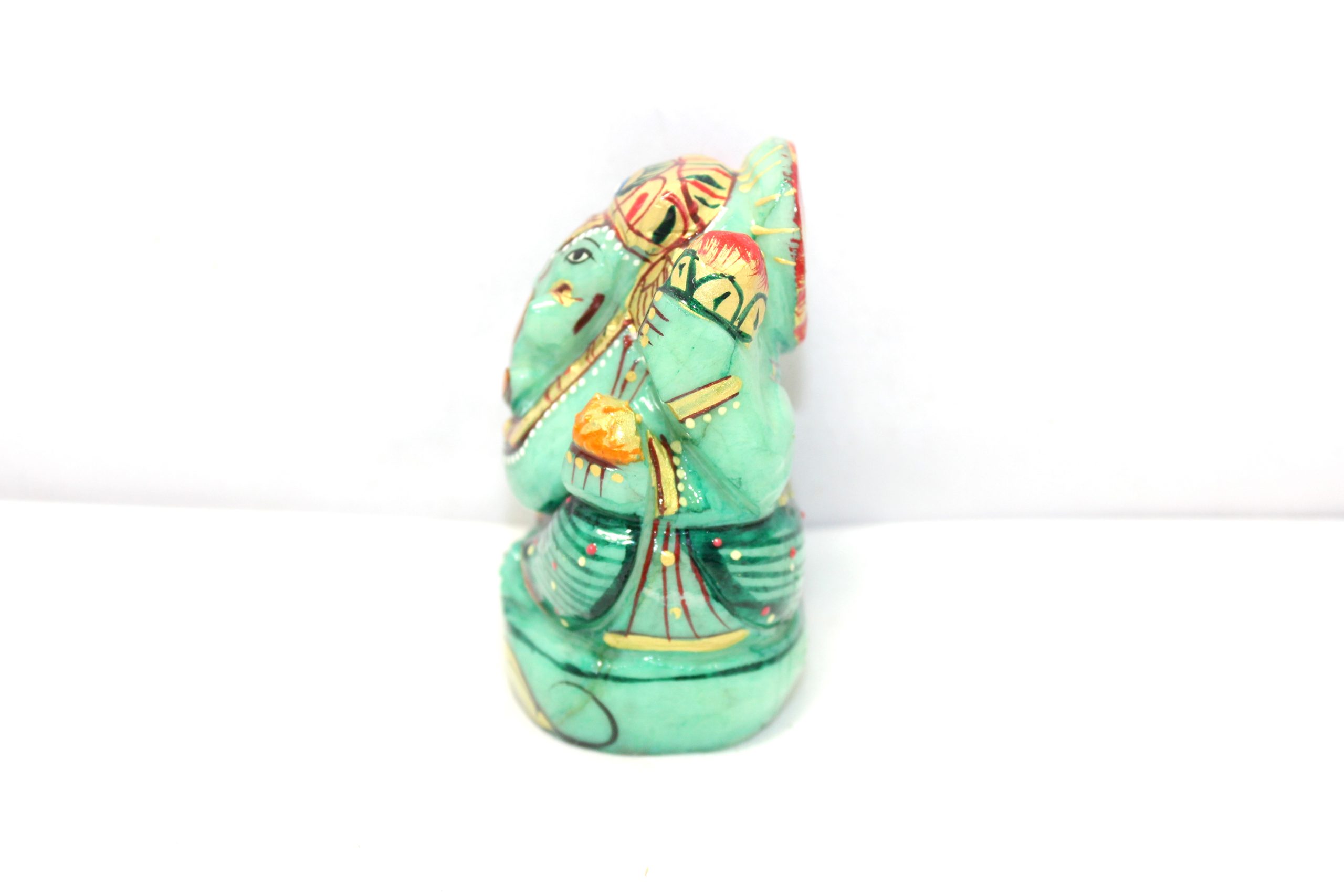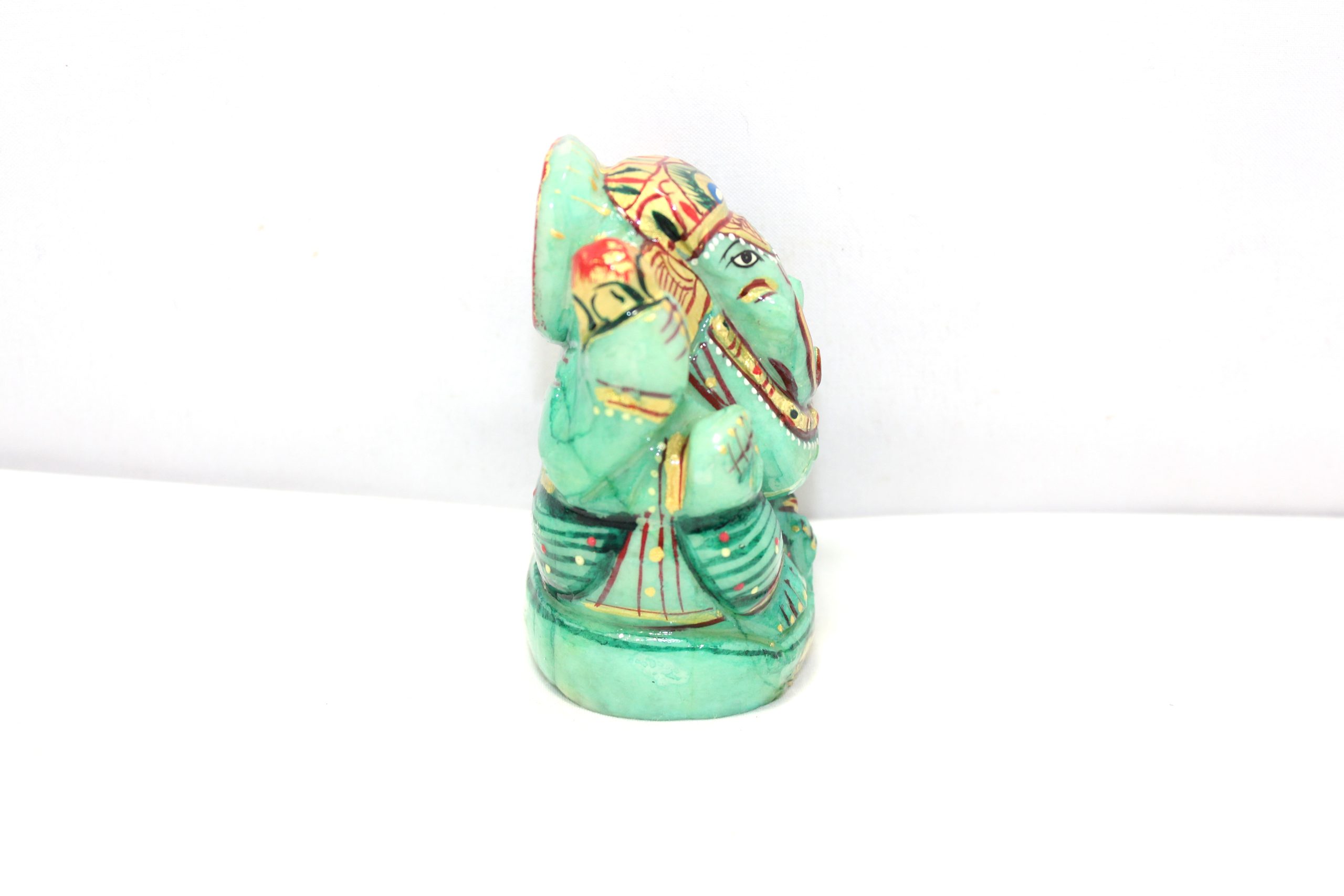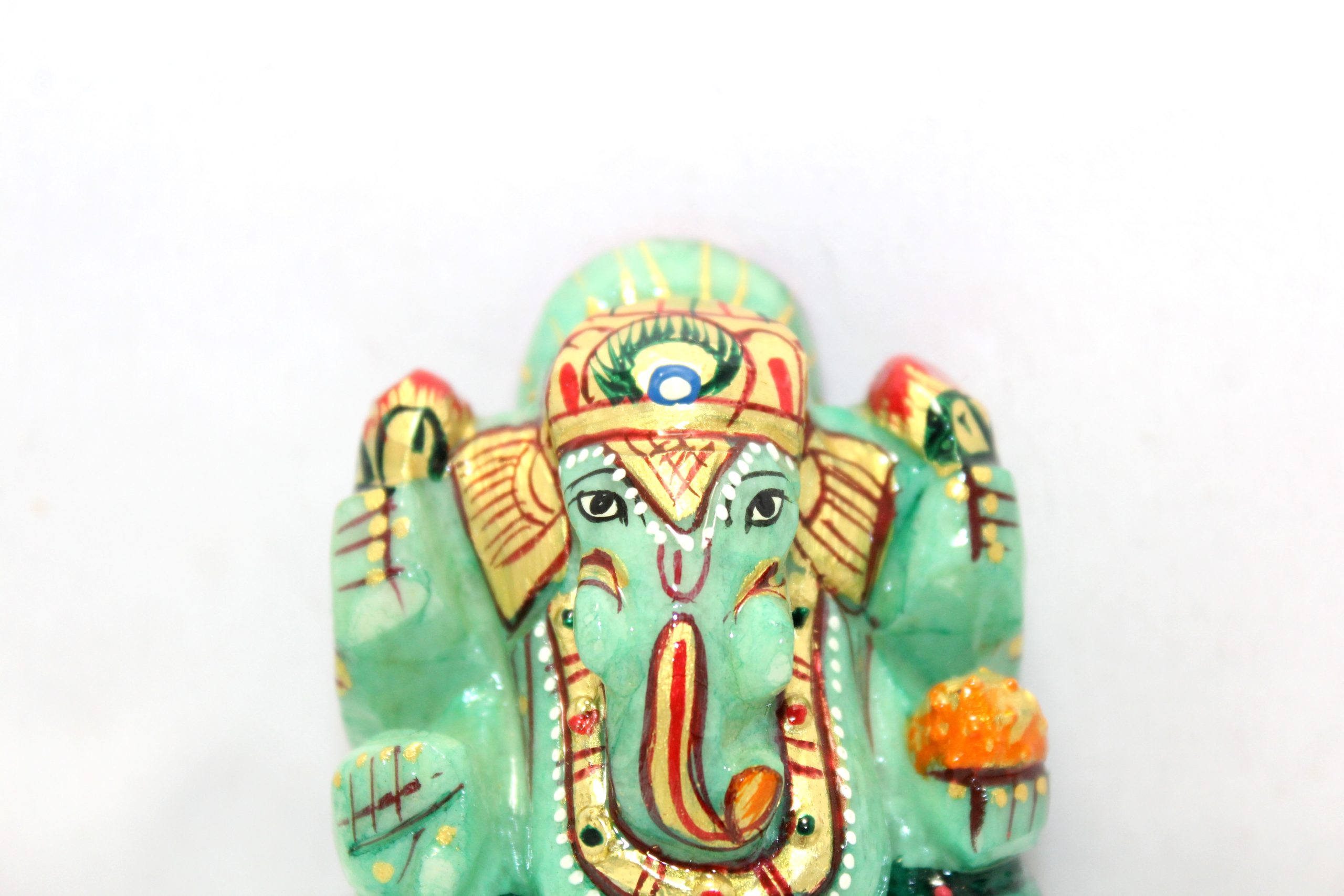 Rajasthan Gems Aventurine Idol Statue Ganesha Ganesh Figurine Figure Green Natural Jade Gem Stone God Hindu Religious Hand Paint Painted Gemstone Gift Handmade Home Decor F896