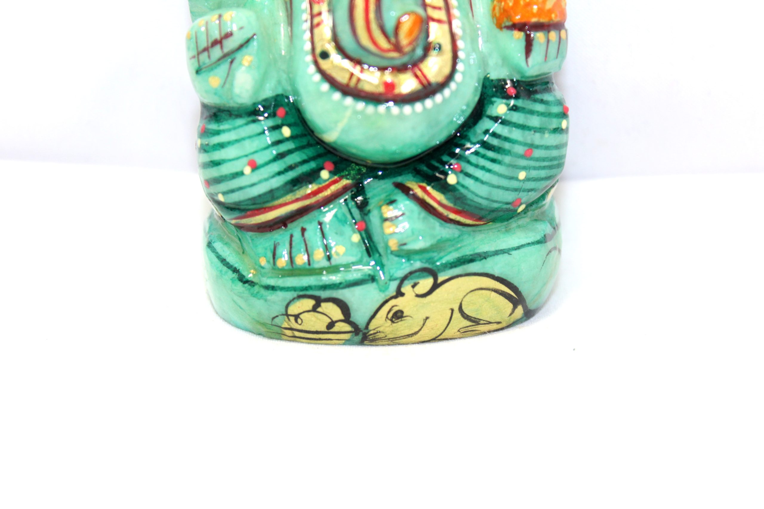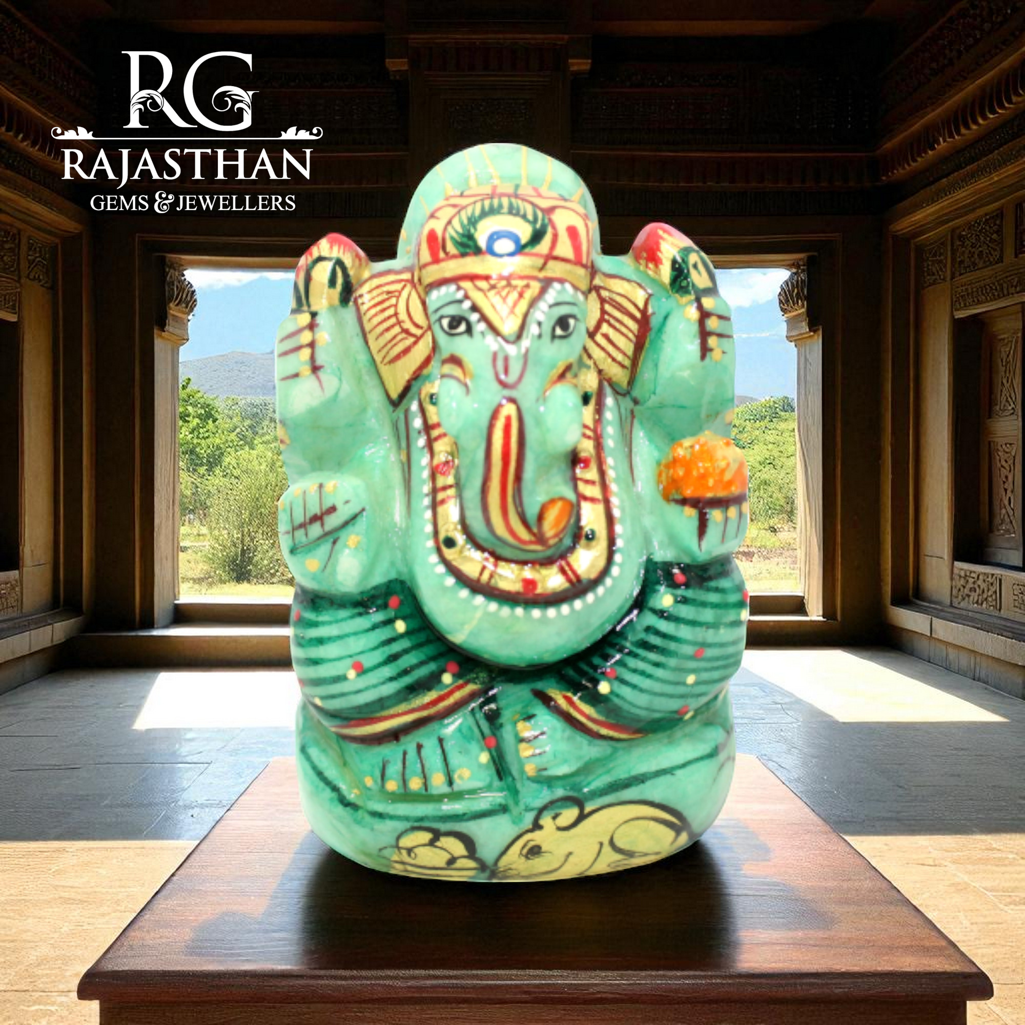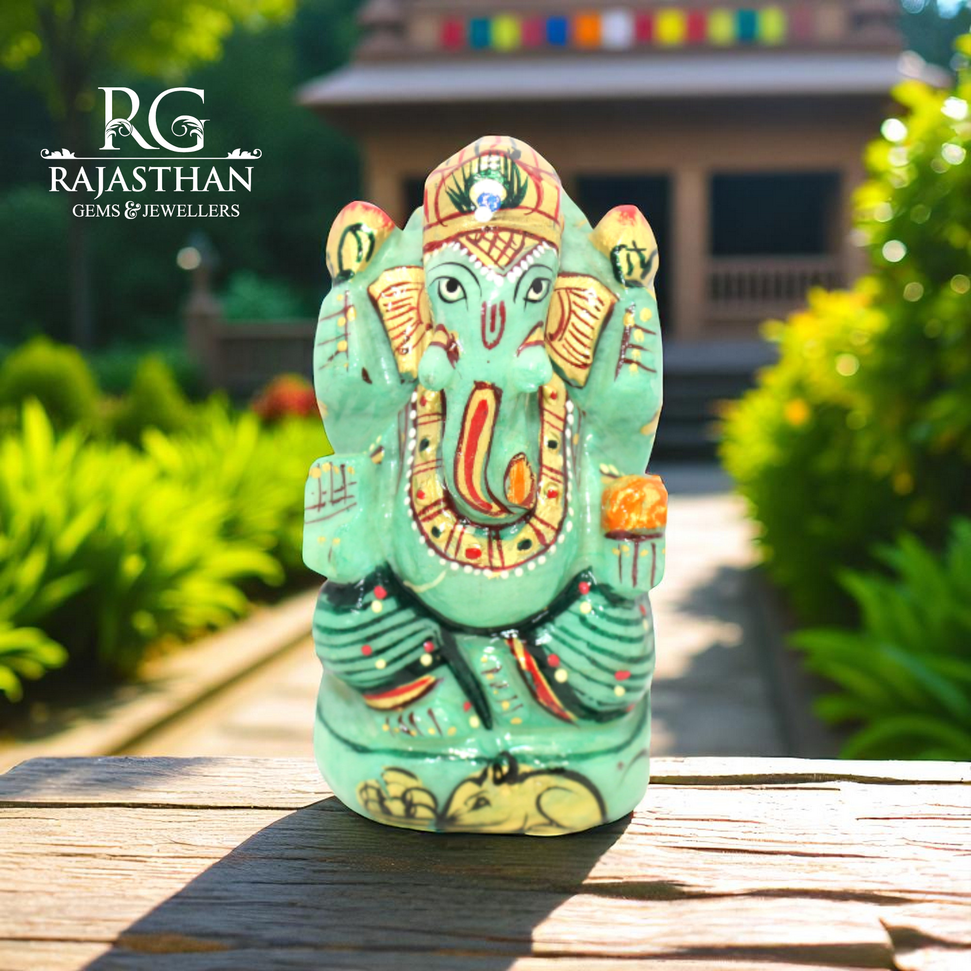 Rajasthan Gems Aventurine Idol Statue Ganesha Ganesh Figurine Figure Green Natural Jade Gem Stone God Hindu Religious Hand Paint Painted Gemstone Gift Handmade Home Decor F896