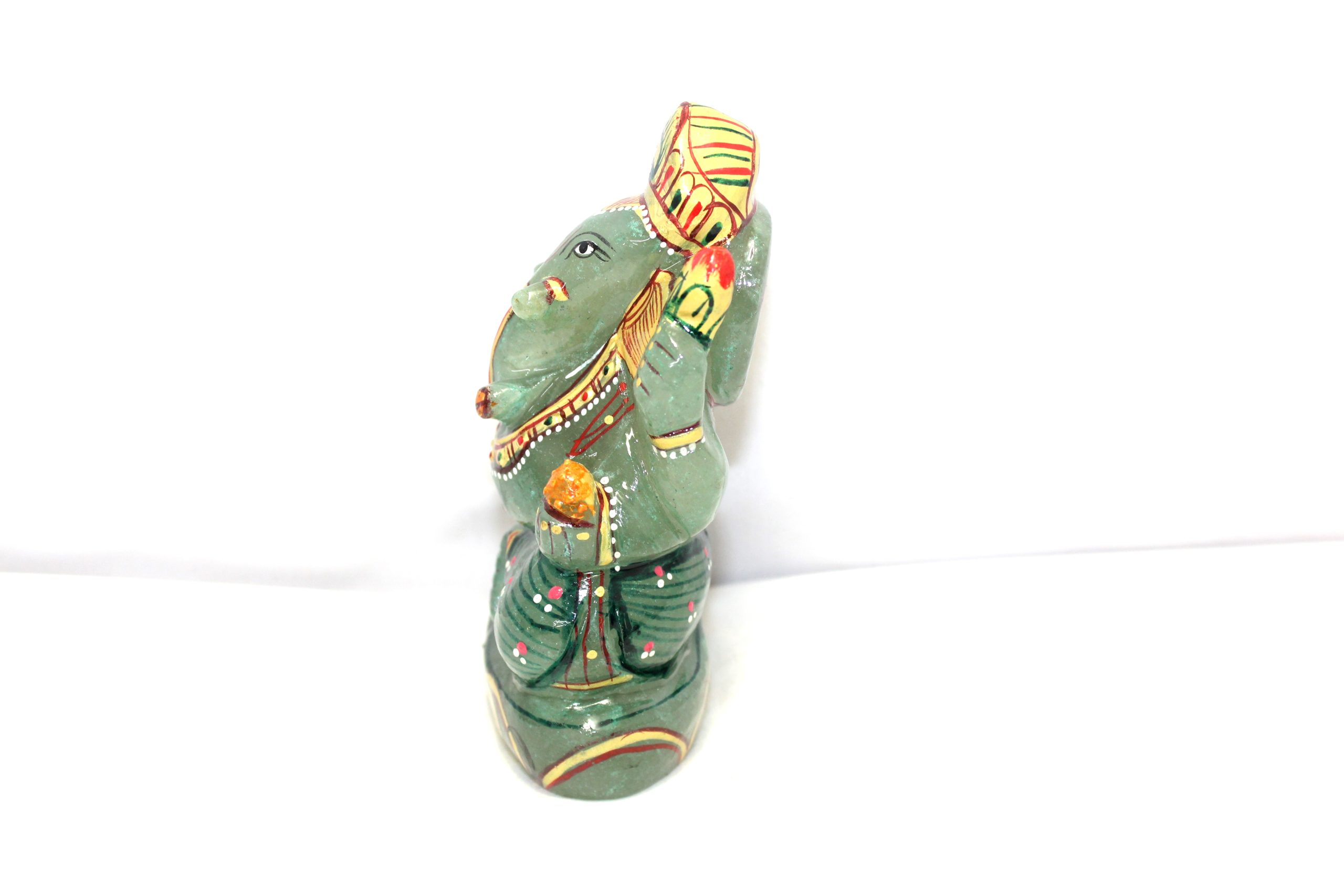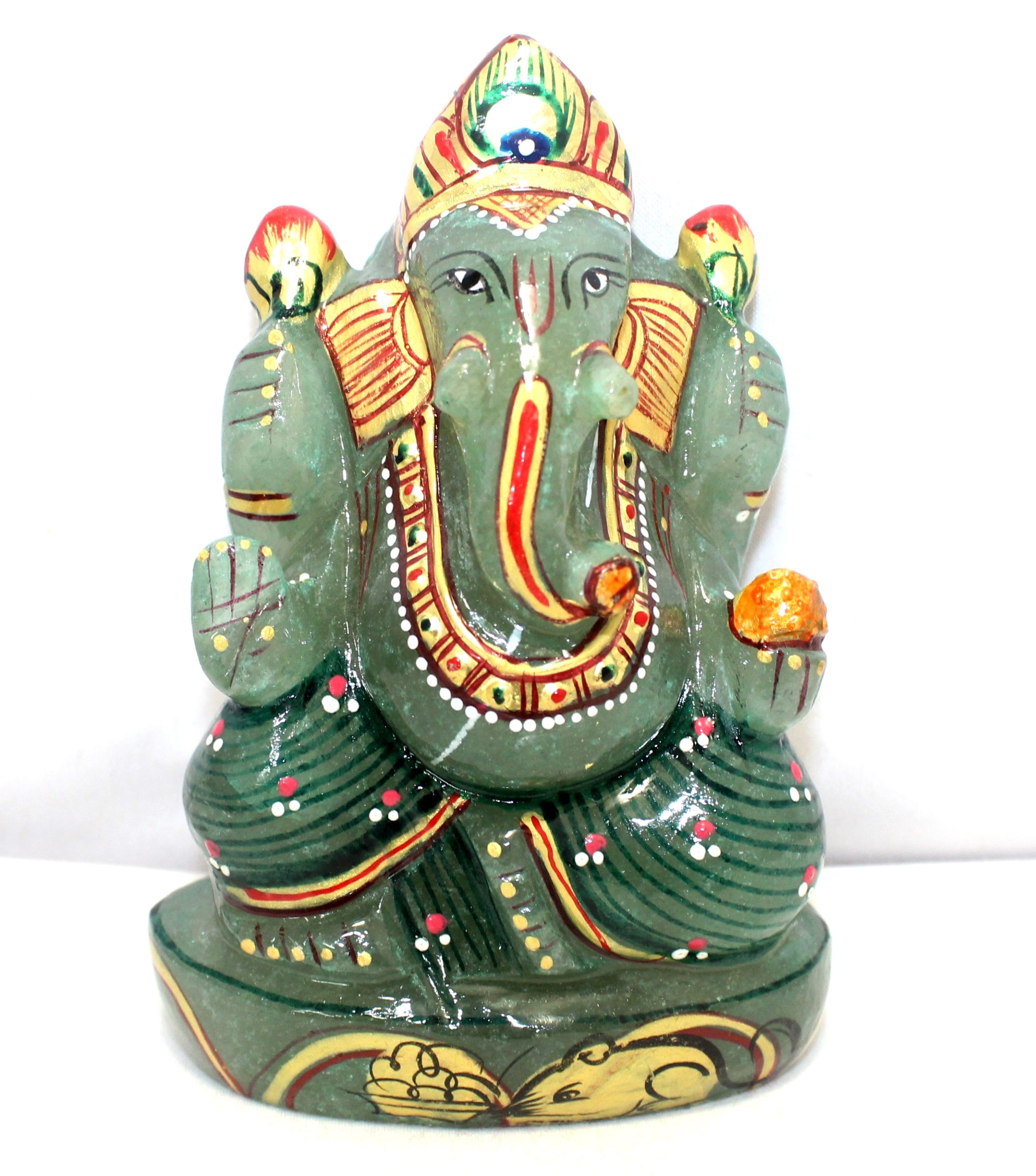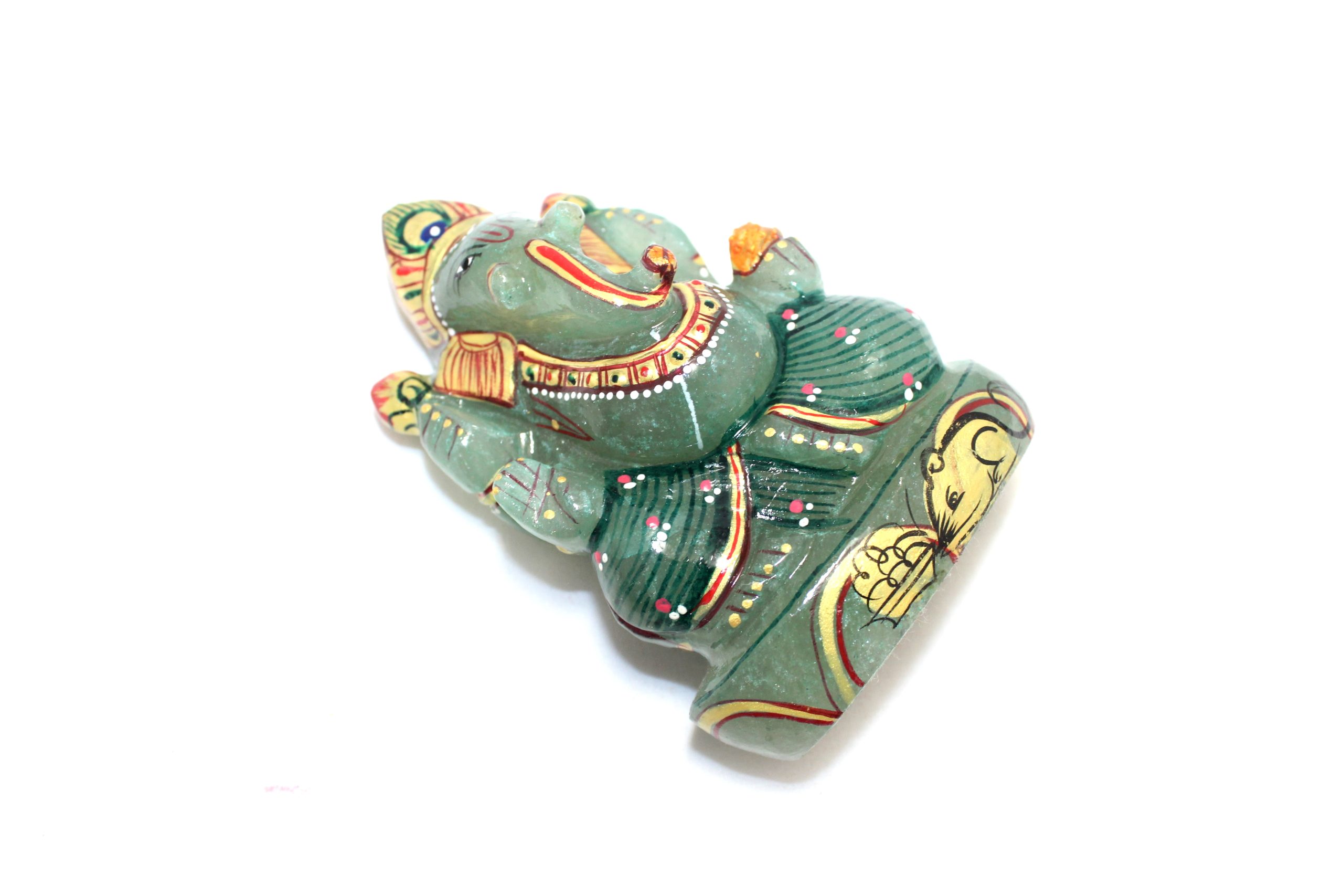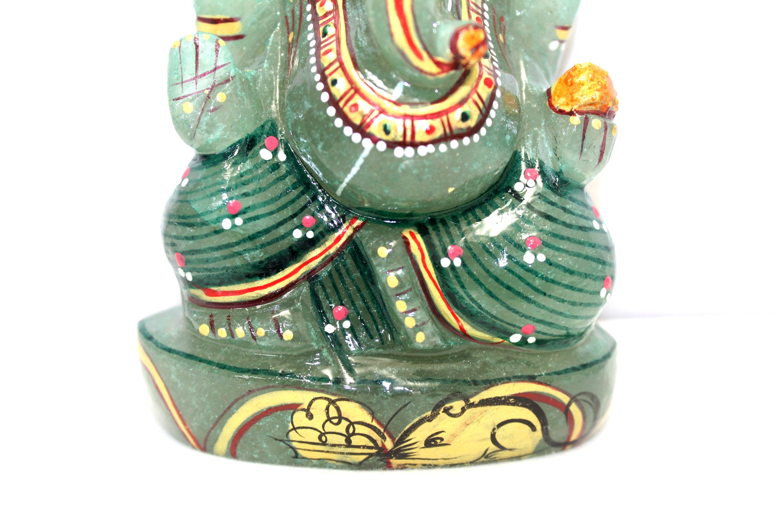 Rajasthan Gems Aventurine Idol Statue Ganesha Ganesh Figurine Figure Green Natural Jade Gem Stone God Hindu Religious Hand Paint Painted Gemstone Gift Handmade Home Decor F931