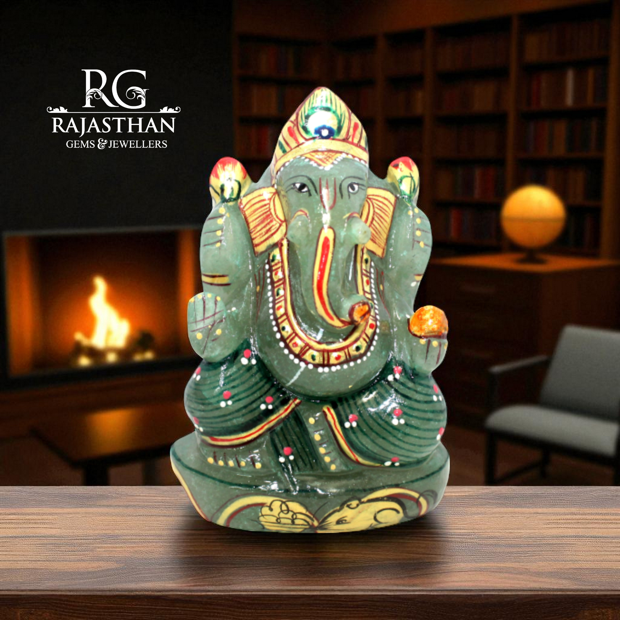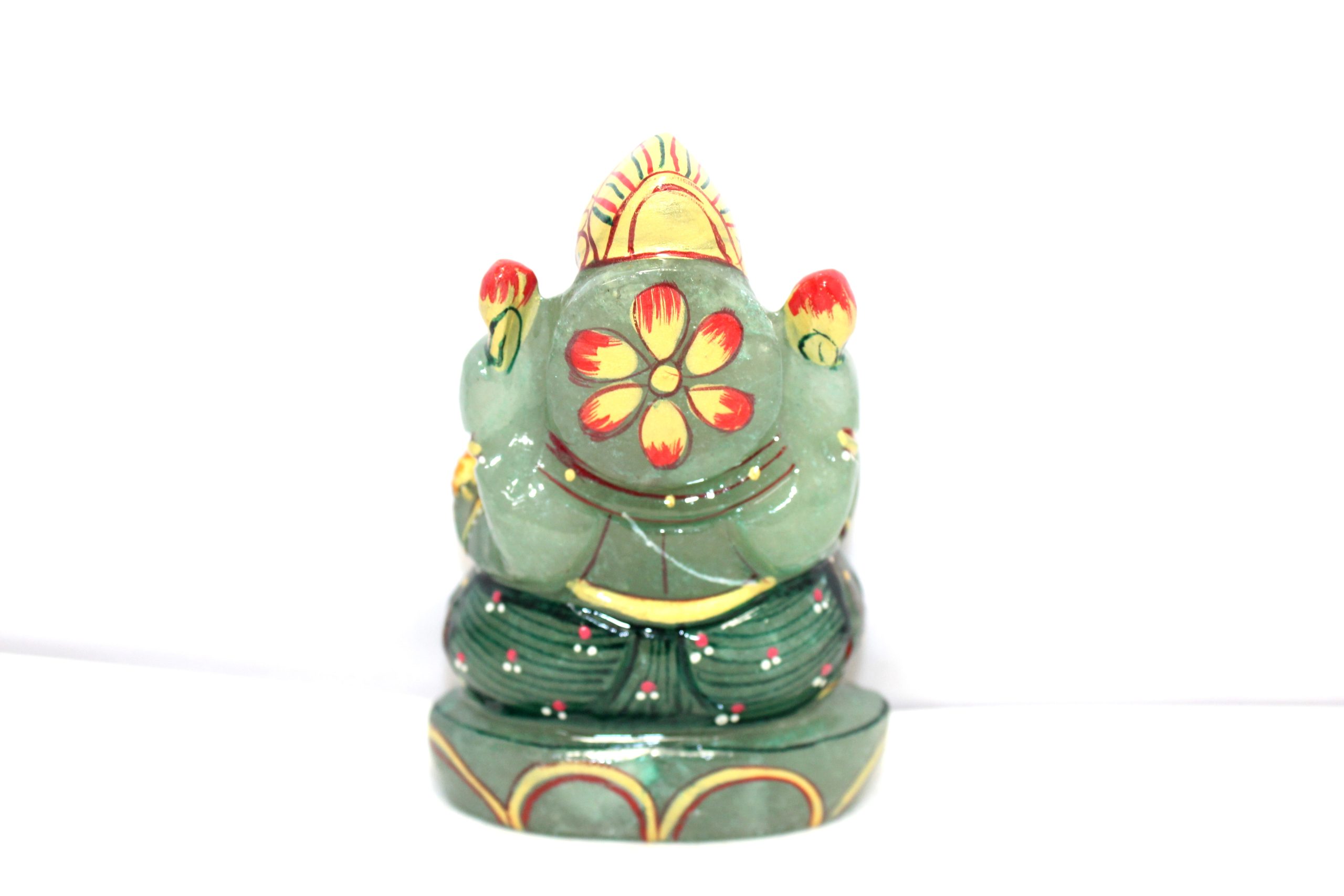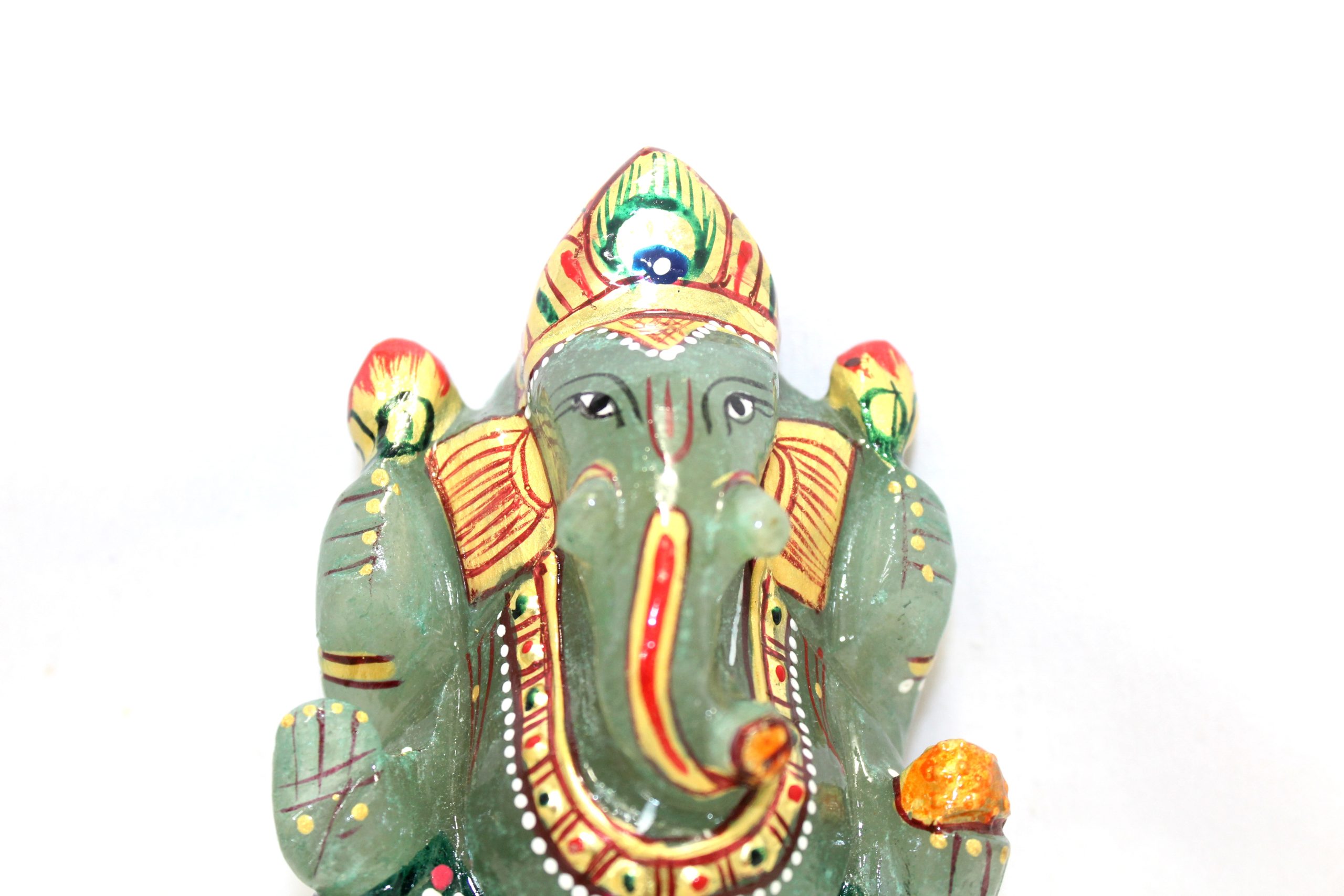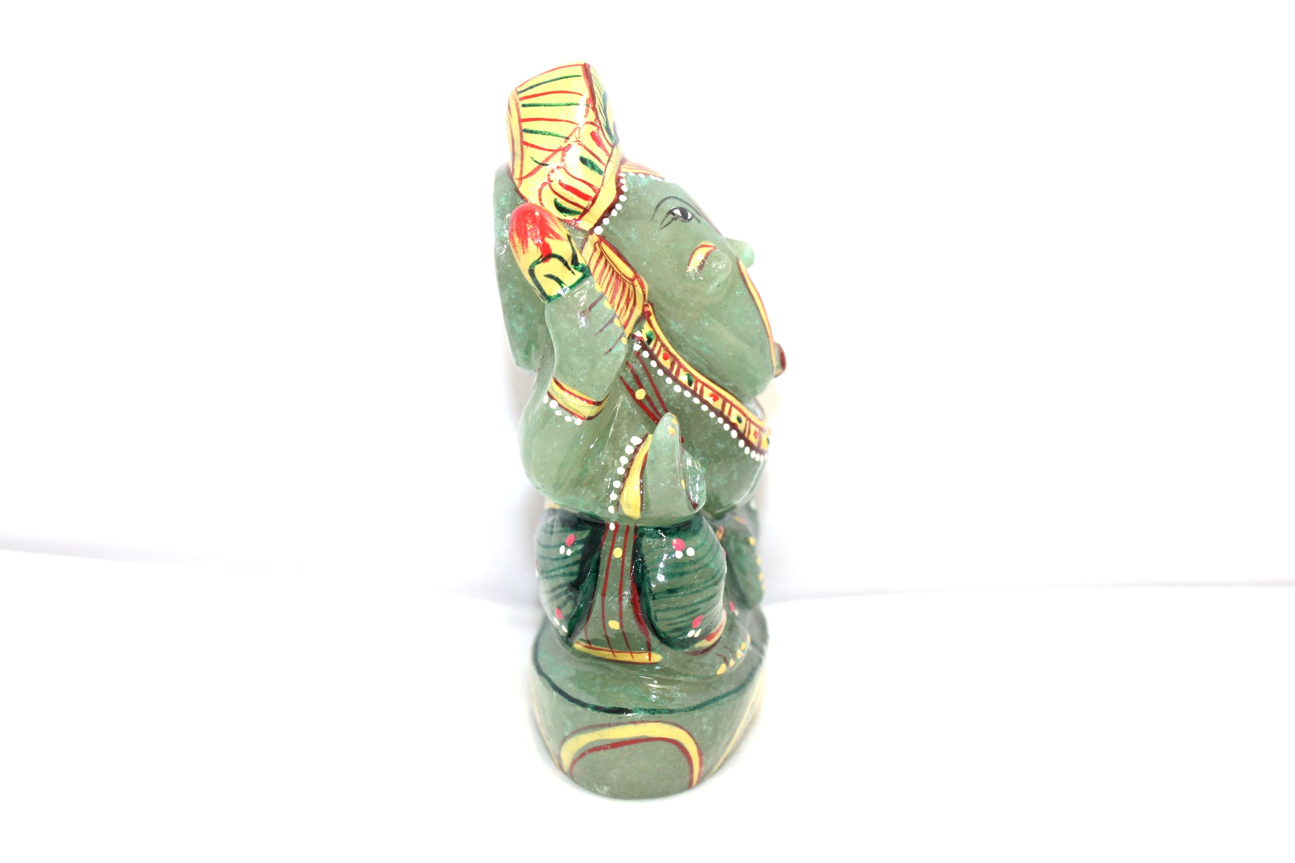 Rajasthan Gems Aventurine Idol Statue Ganesha Ganesh Figurine Figure Green Natural Jade Gem Stone God Hindu Religious Hand Paint Painted Gemstone Gift Handmade Home Decor F931