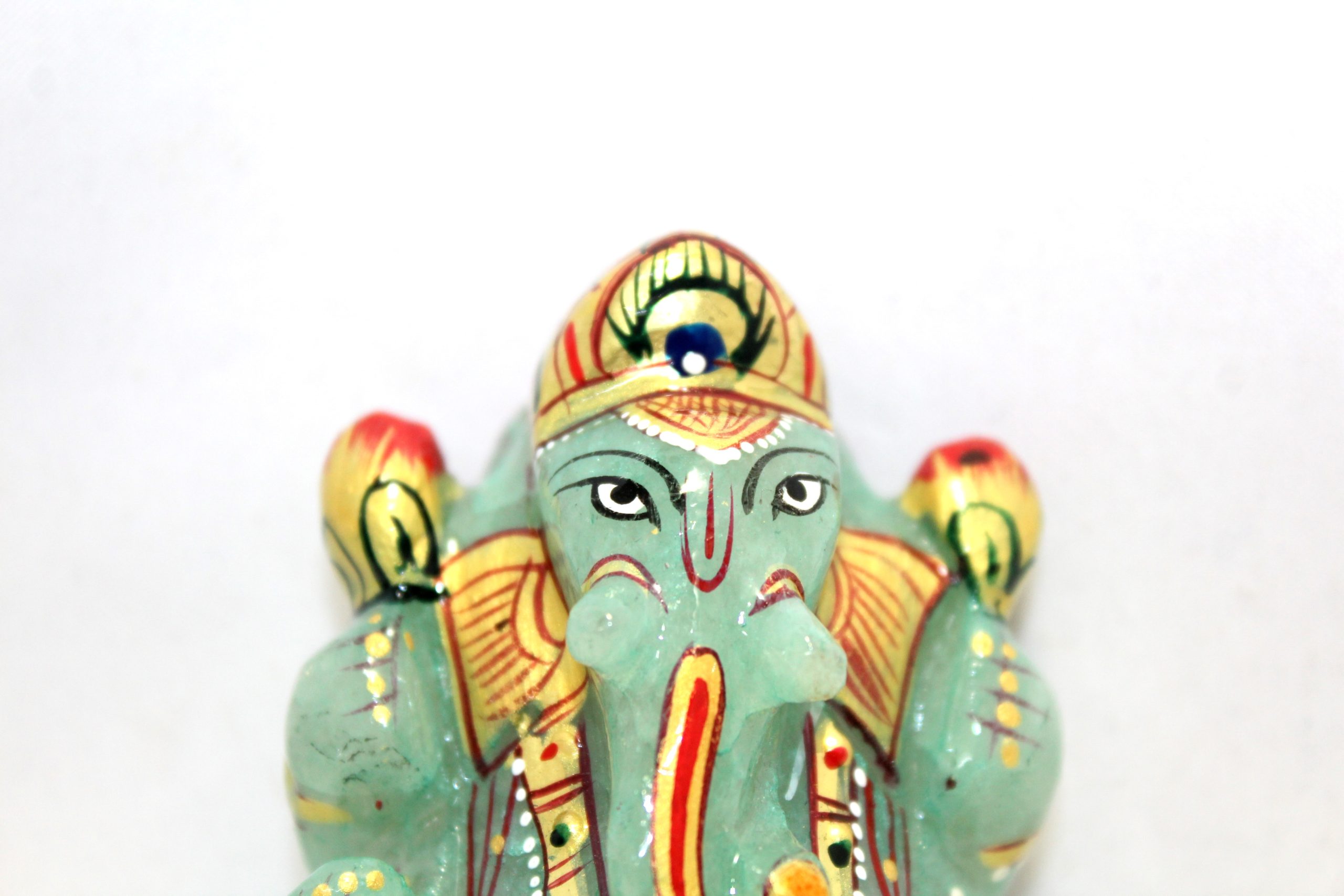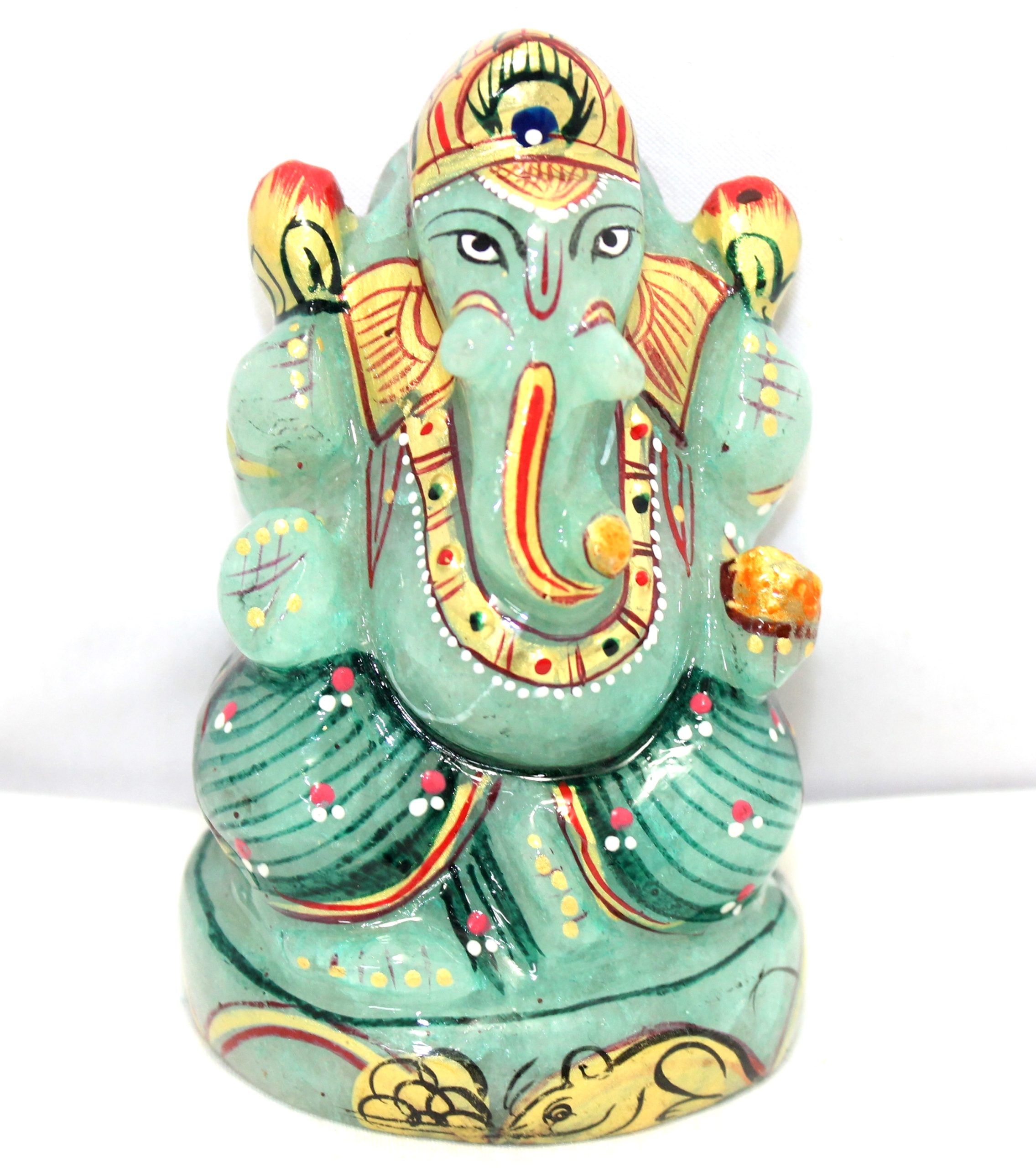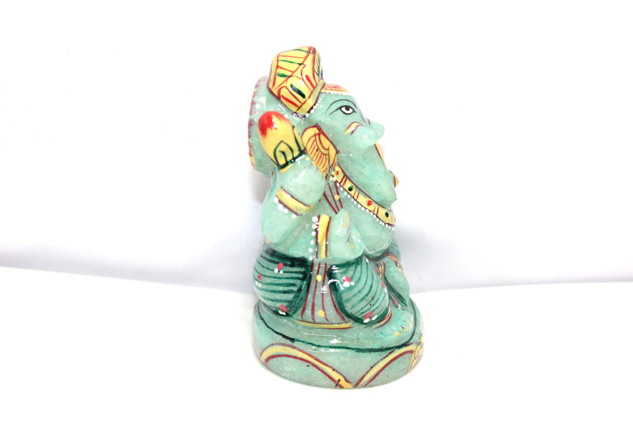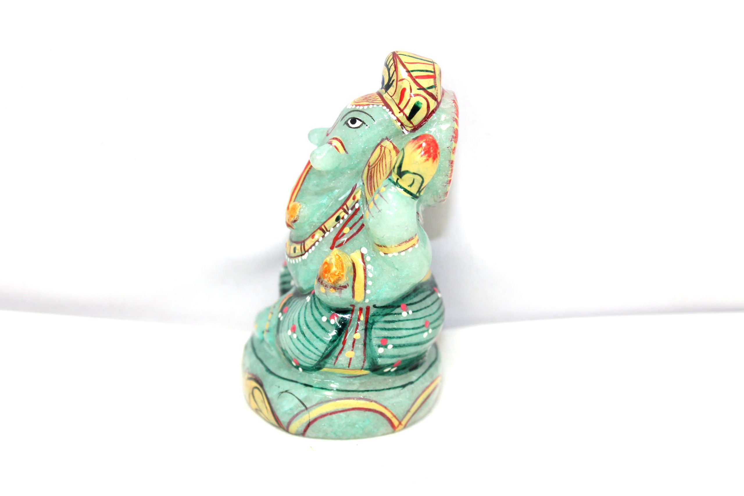 Rajasthan Gems Aventurine Idol Statue Ganesha Ganesh Figurine Figure Green Natural Jade Gem Stone God Hindu Religious Hand Paint Painted Gemstone Gift Handmade Home Decor F932