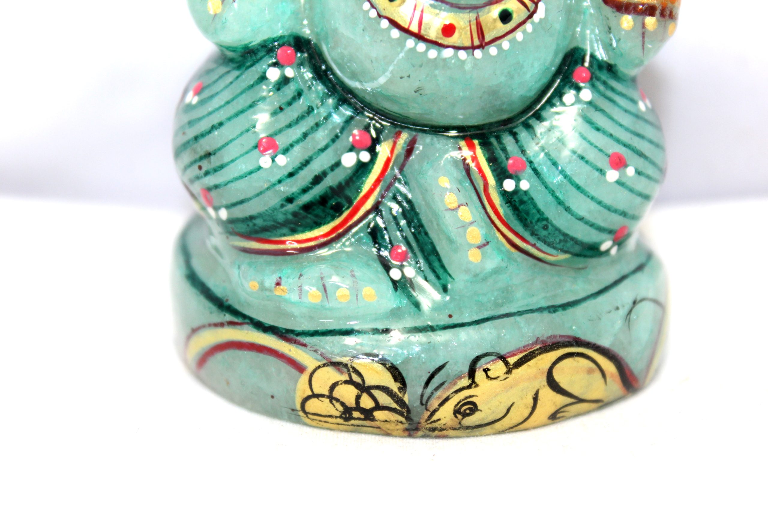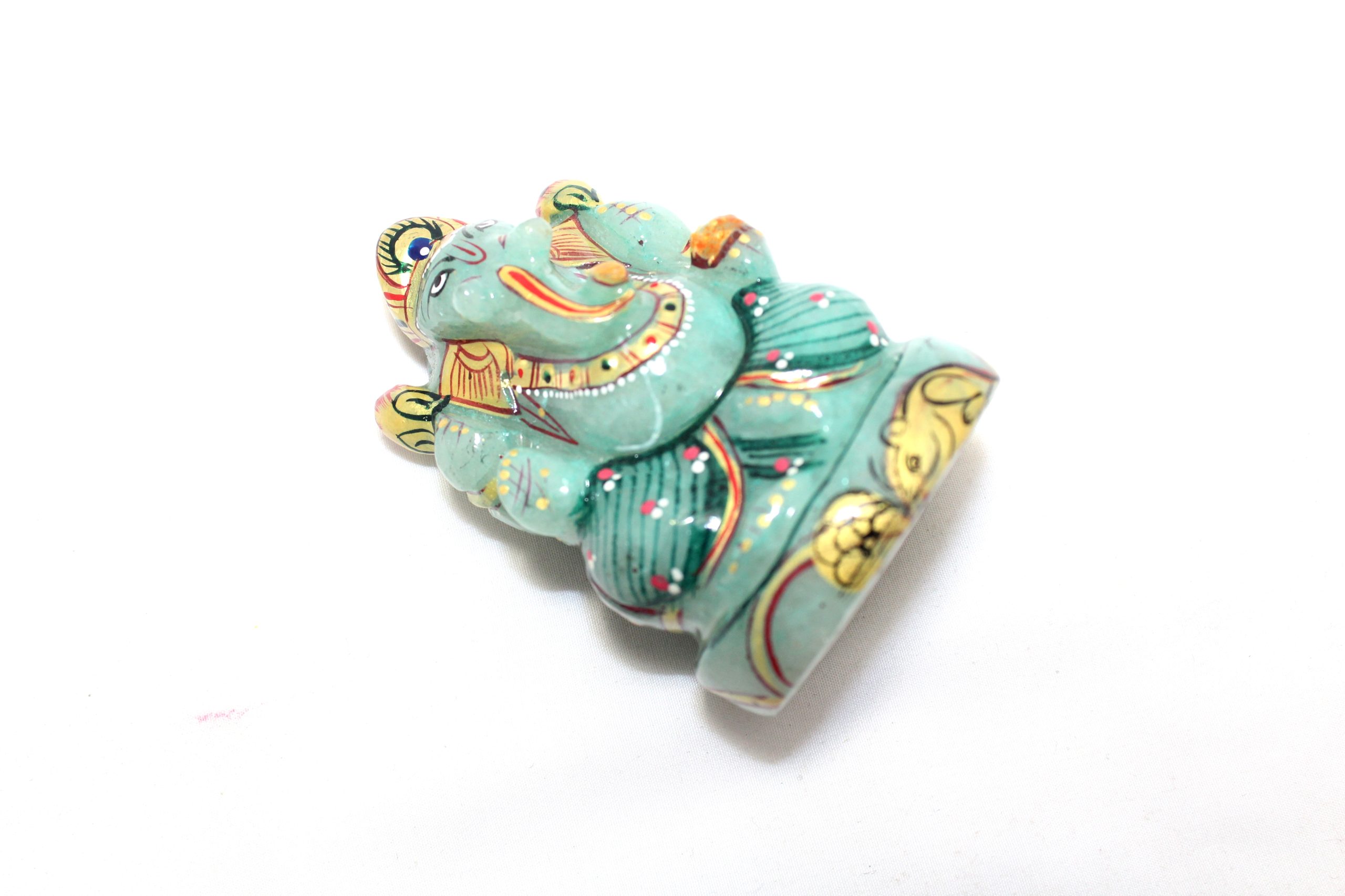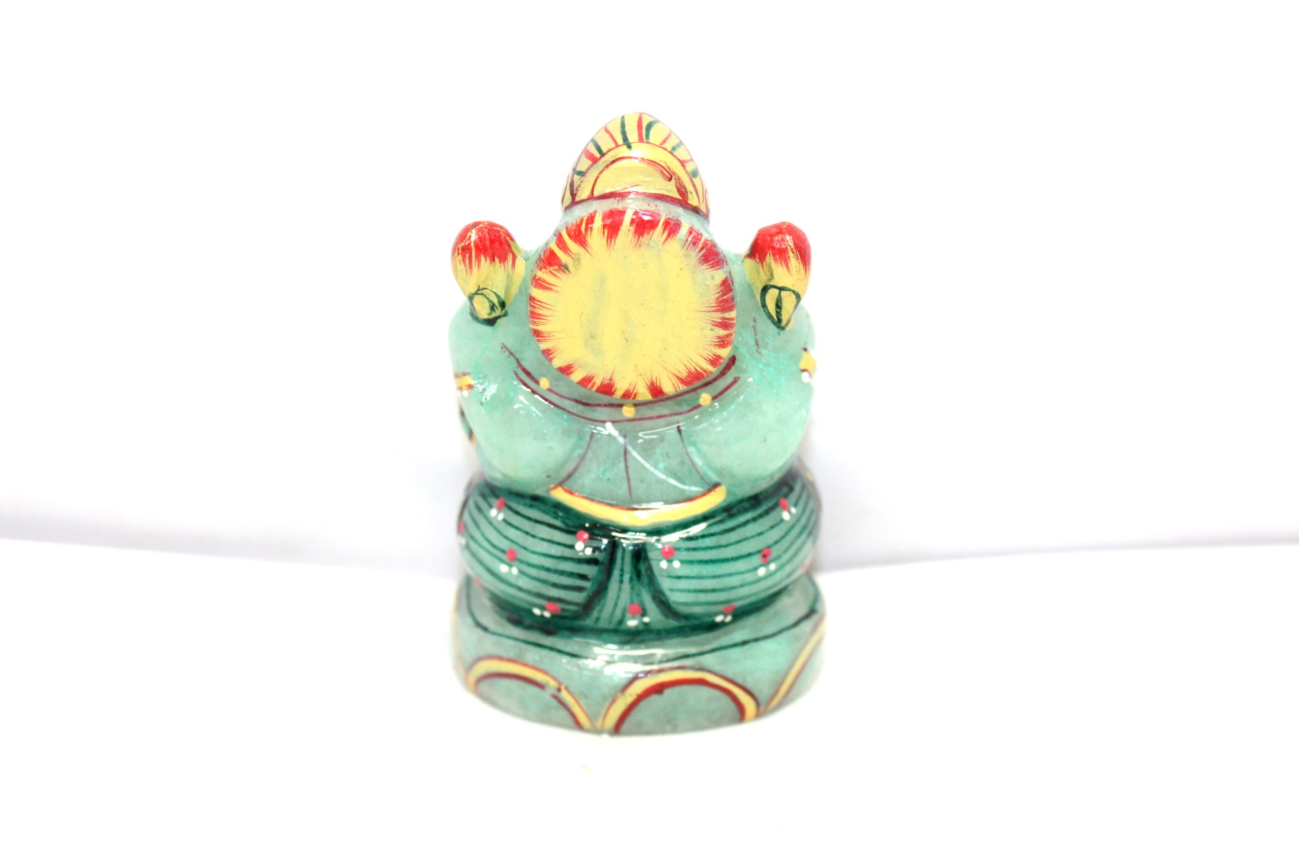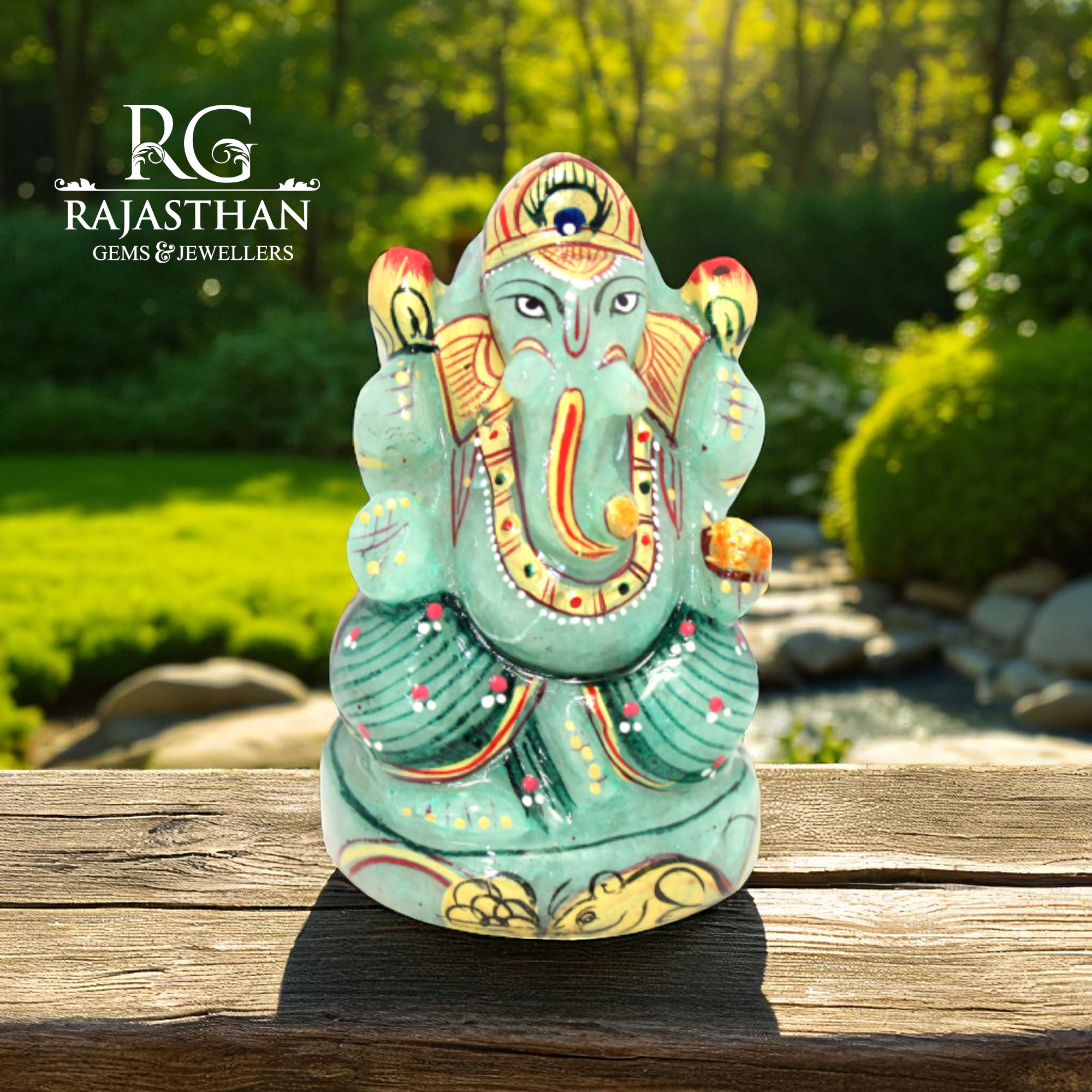 Rajasthan Gems Aventurine Idol Statue Ganesha Ganesh Figurine Figure Green Natural Jade Gem Stone God Hindu Religious Hand Paint Painted Gemstone Gift Handmade Home Decor F932