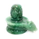 Rajasthan Gems Aventurine Panchmukhi Shivling Statue Shiv Shiva Lingam Mahadev Nandi Natural Green Jade Gem Stone Hindu Religious Pooja Handmade Gemstone Home Decor Gift H110