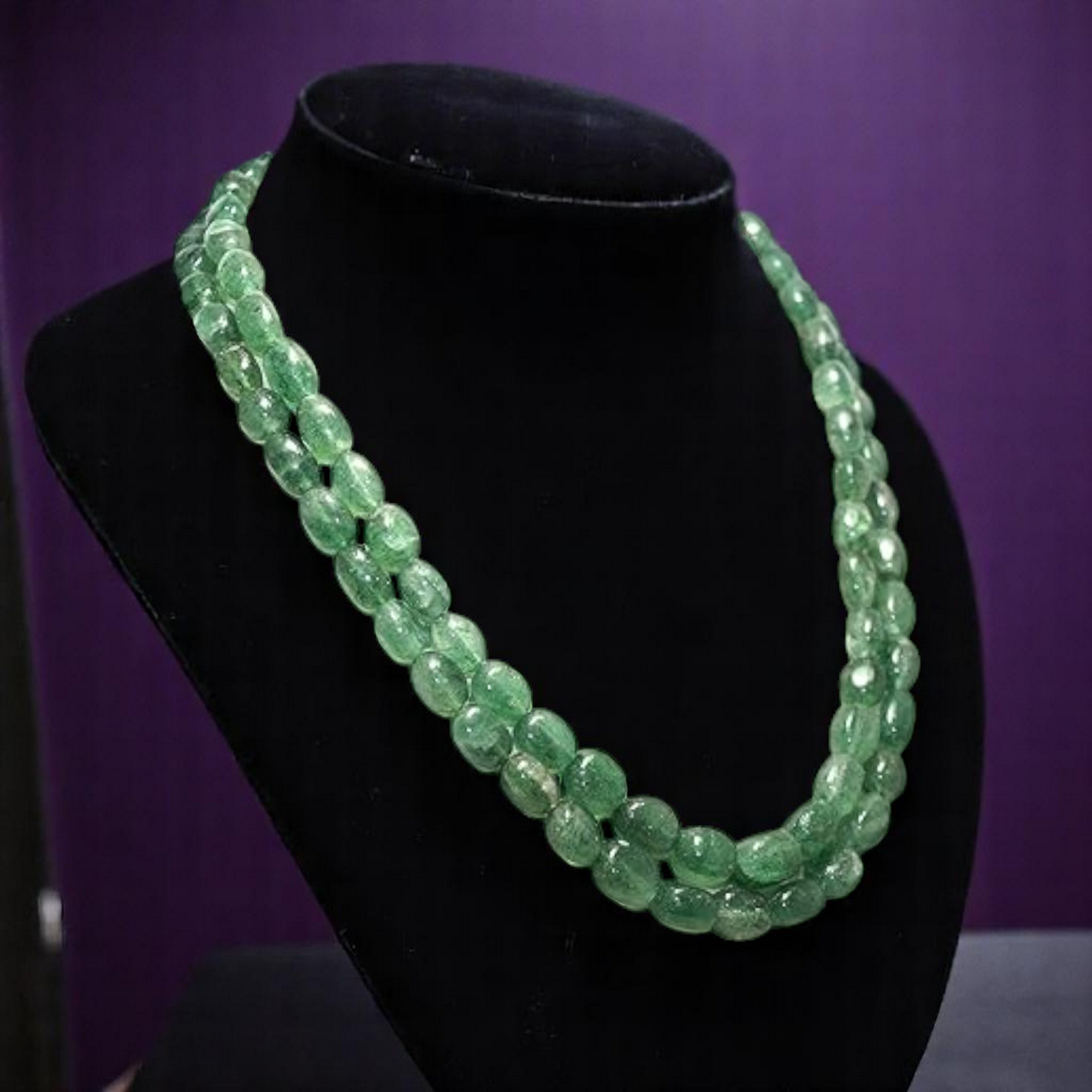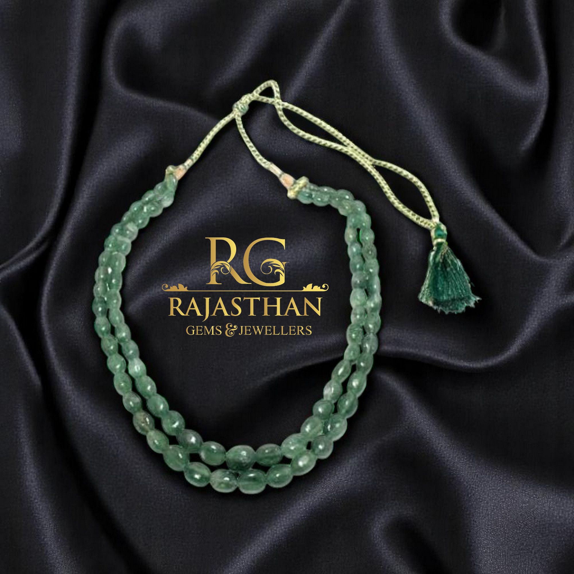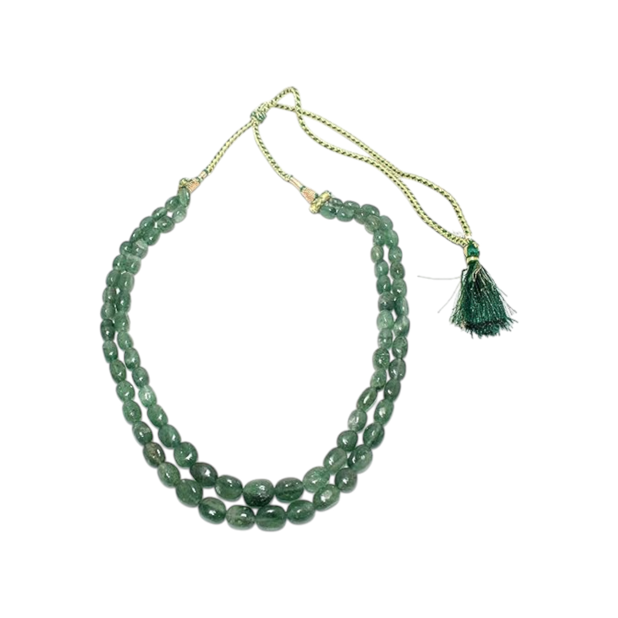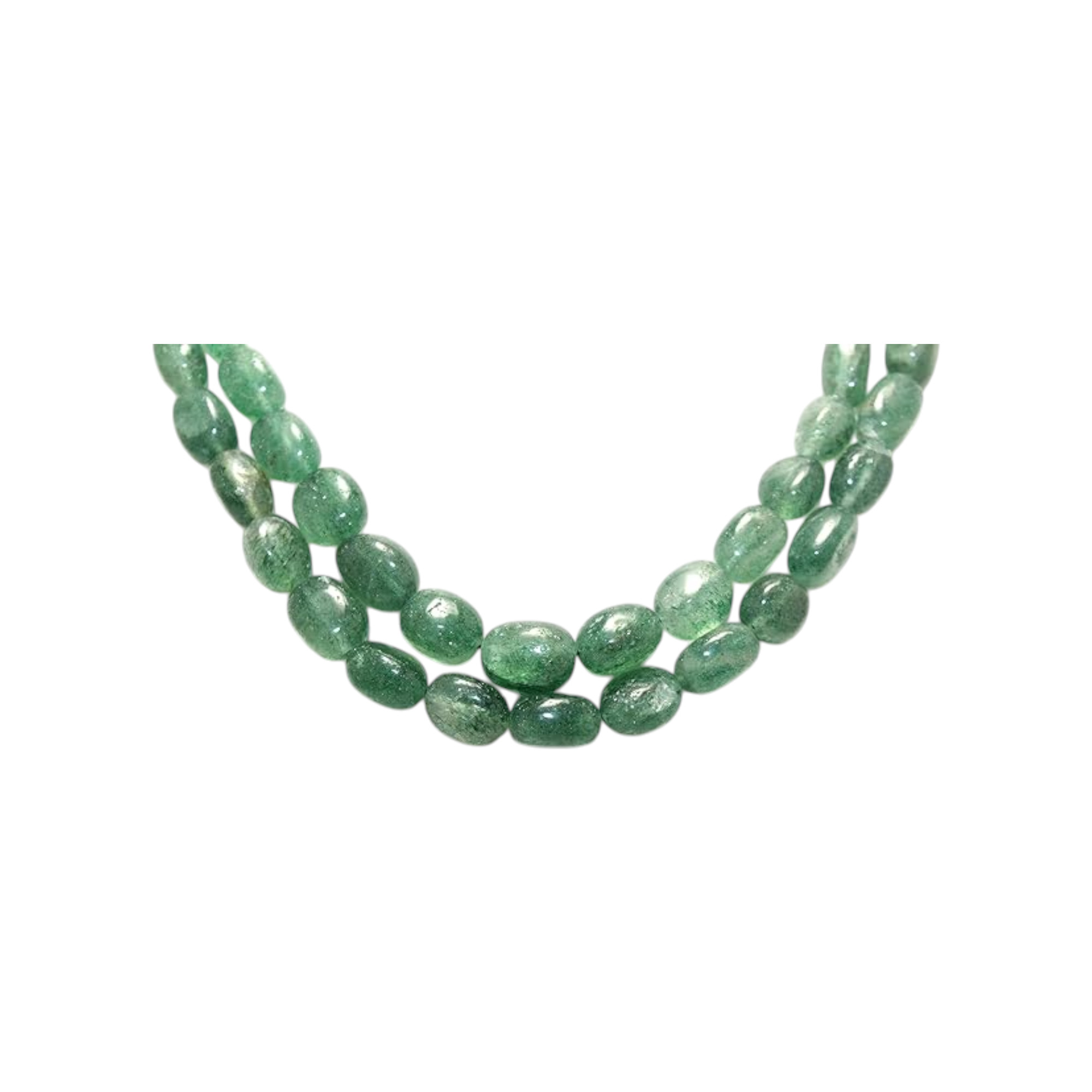 Rajasthan Gems Bead Necklace 2 Line Strand Beaded Natural Green Strawberry Quartz Gem Stone Gemstone Tumble Beads Adjustable F731