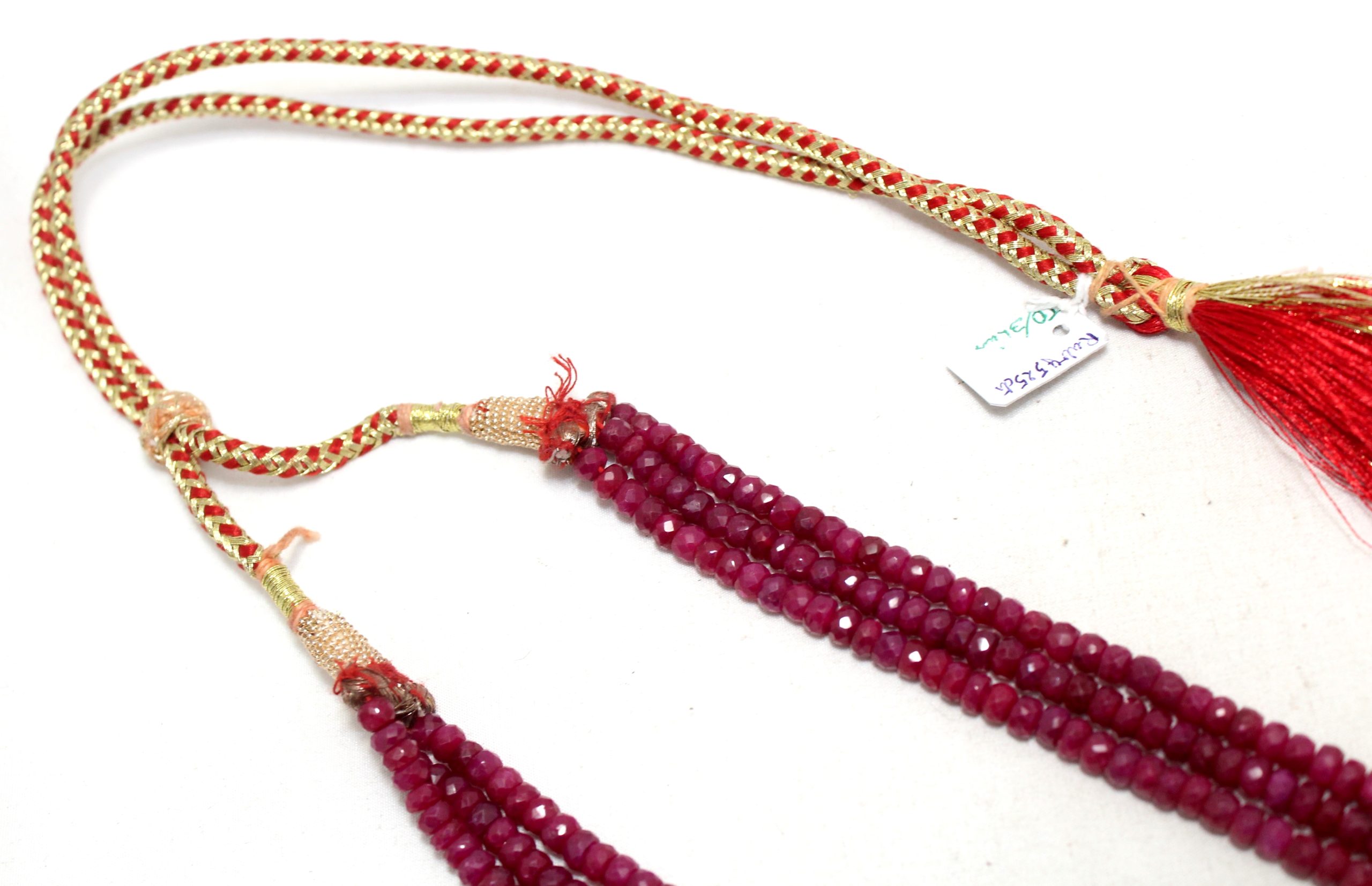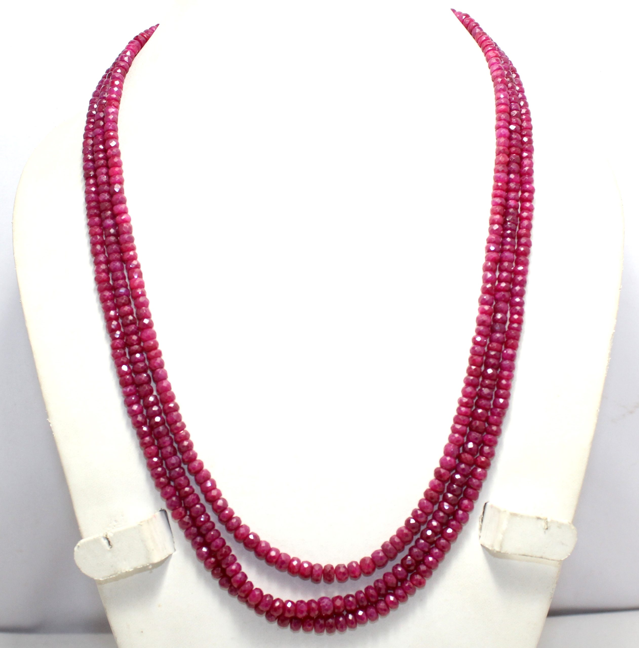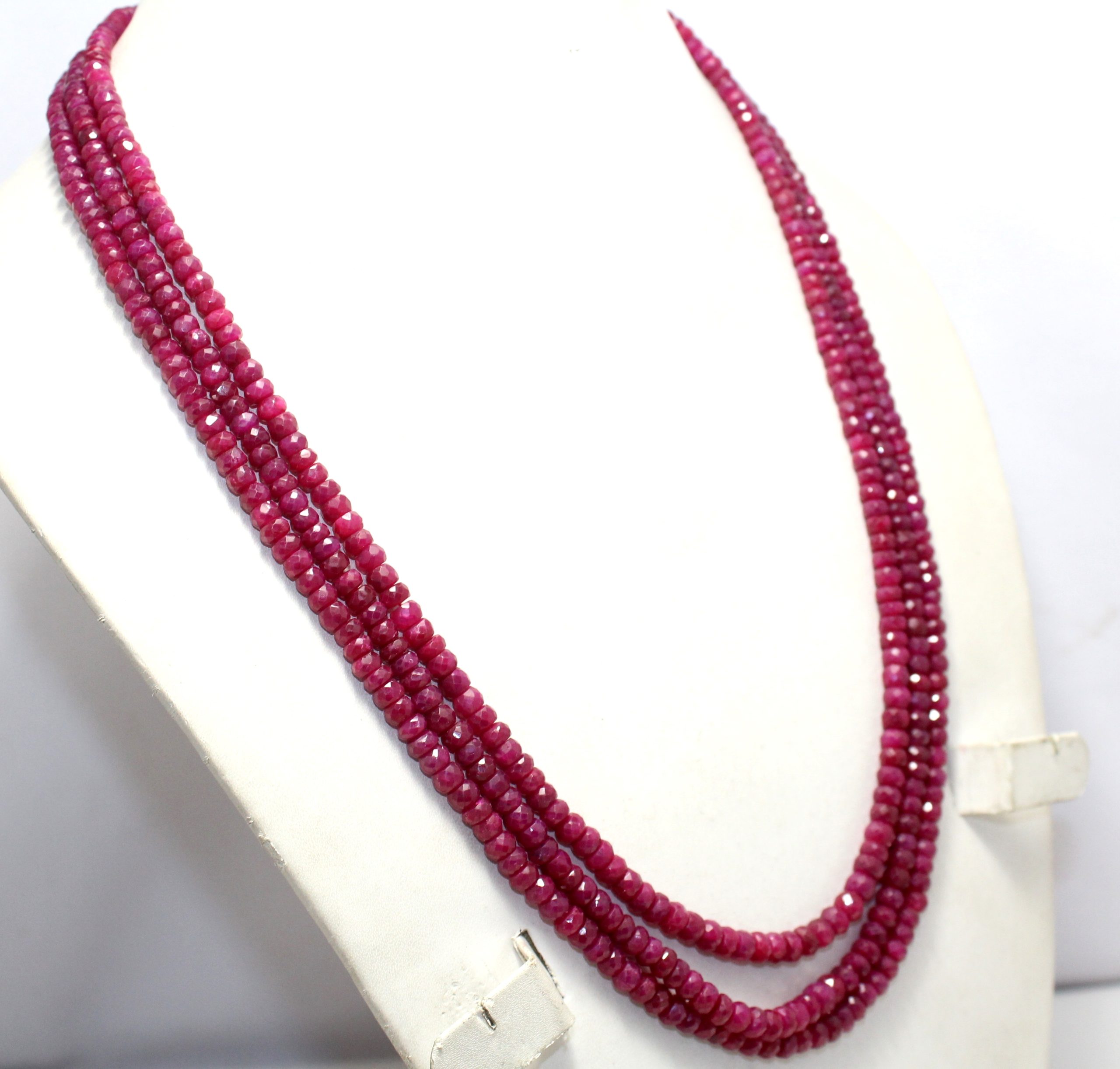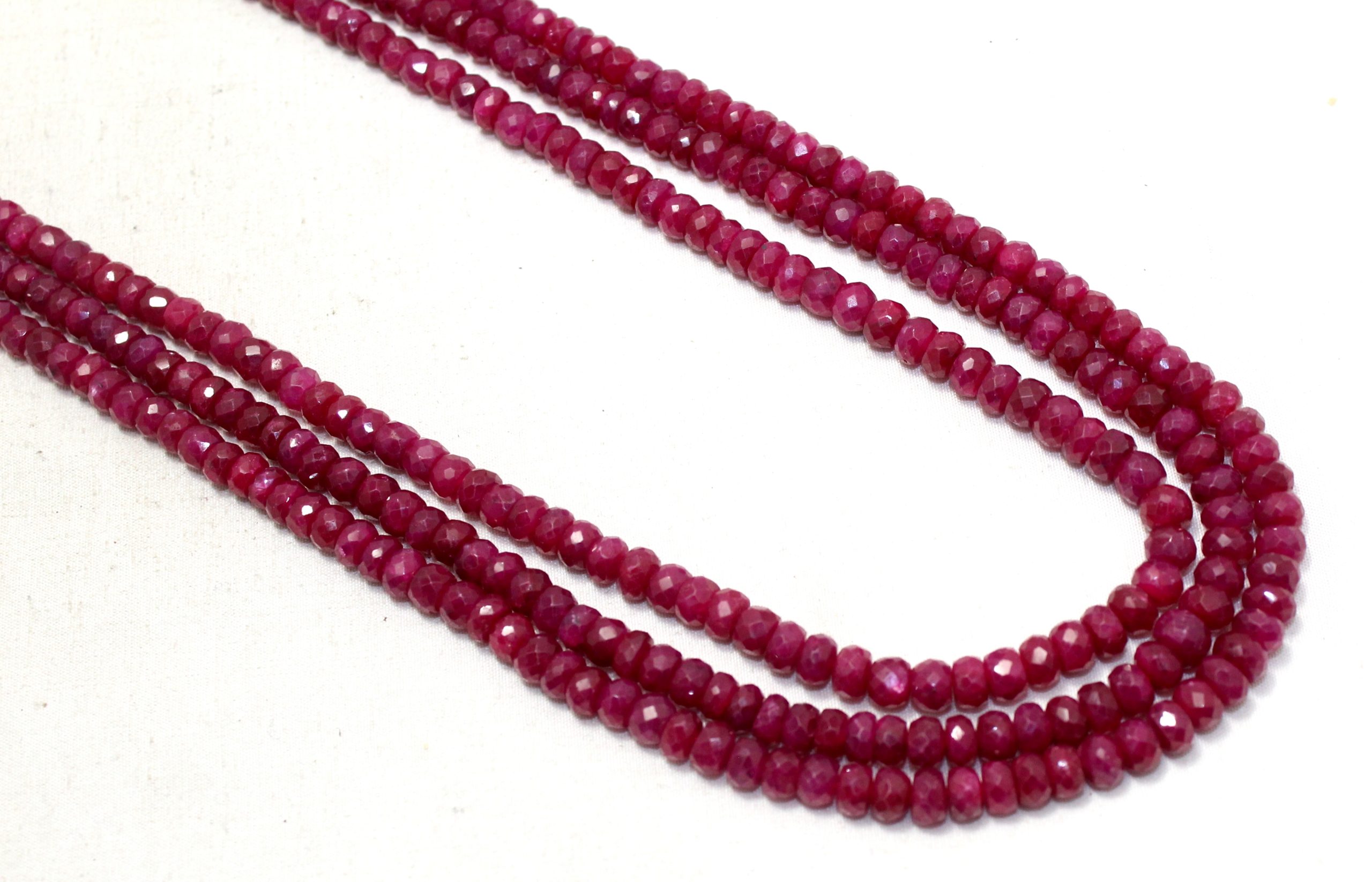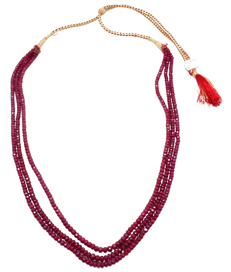 Rajasthan Gems Bead Necklace Strand Manik Ruby Diamond Cut Finish Beads Natural 3 Line Gem Stone Women Gift Gemstone H366