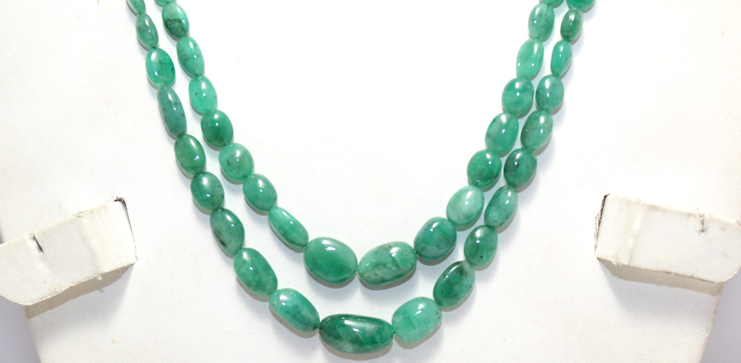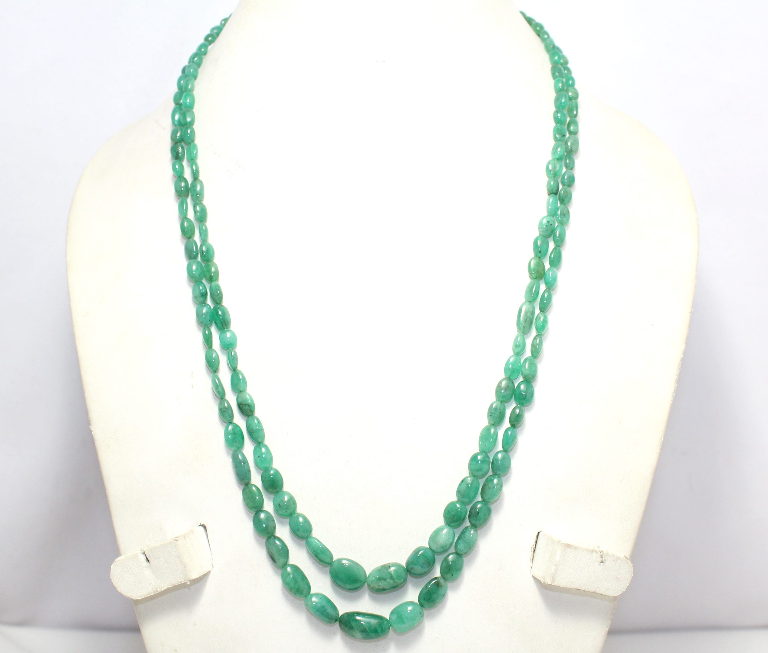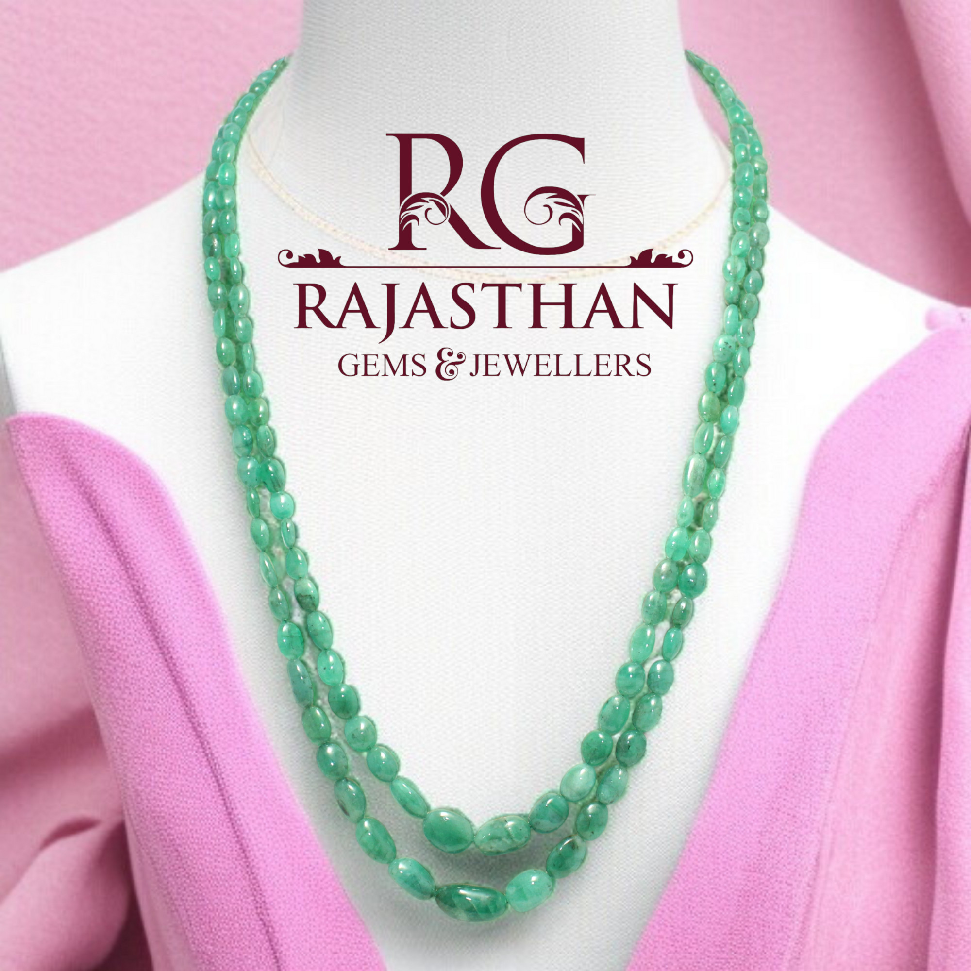 Rajasthan Gems Beaded Necklace 2 Line Strand String Precious Natural Emerald Gem Stone Bead Beads Cabachon Women Jewelry Adjustable G775