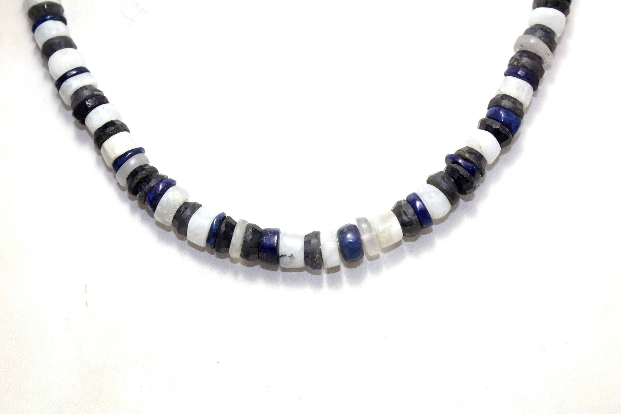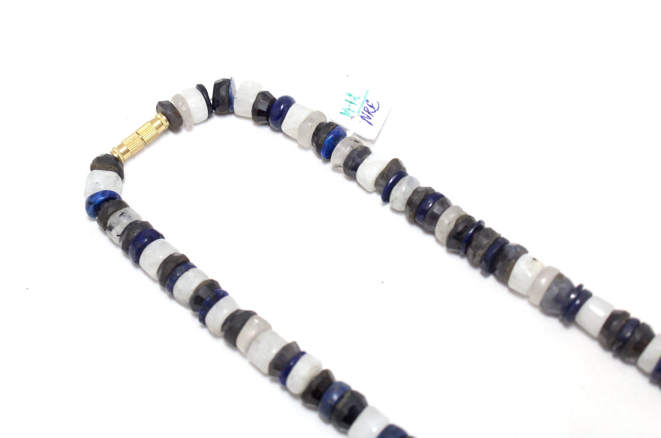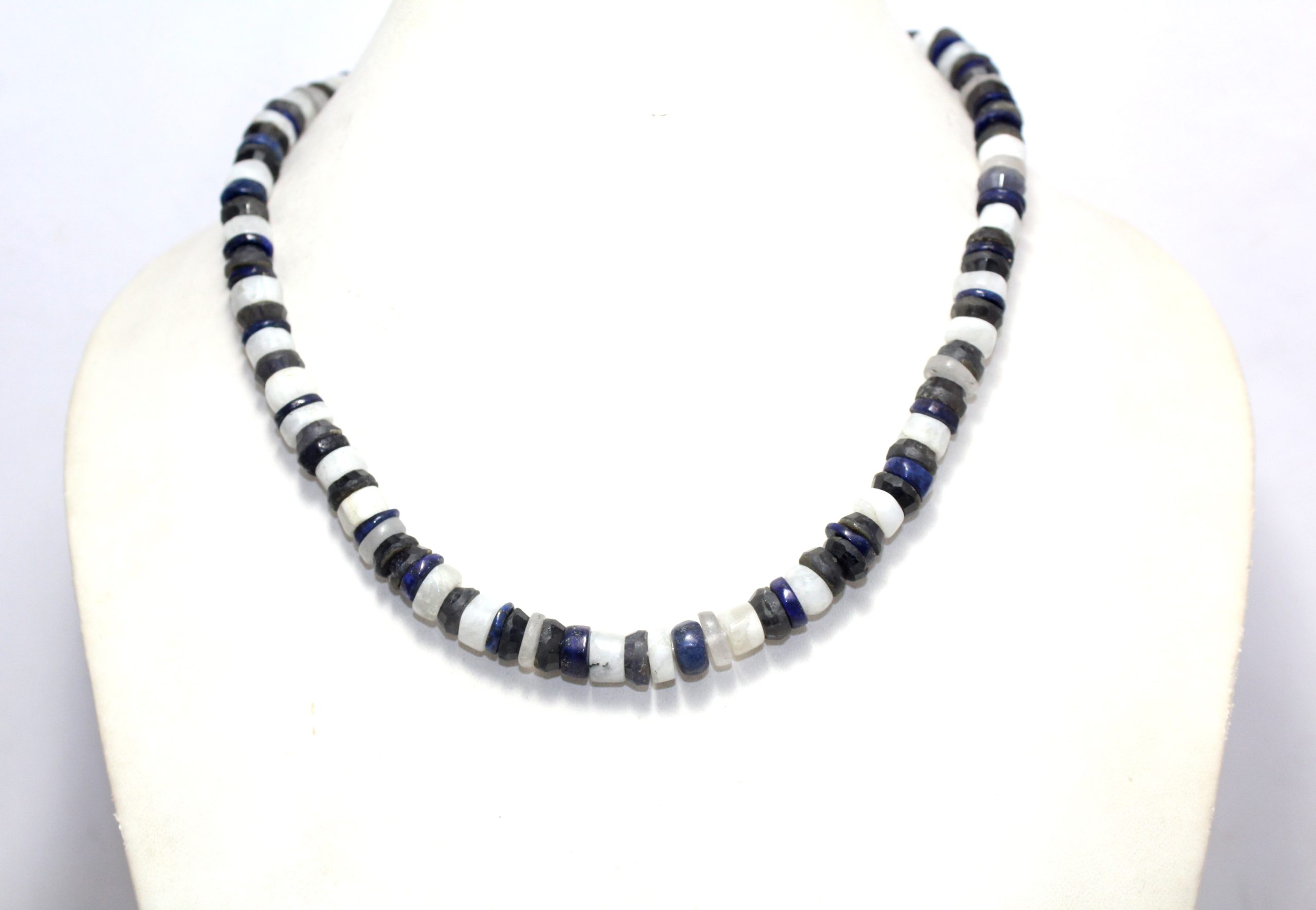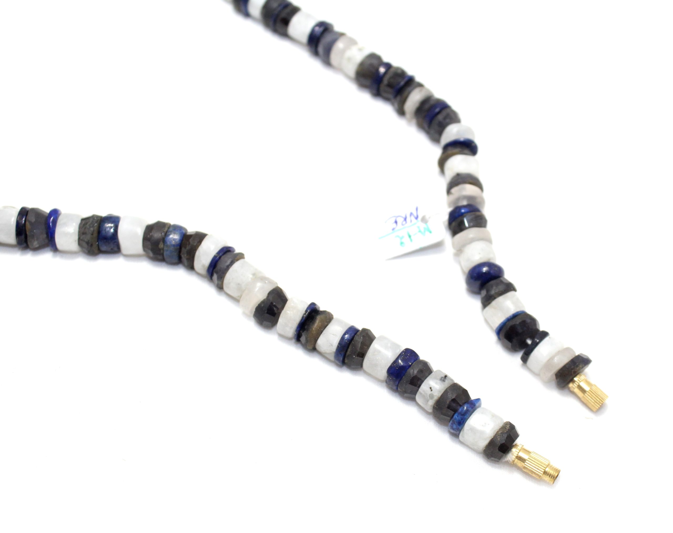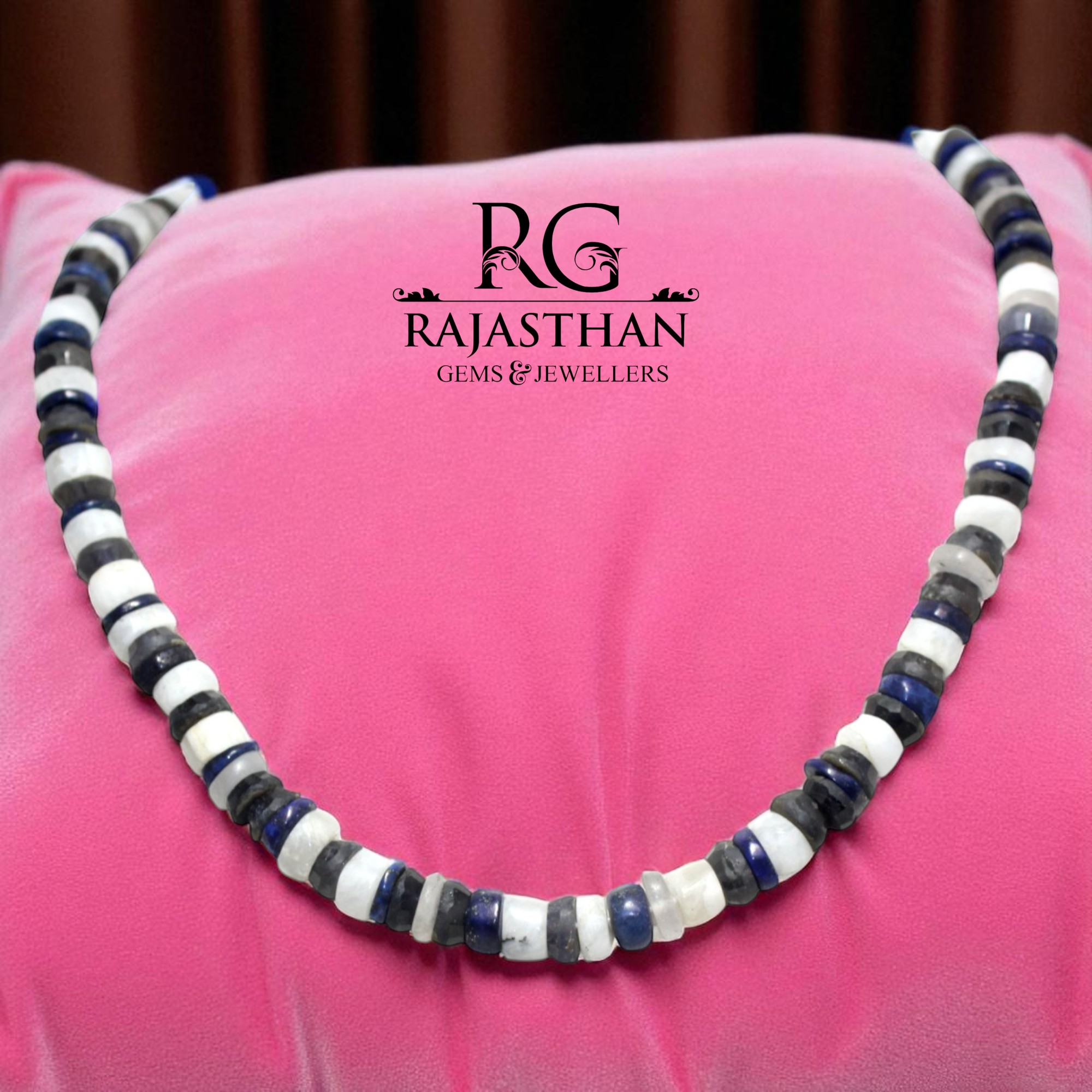 Rajasthan Gems Beaded Necklace Mala Natural Lapis Lazuli Labradorite, Rainbow Gem Stone Women Gift G778