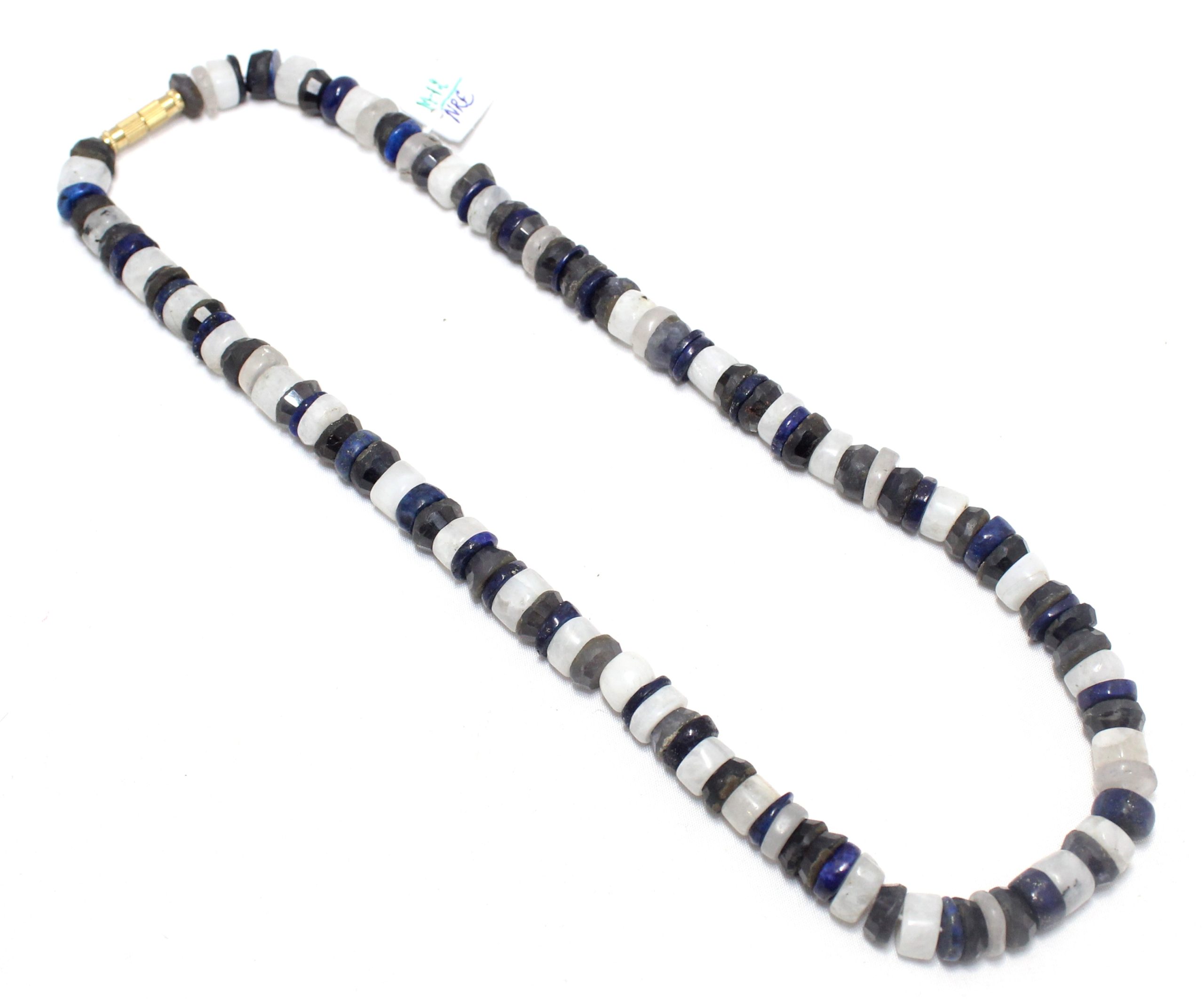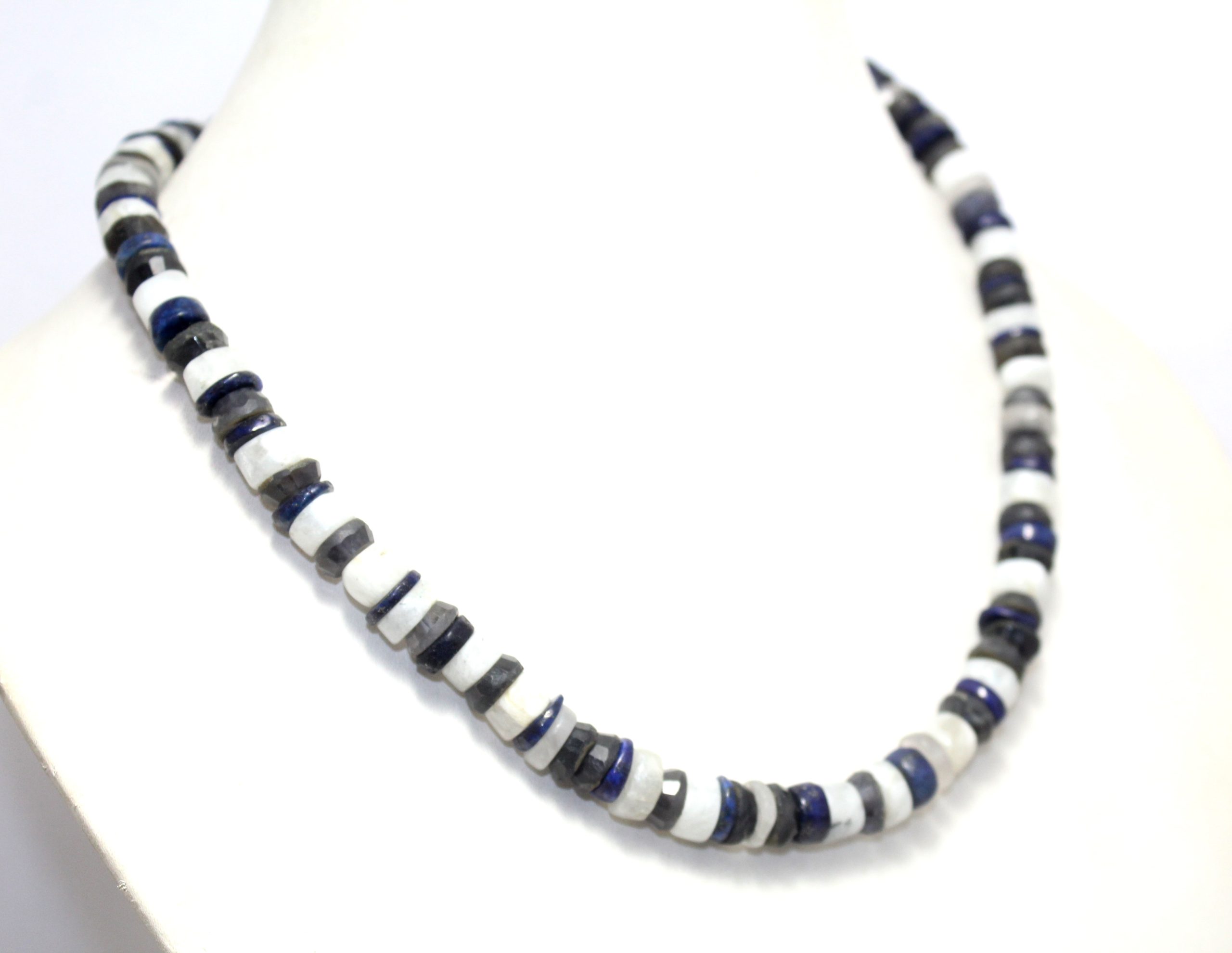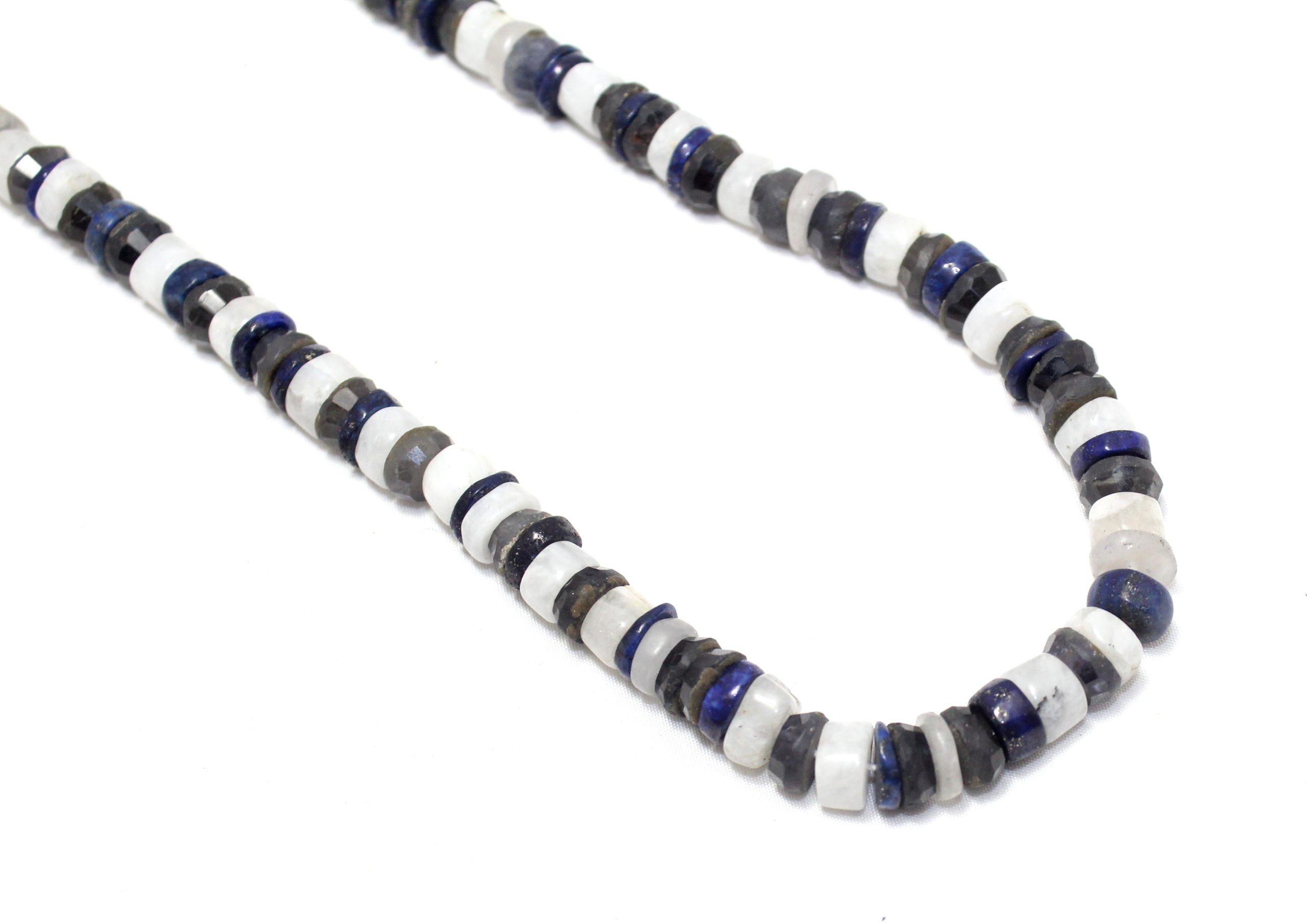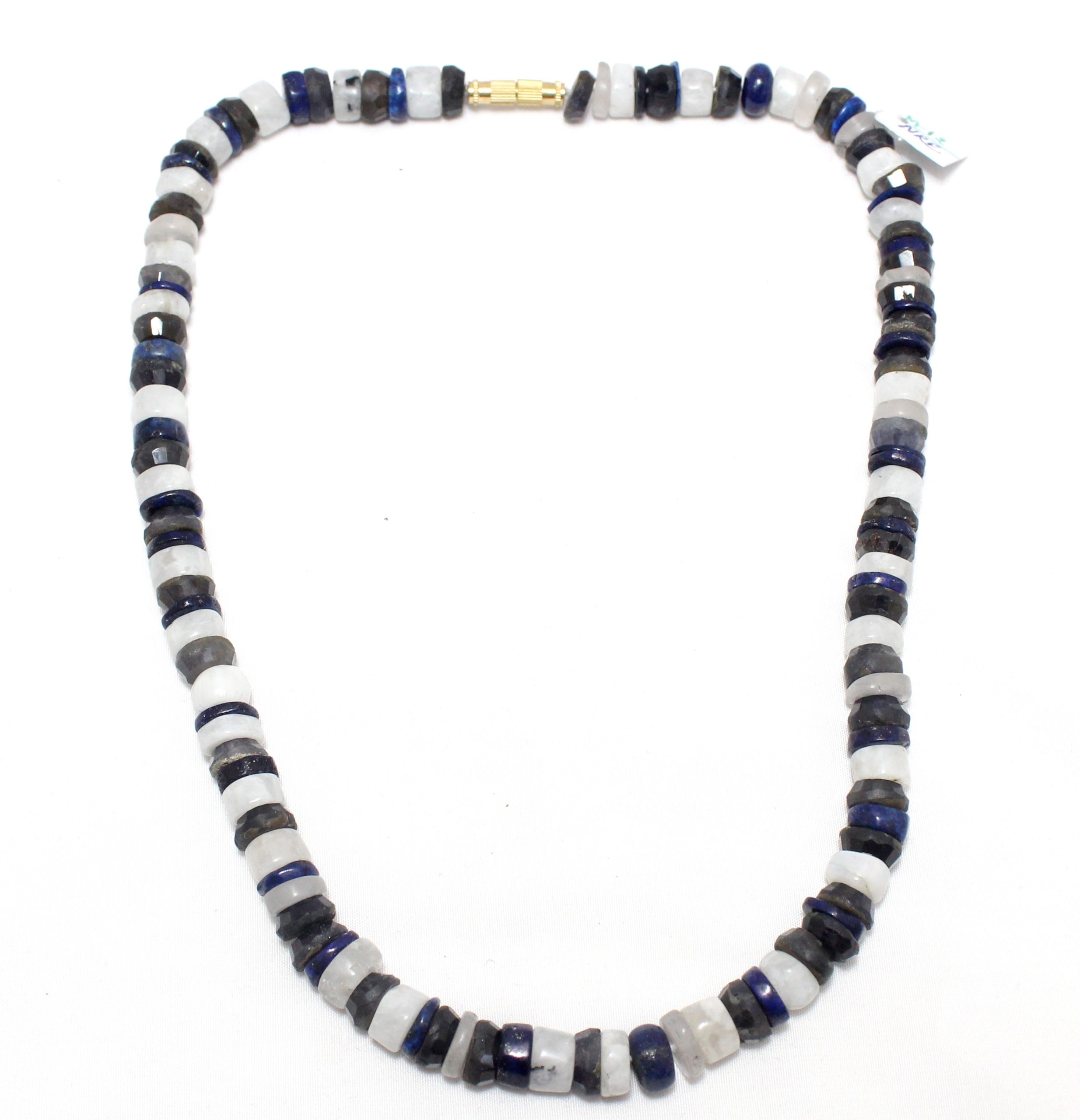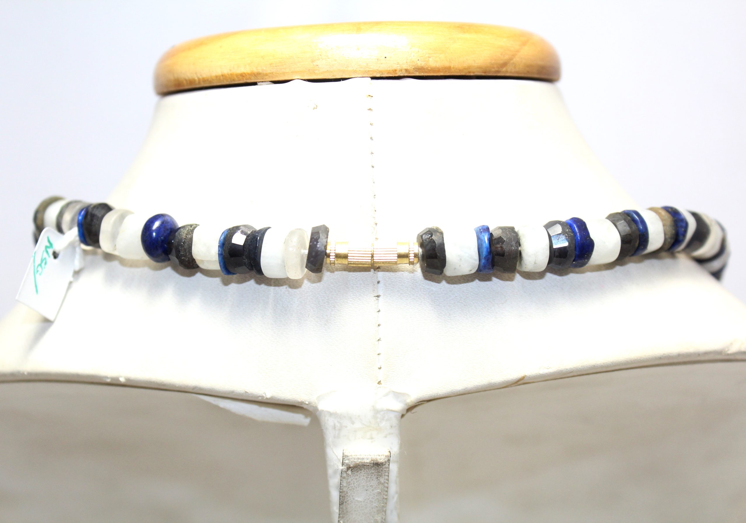 Rajasthan Gems Beaded Necklace Mala Natural Lapis Lazuli Labradorite, Rainbow Gem Stone Women Gift G778