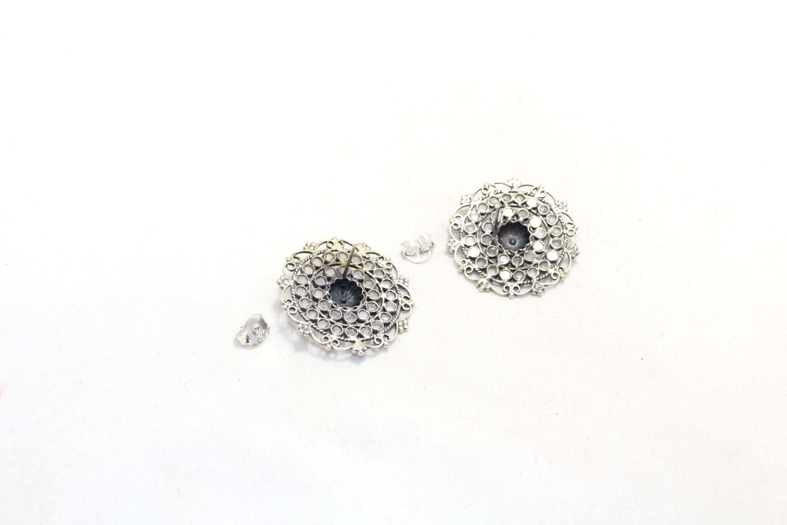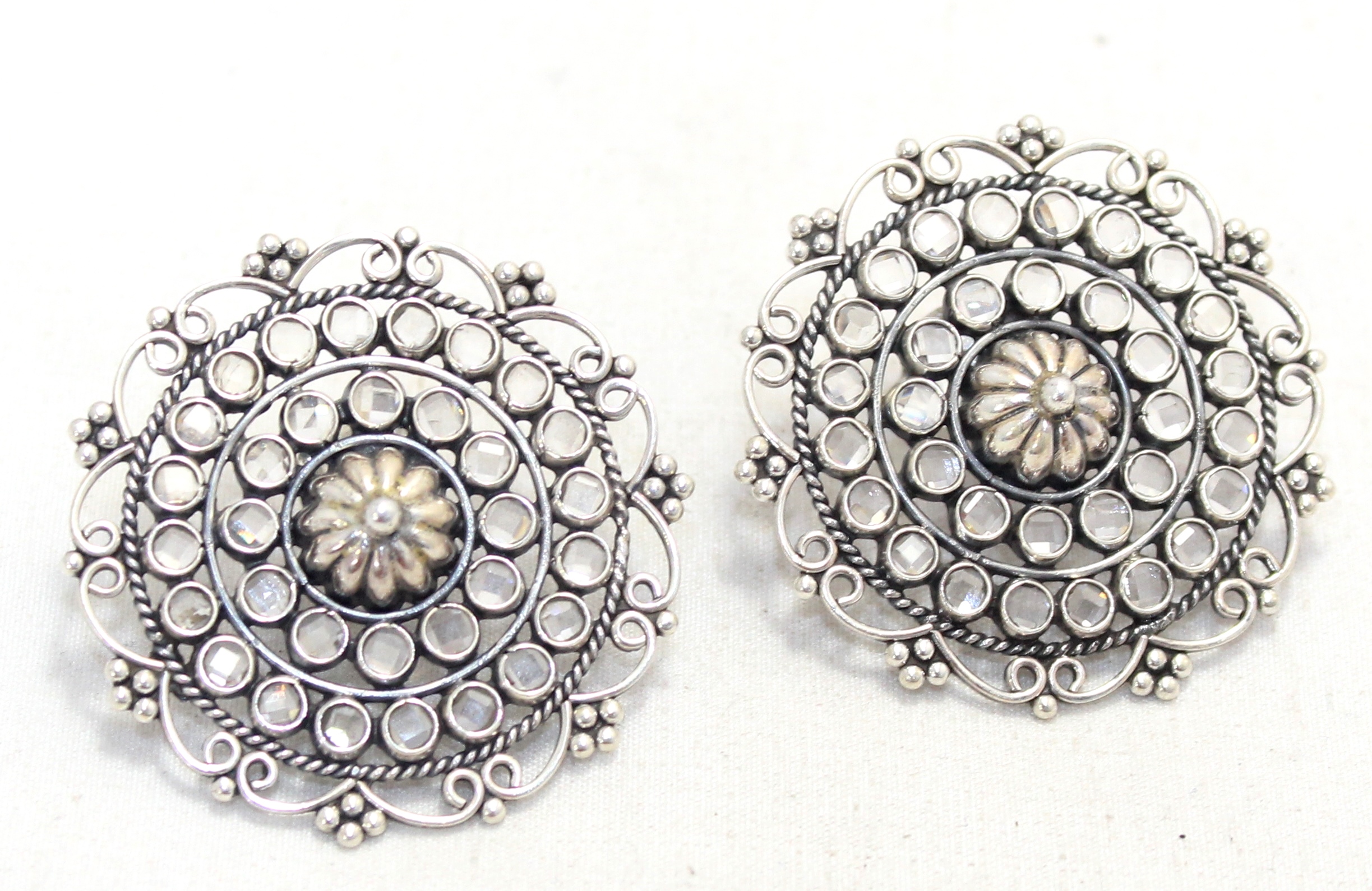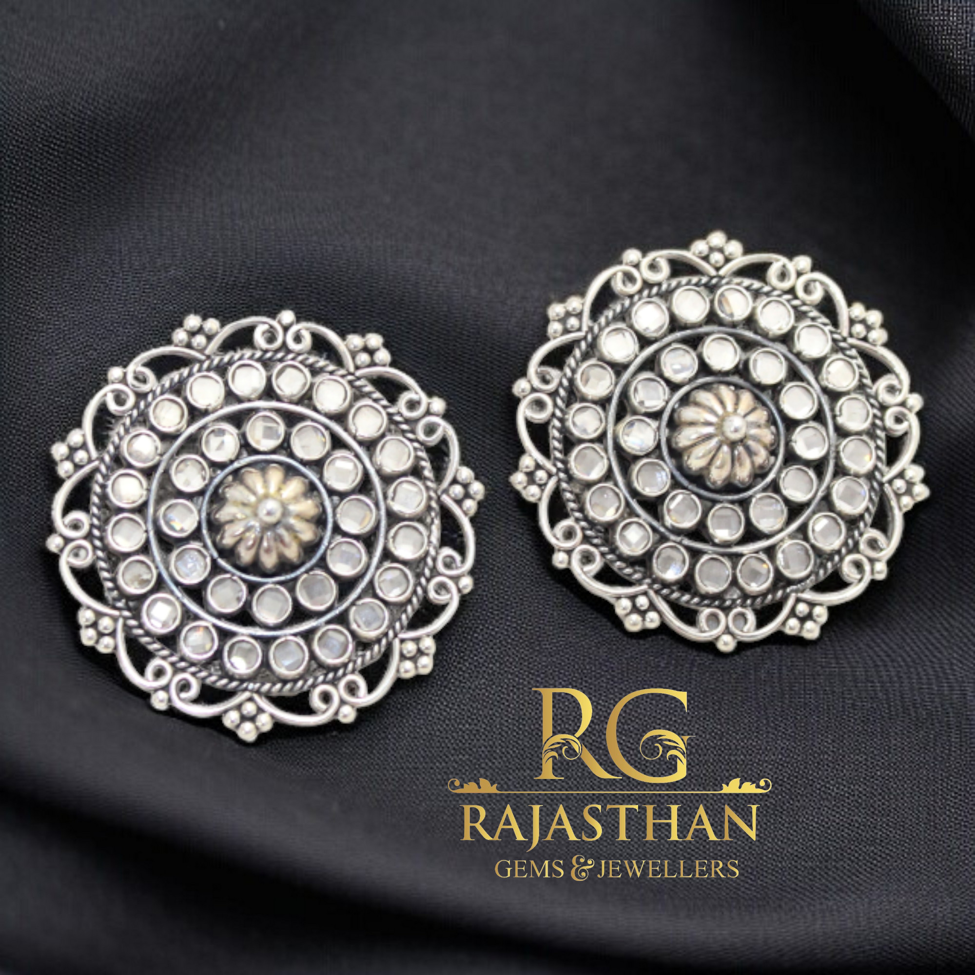 Rajasthan Gems Big Stud Earrings Tops Silver 925 Sterling Traditional Tribal Cubic Zirconia CZ Stone Handmade Gift Women G629