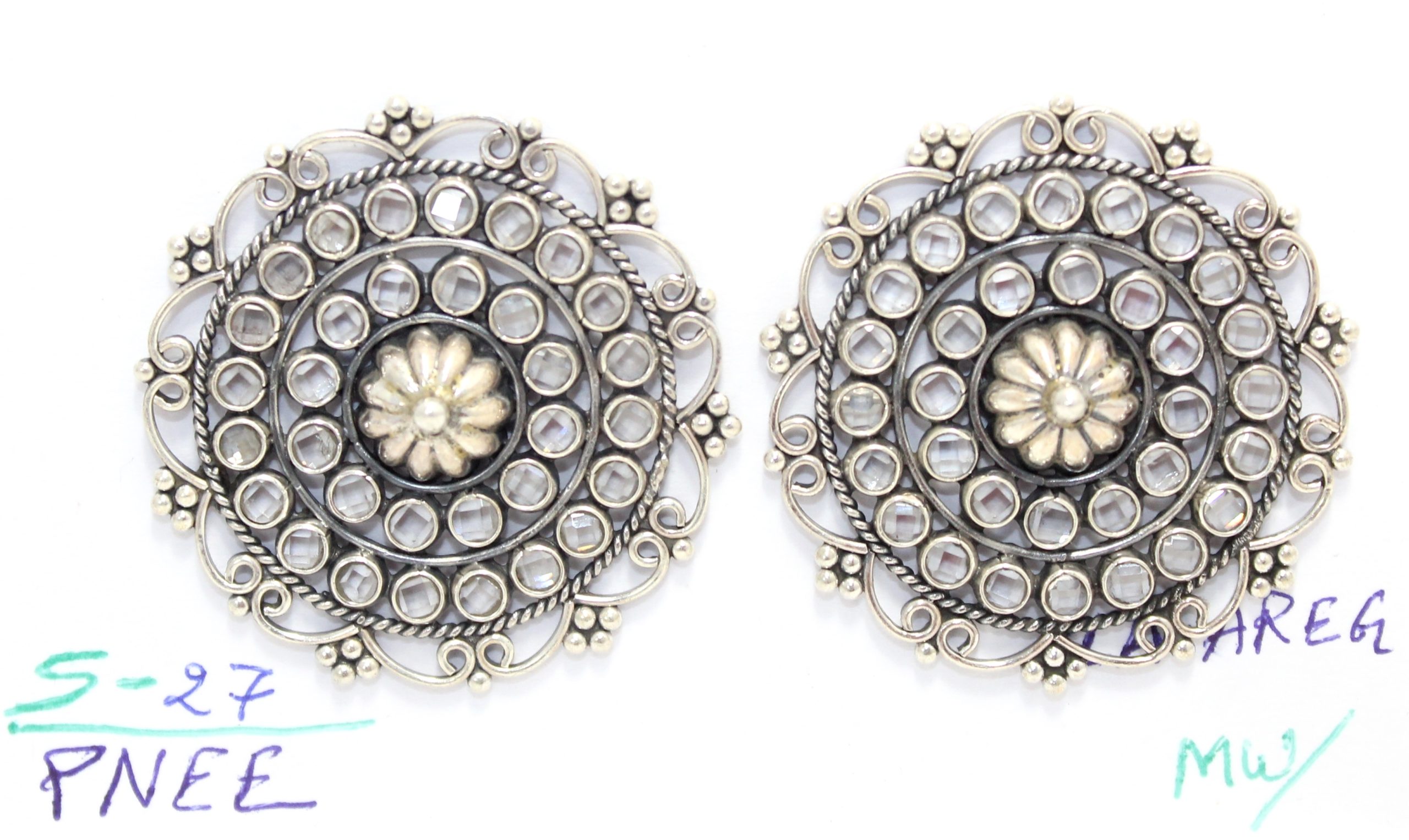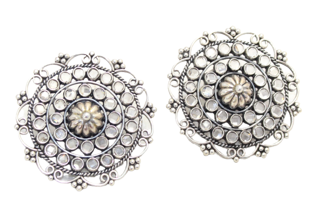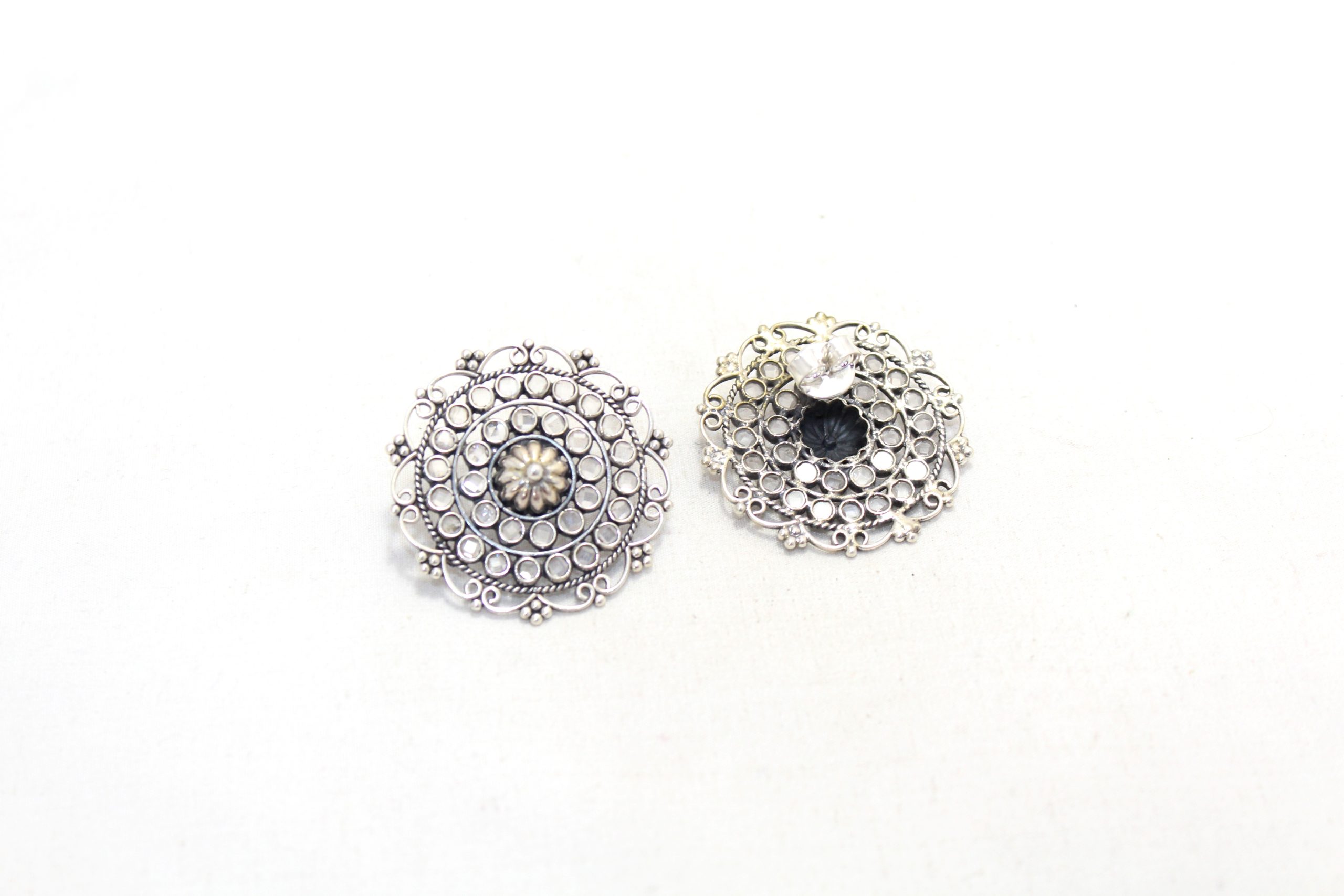 Rajasthan Gems Big Stud Earrings Tops Silver 925 Sterling Traditional Tribal Cubic Zirconia CZ Stone Handmade Gift Women G629