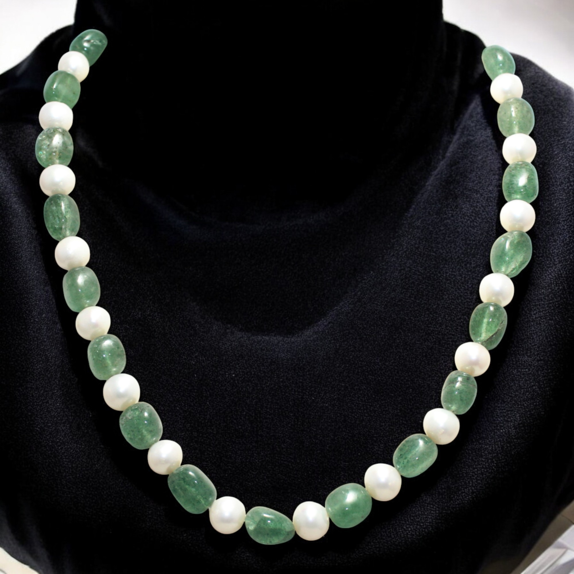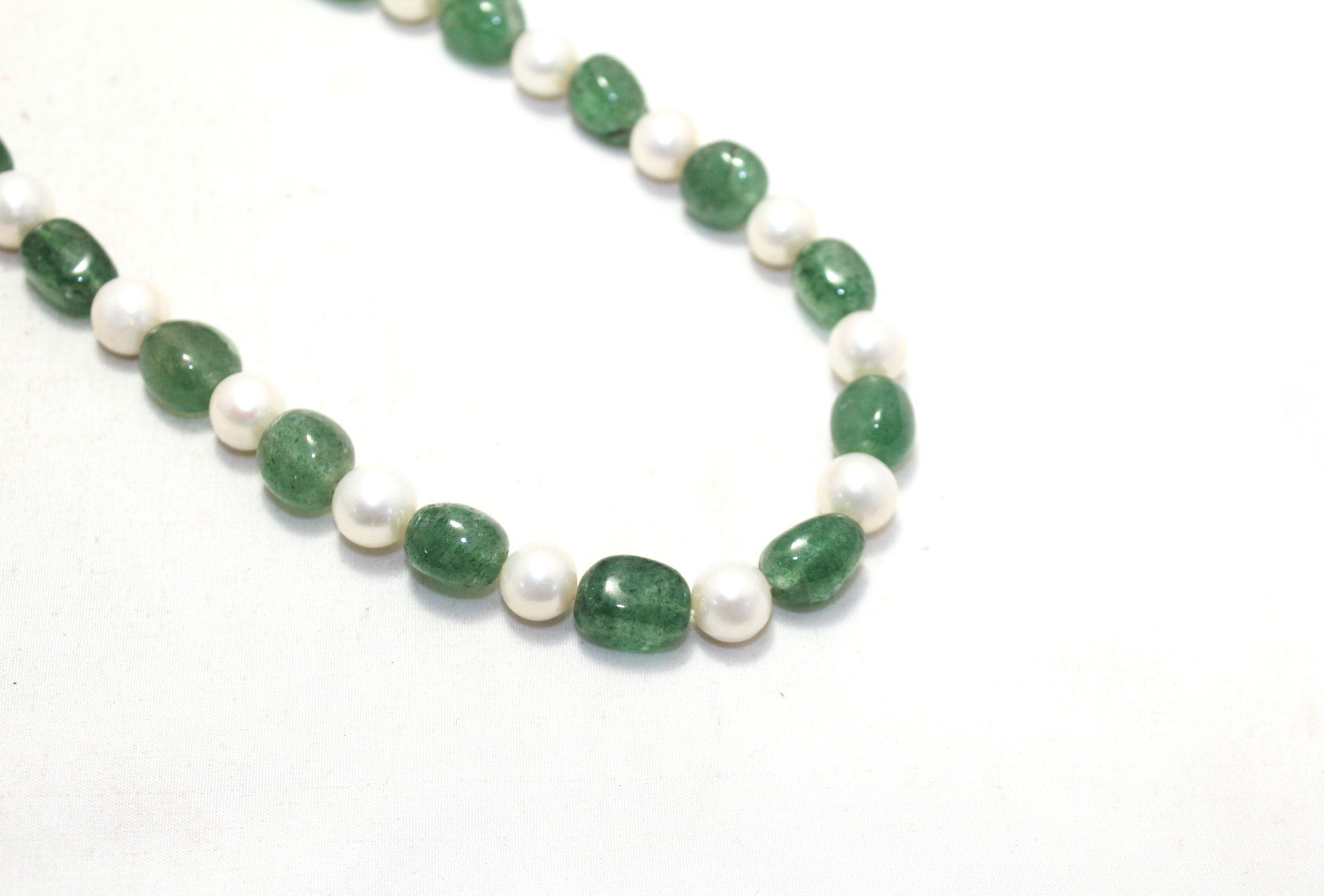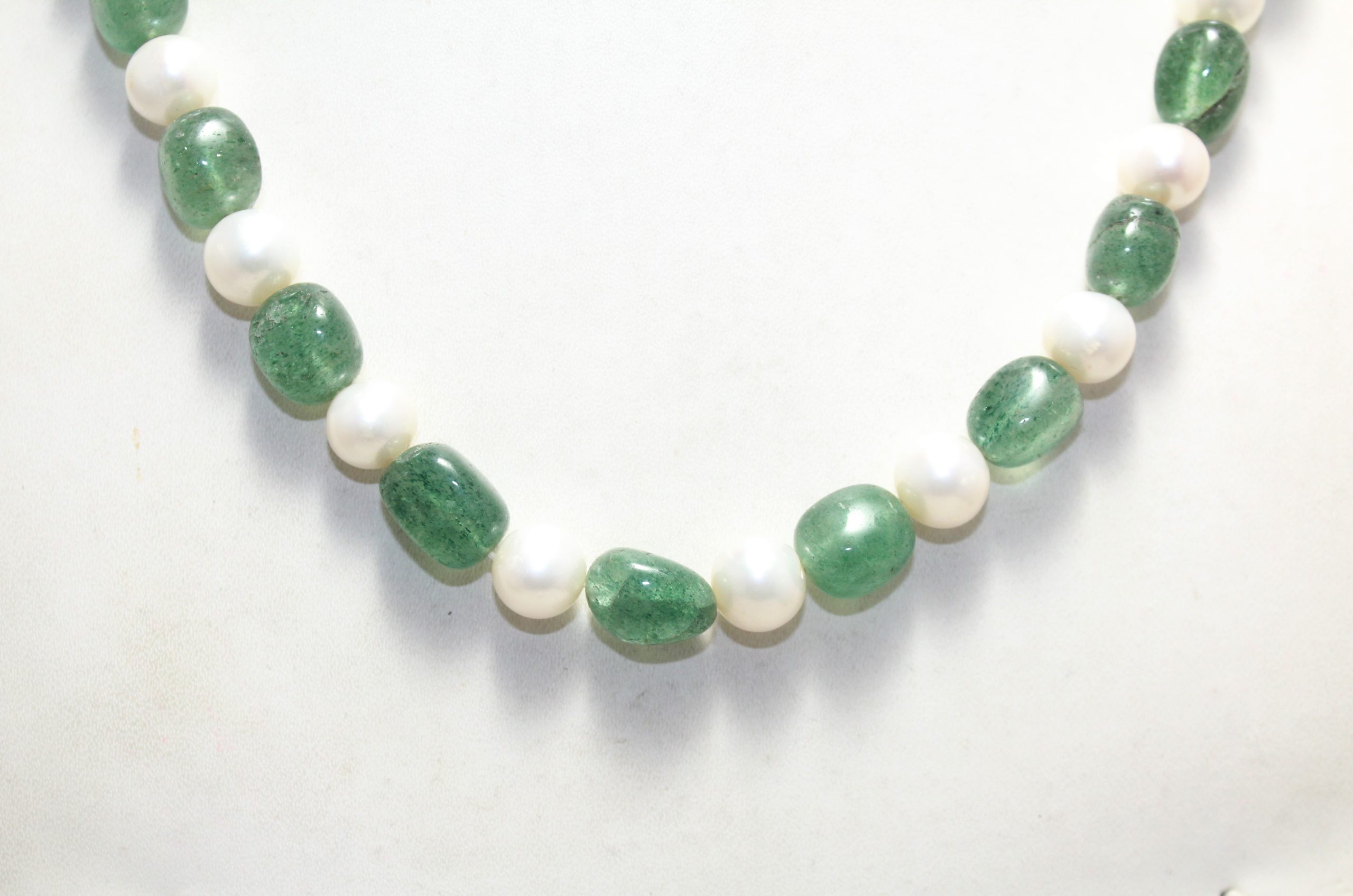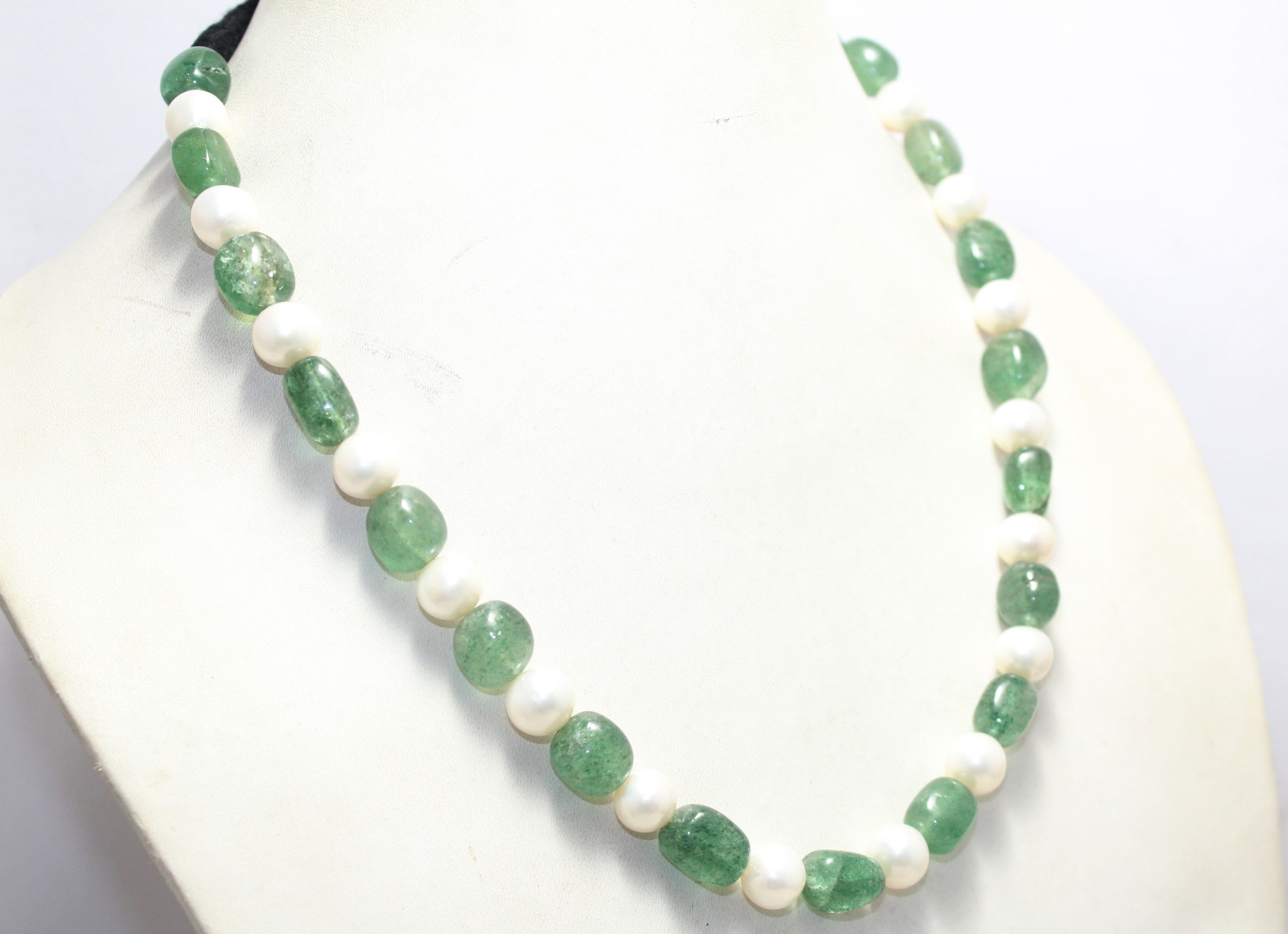 - Gem Stone : Green Strawberry Quartz & Pearl