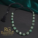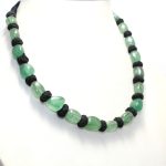 Rajasthan Gems Black Thread Bead Necklace Strand Beaded Natural Green Strawberry Quartz Gem Stone Gemstone Tumble Beads Tribal Adjustable H102