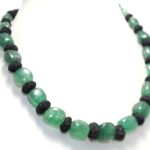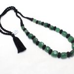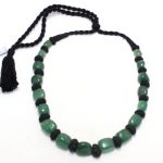 Rajasthan Gems Black Thread Bead Necklace Strand Beaded Natural Green Strawberry Quartz Gem Stone Gemstone Tumble Beads Tribal Adjustable H152