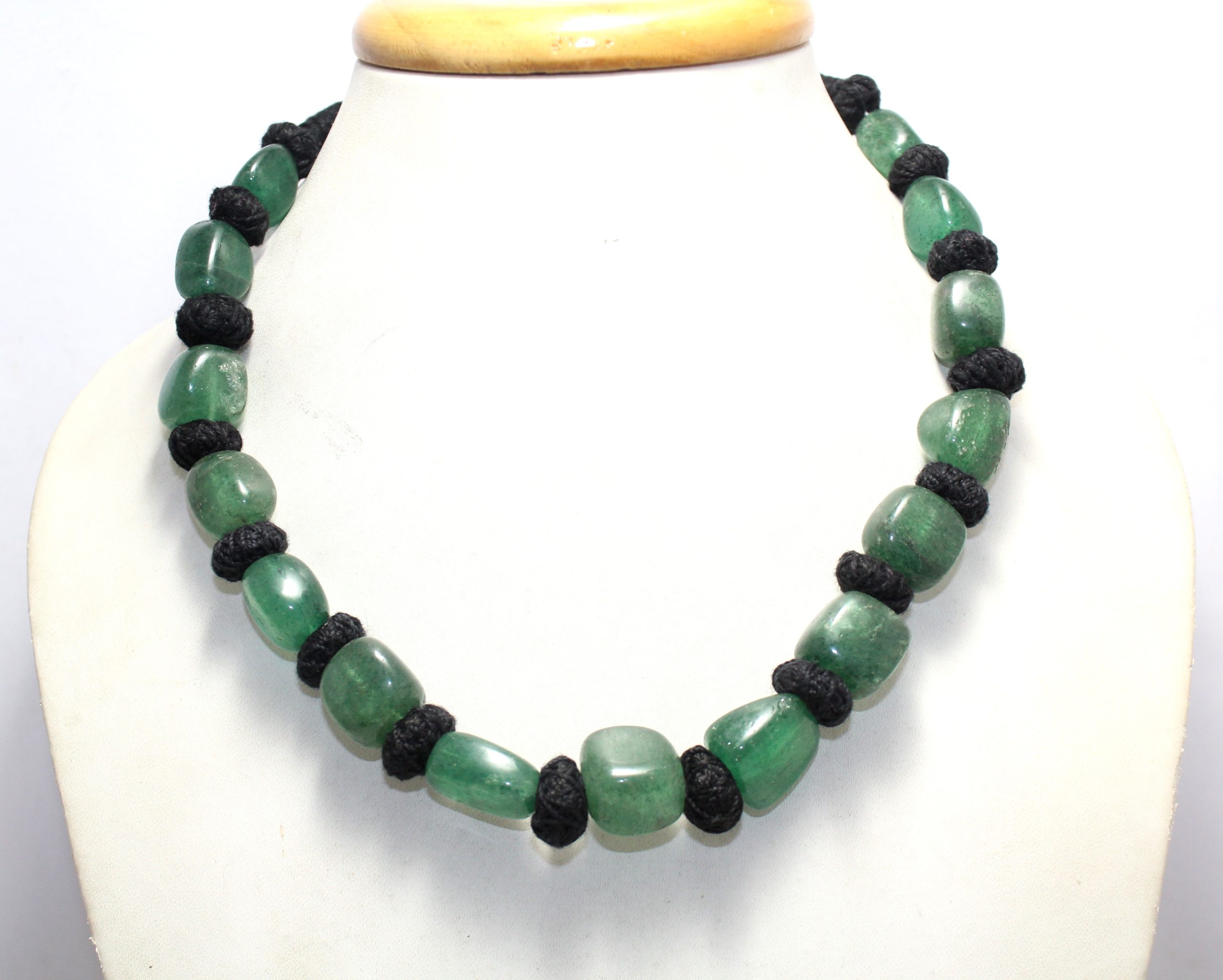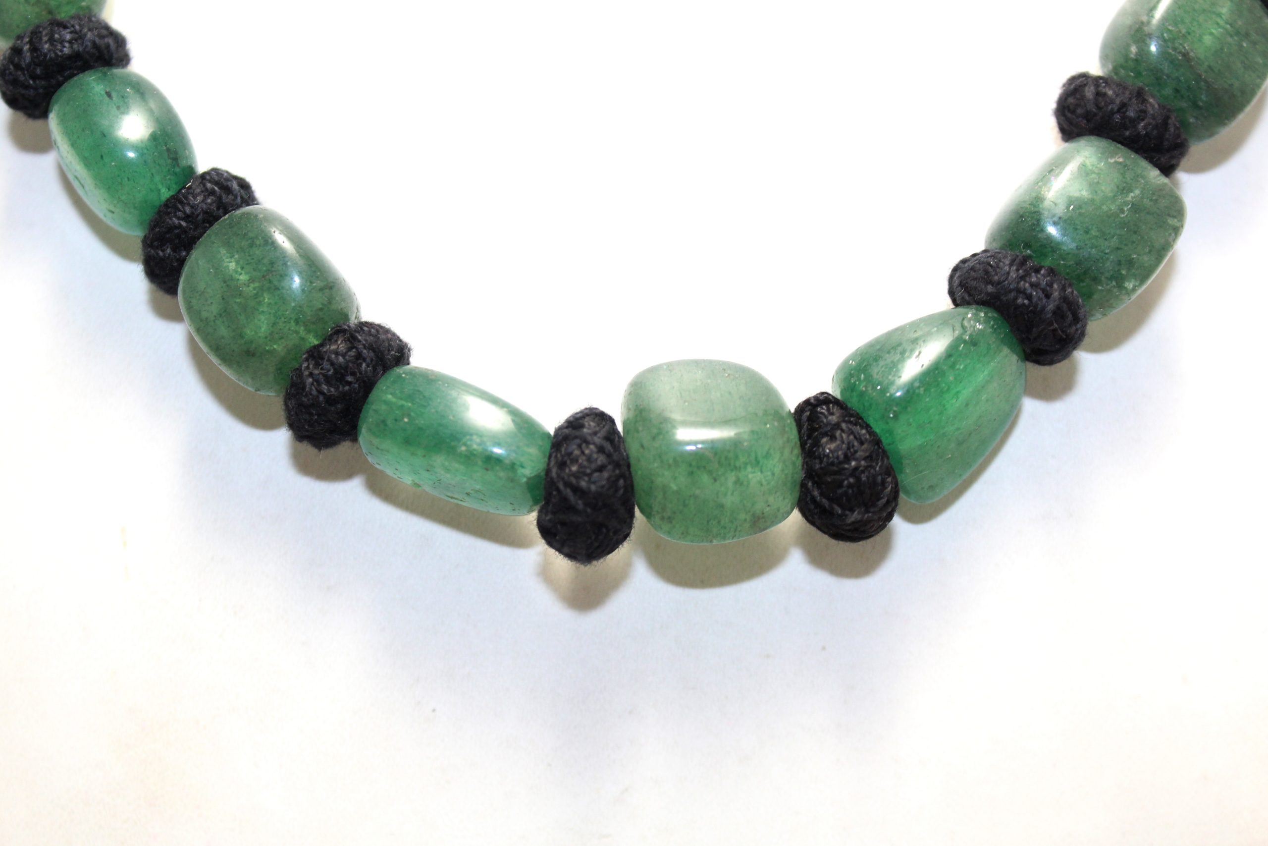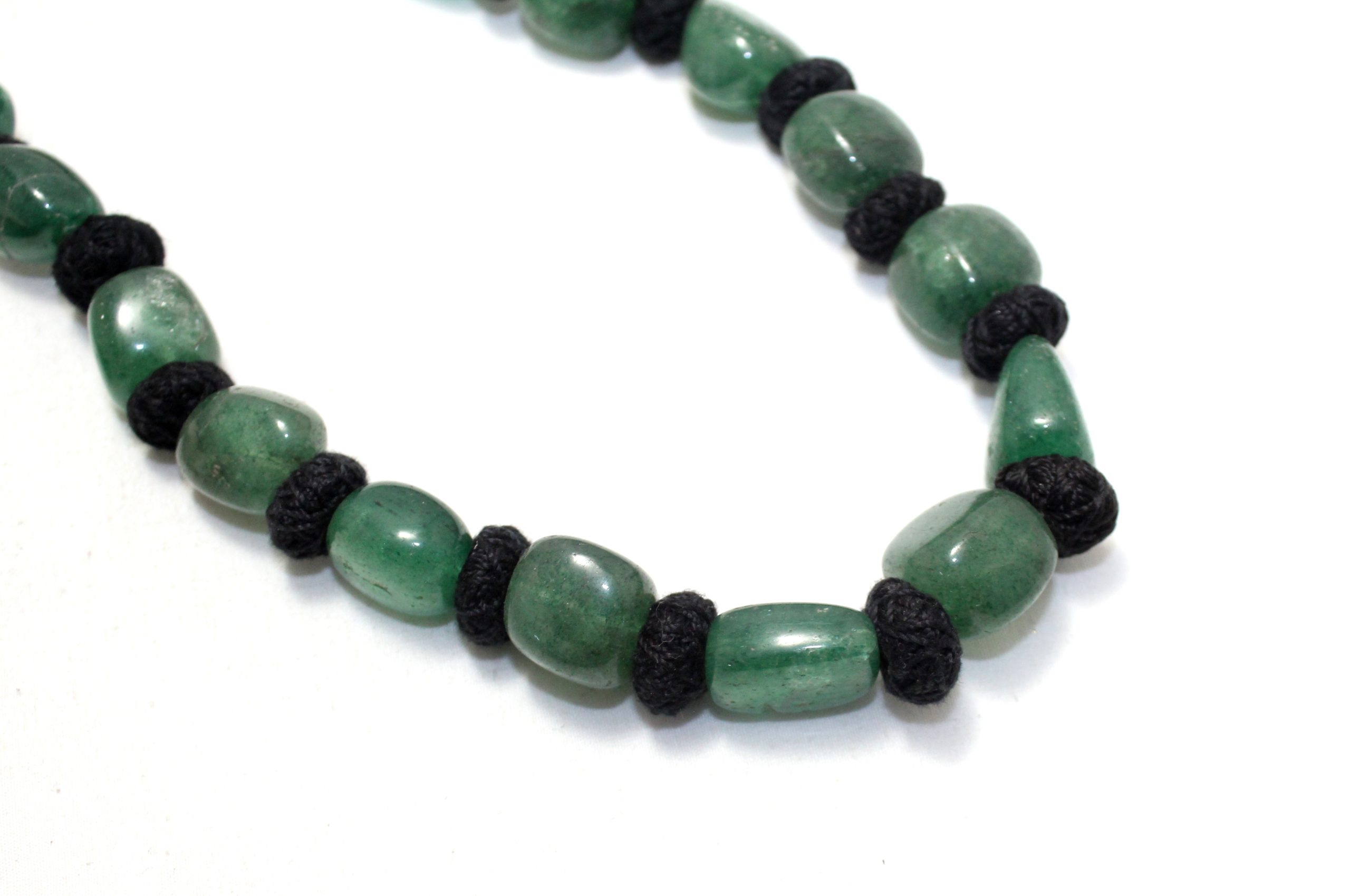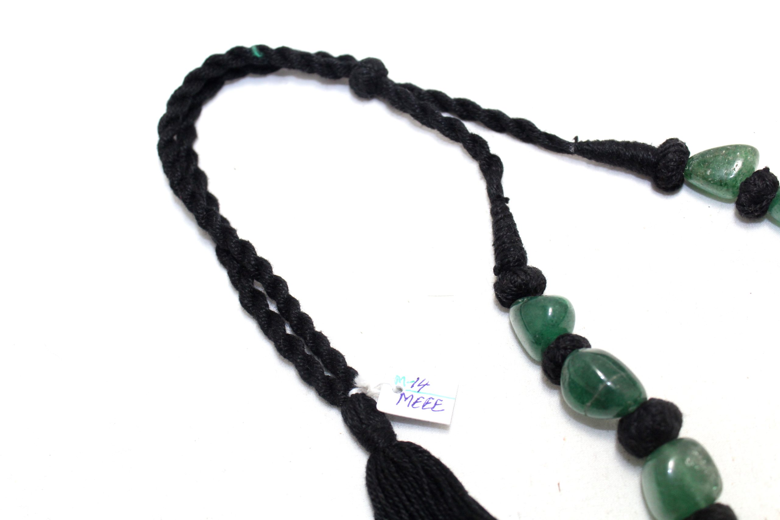 Rajasthan Gems Black Thread Bead Necklace Strand Beaded Natural Green Strawberry Quartz Gem Stone Gemstone Tumble Beads Tribal Adjustable H162