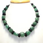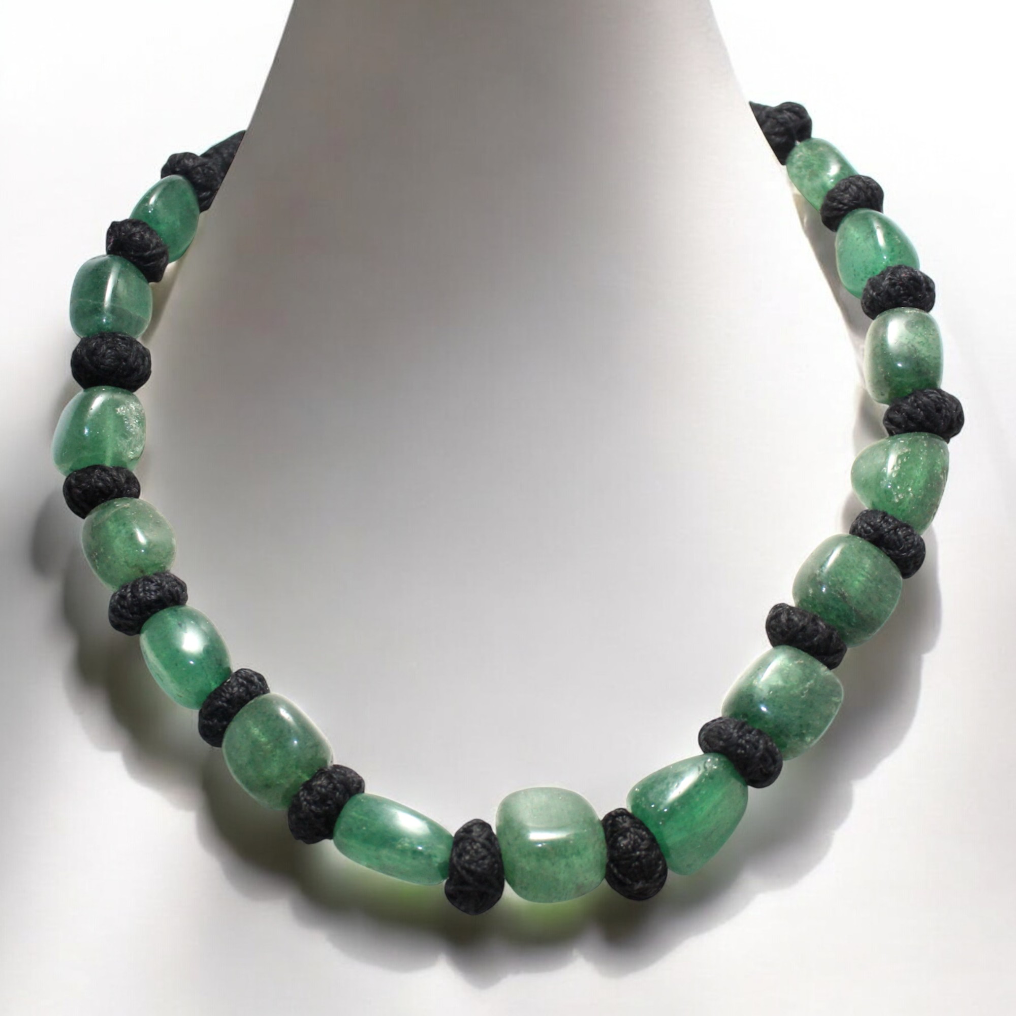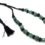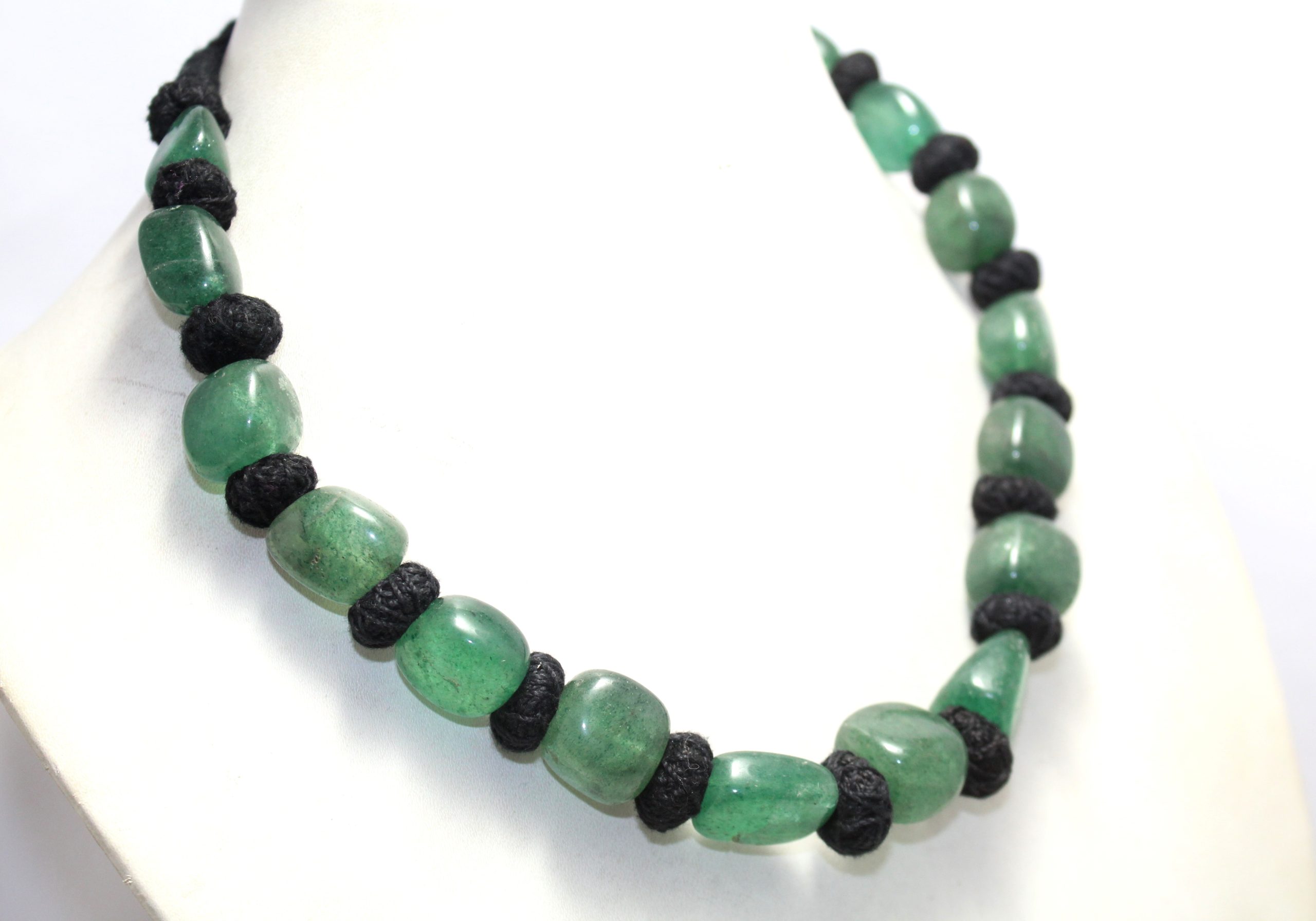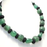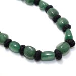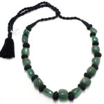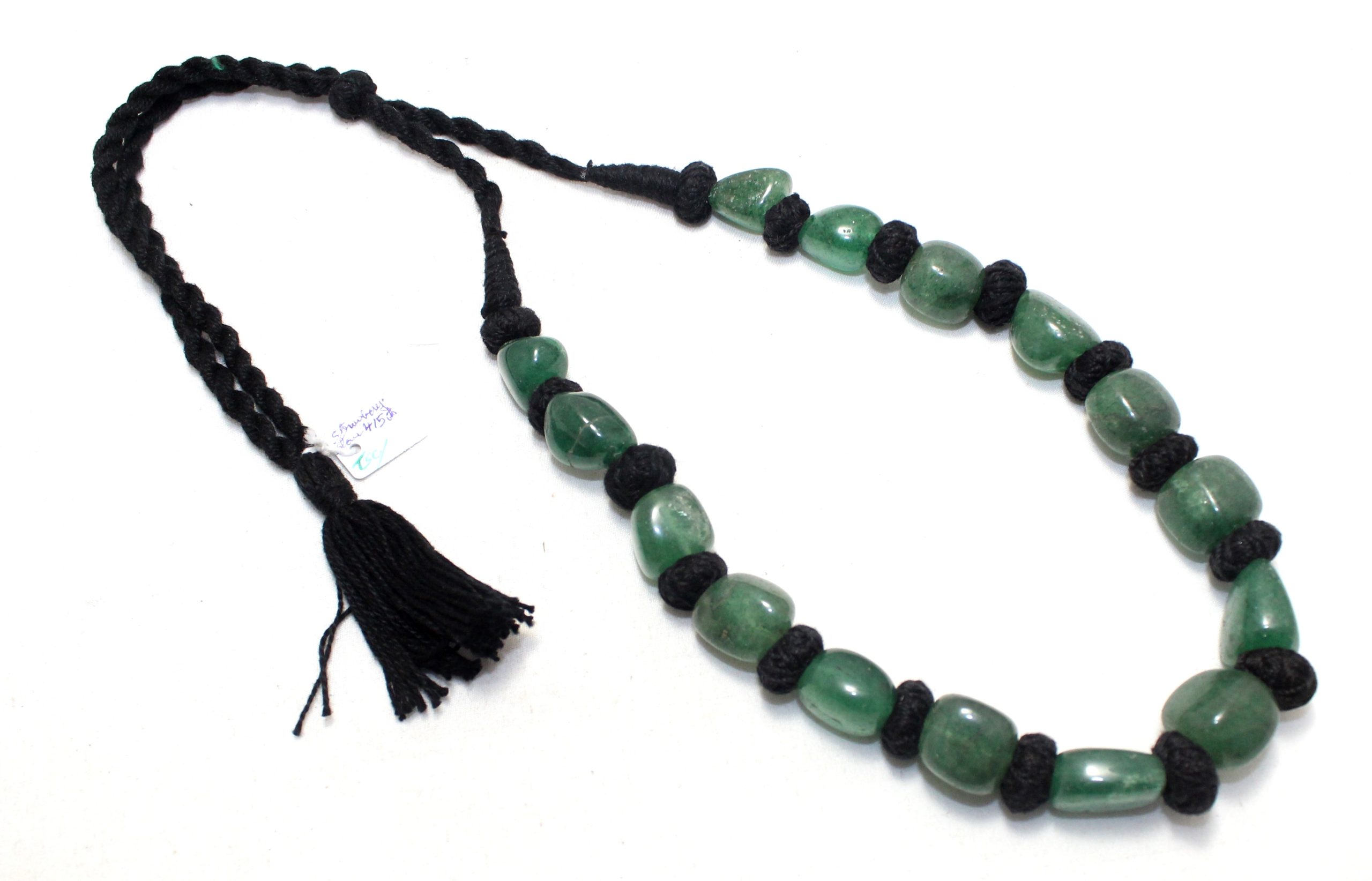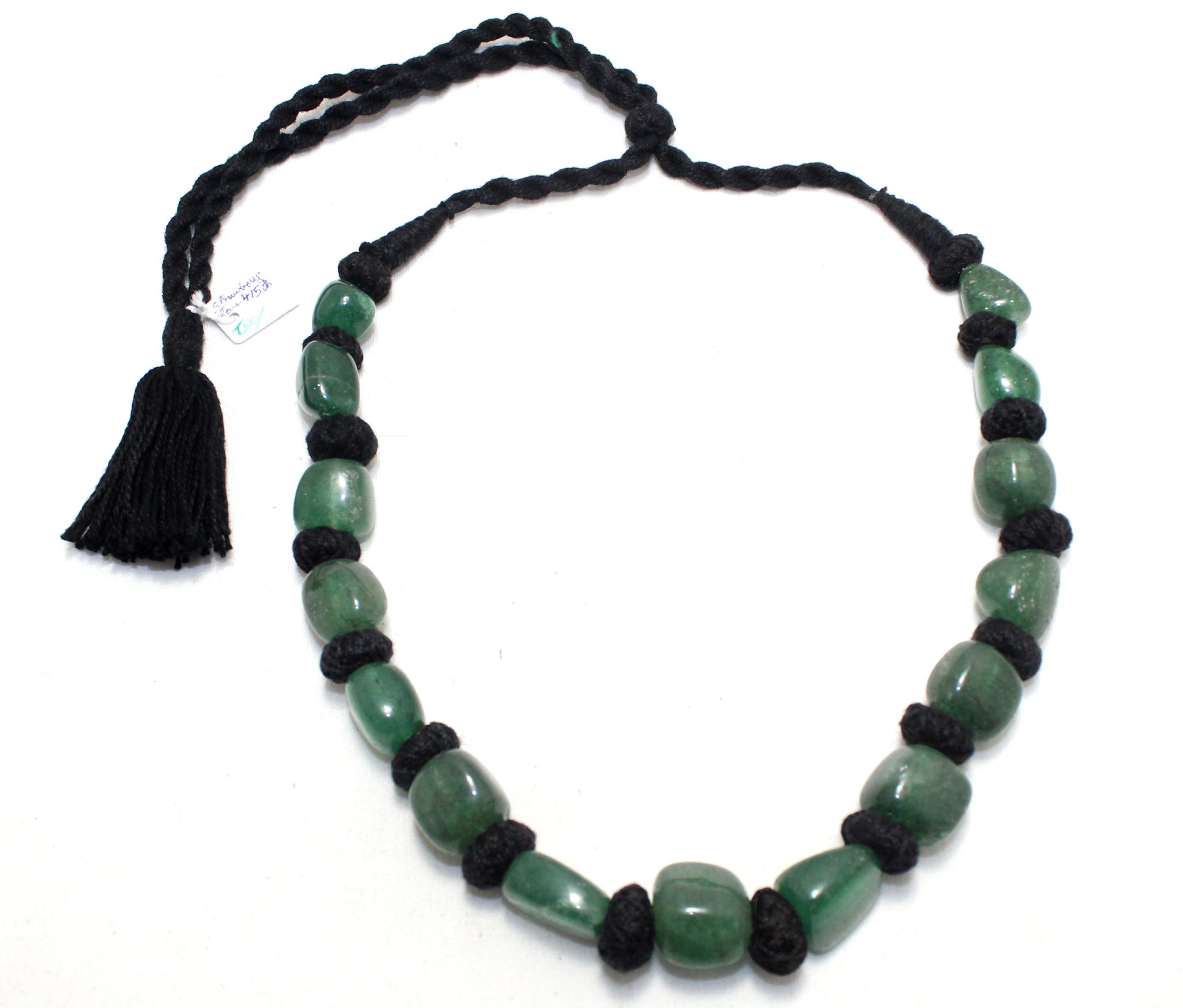 Rajasthan Gems Black Thread Bead Necklace Strand Beaded Natural Green Strawberry Quartz Gem Stone Gemstone Tumble Beads Tribal Adjustable H162