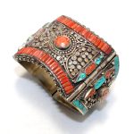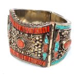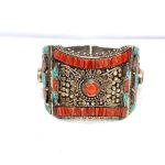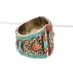 Rajasthan Gems Bracelet Alloy Steel Natural Orange & Turquoise Gem Stone Tibetan Nepal Handmade Women Gift H300
