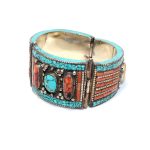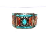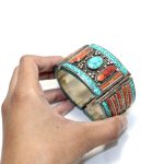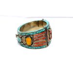 Rajasthan Gems Bracelet Alloy Steel Natural Orange & Turquoise Gem Stone Tibetan Nepal Handmade Women Gift H301