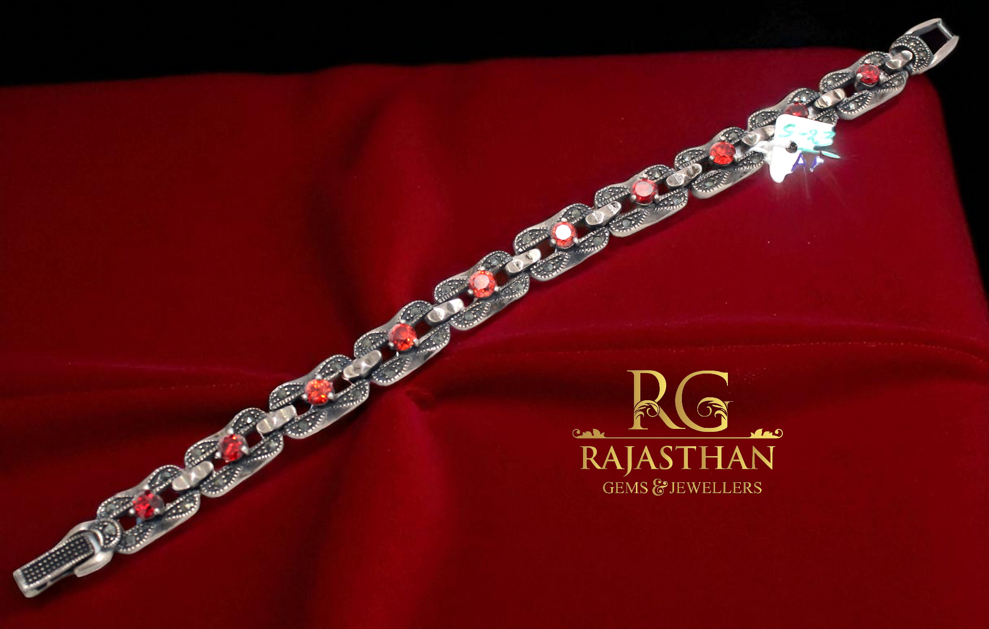 Rajasthan Gems Bracelet Silver Sterling 925 Jewelry Cubic Zirconia CZ & Marcasite Stone Women Handmade Gift F940