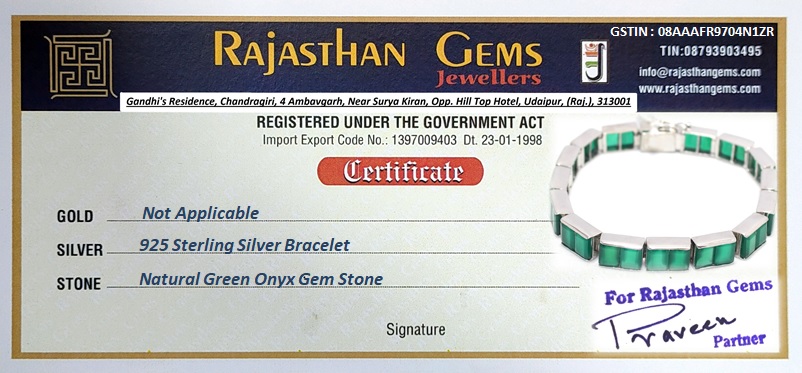 Rajasthan Gems Bracelet Silver Sterling 925 Jewelry Natural Green Onyx Gem Stone Women Handmade Gift F946