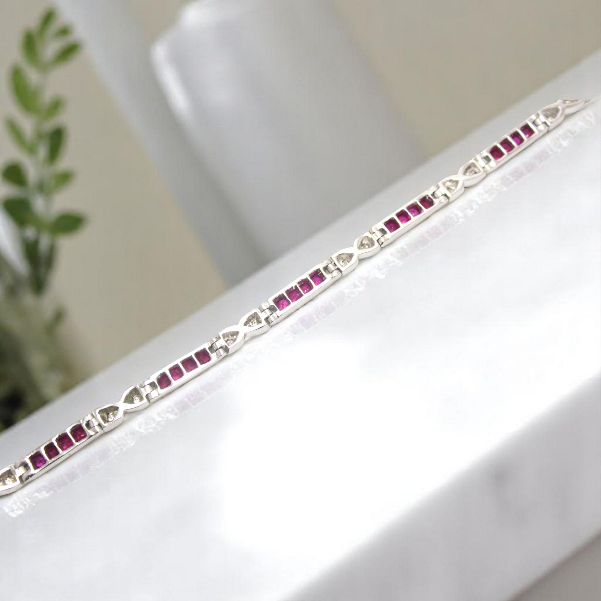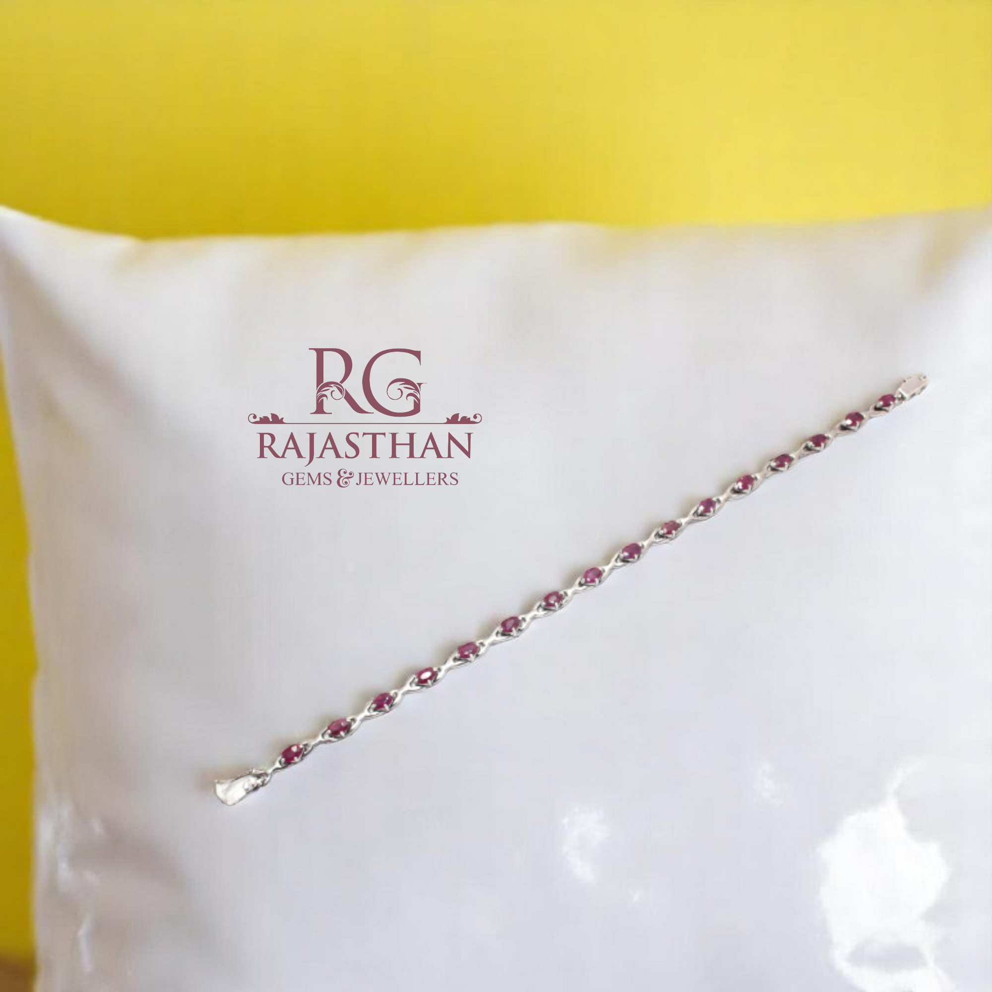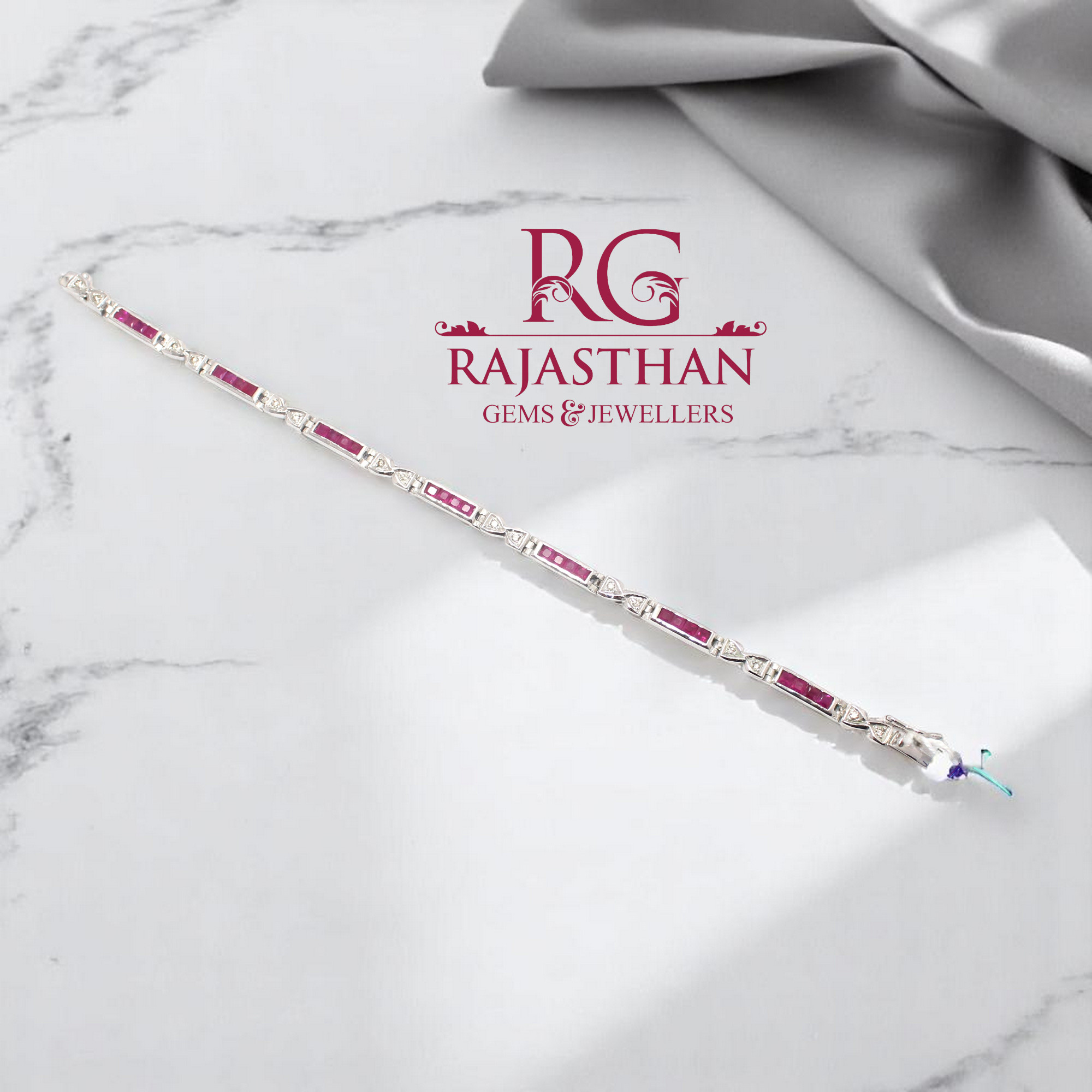 Rajasthan Gems Bracelet Silver Sterling 925 Jewelry Natural Ruby Gem Stone & Diamond Women Handmade Gift Gemstone Diamonds F746