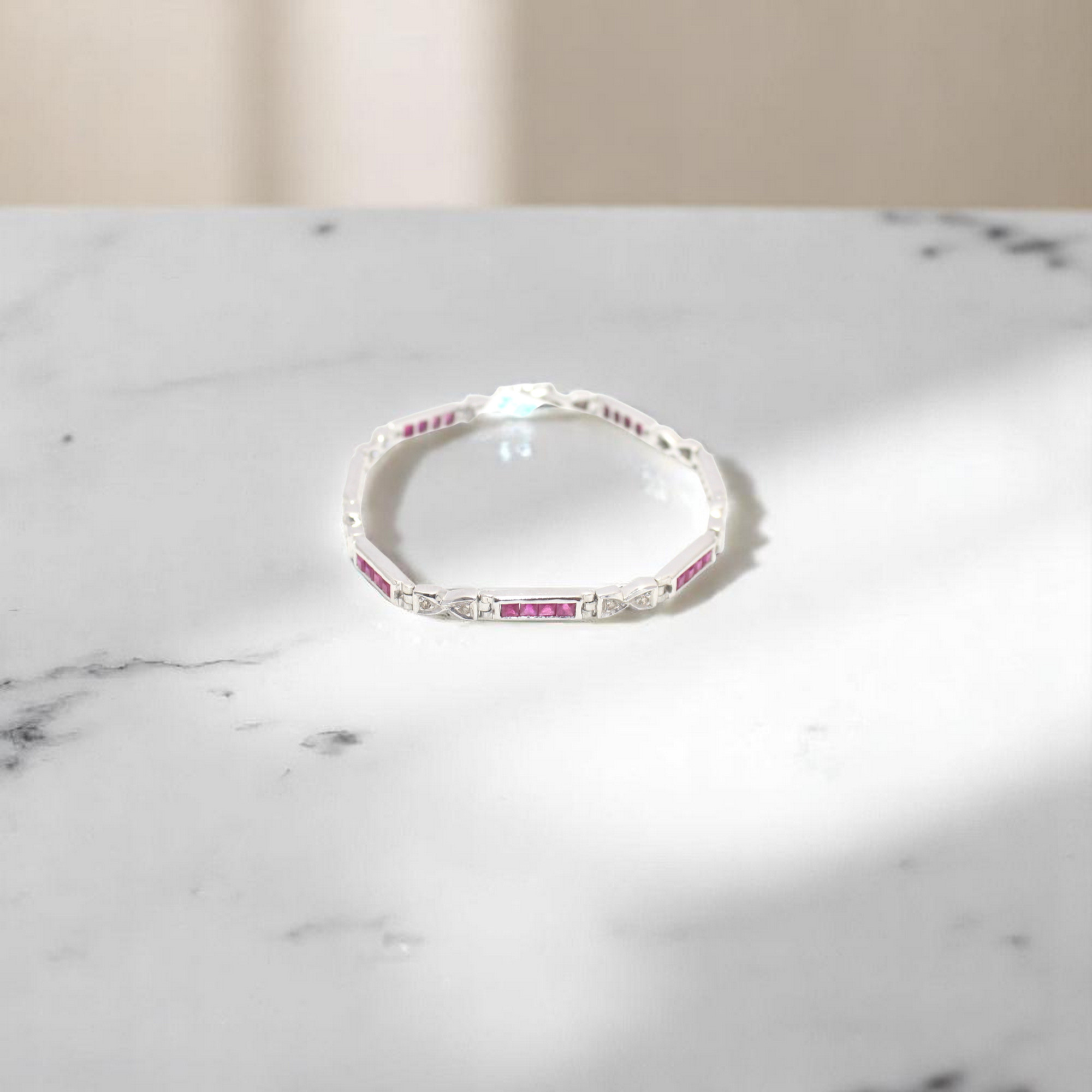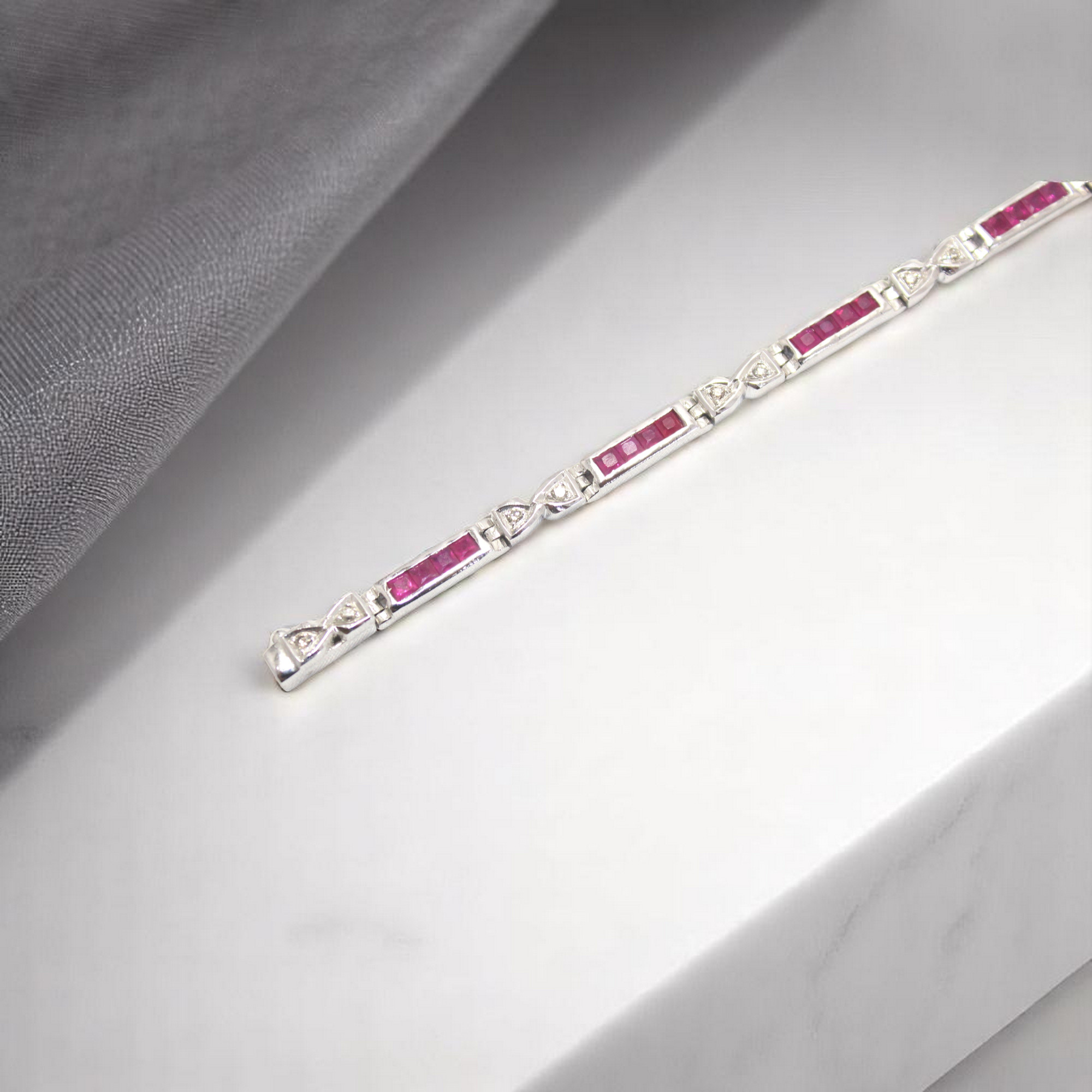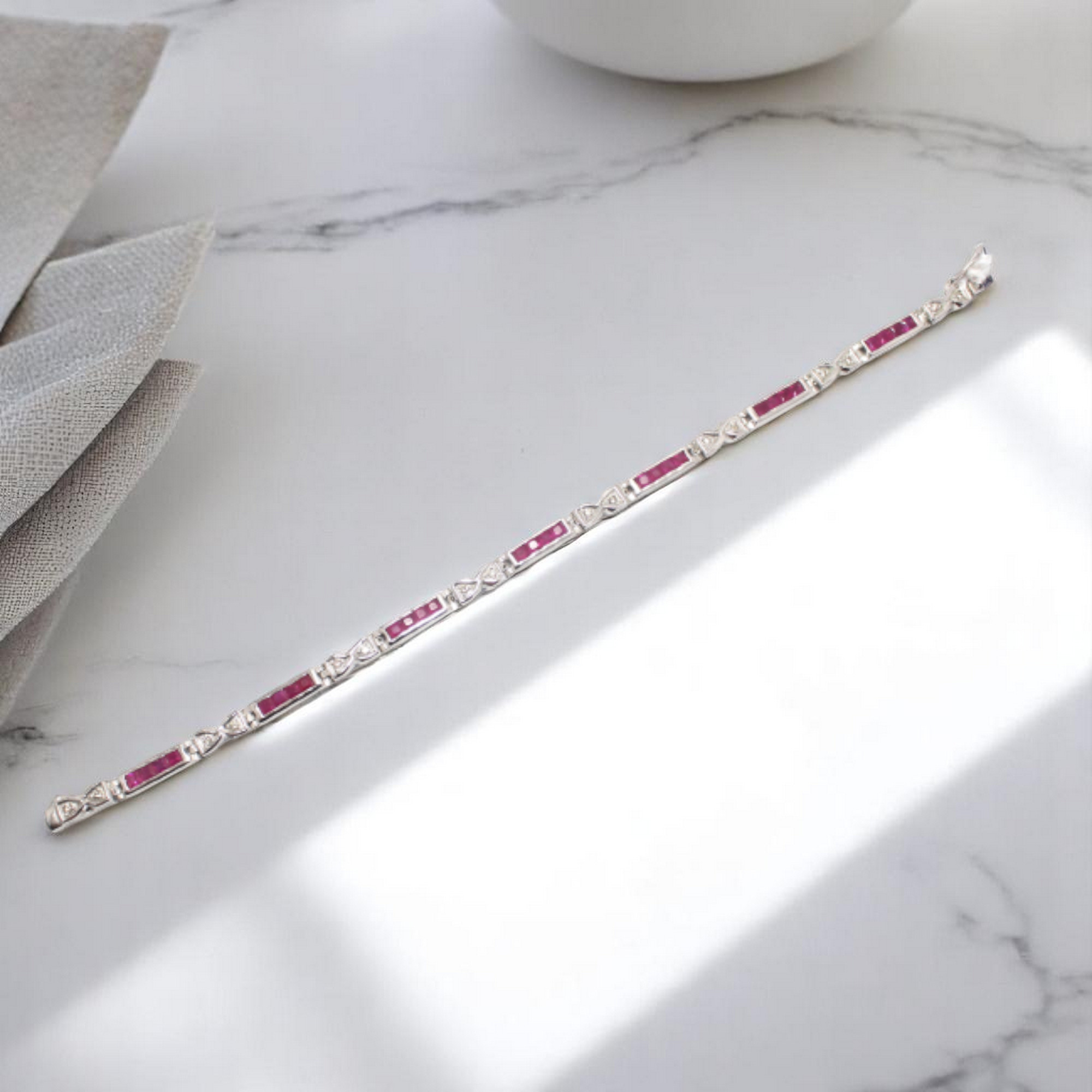 Rajasthan Gems Bracelet Silver Sterling 925 Jewelry Natural Ruby Gem Stone & Diamond Women Handmade Gift Gemstone Diamonds F746