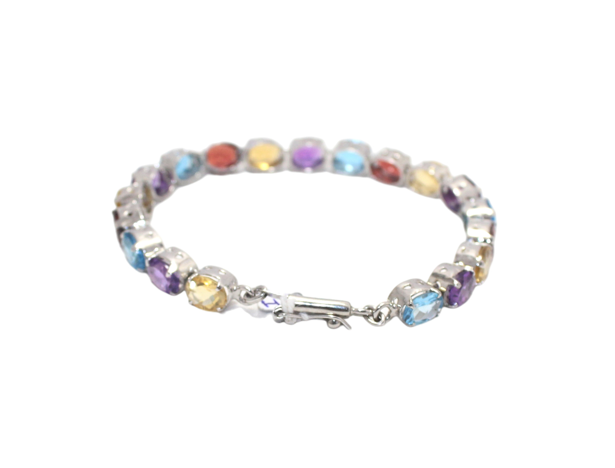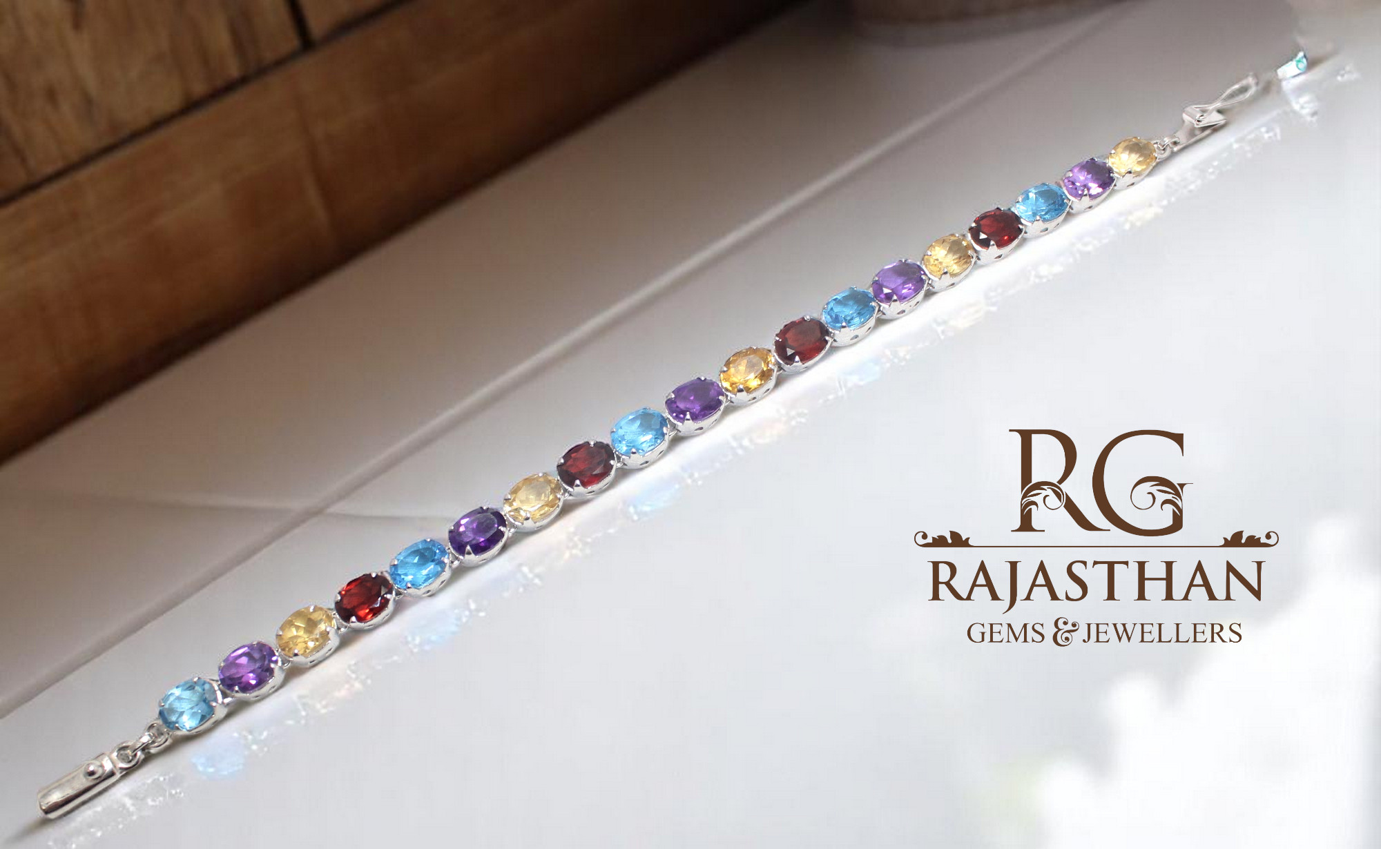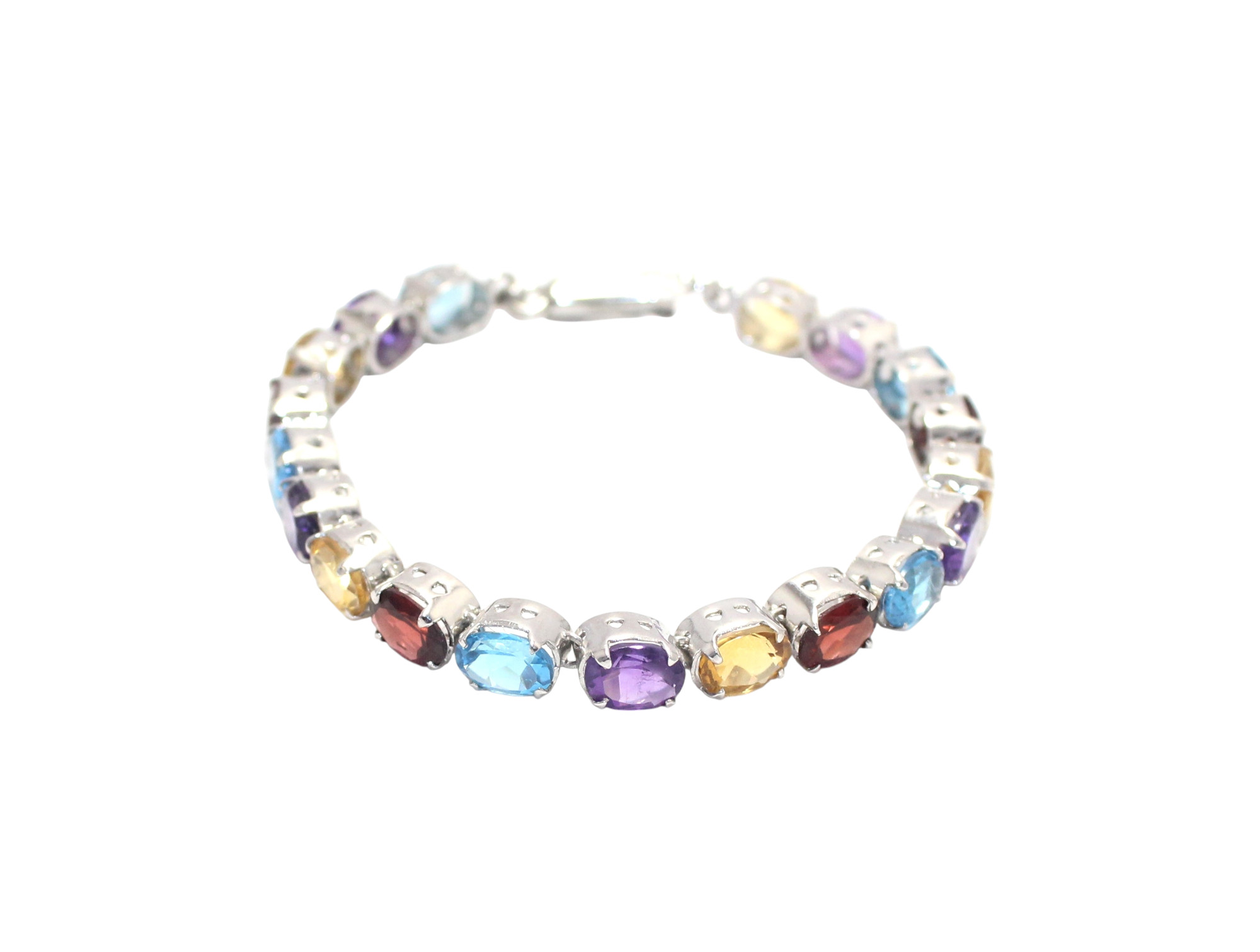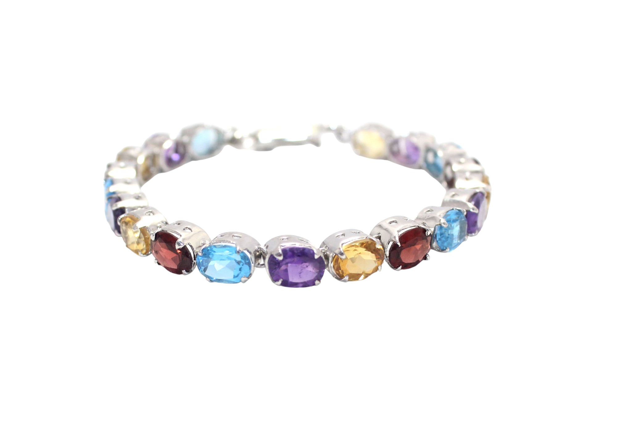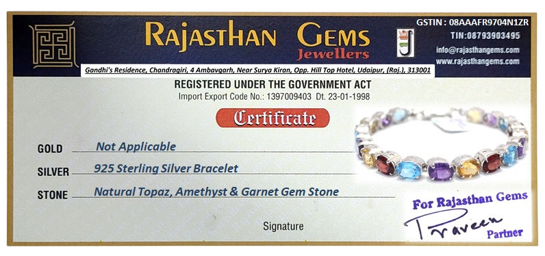 Rajasthan Gems Bracelet Silver Sterling 925 Jewelry Natural Topaz Peridot Amethyst Garnet Gem Stone Women Handmade Gift F758