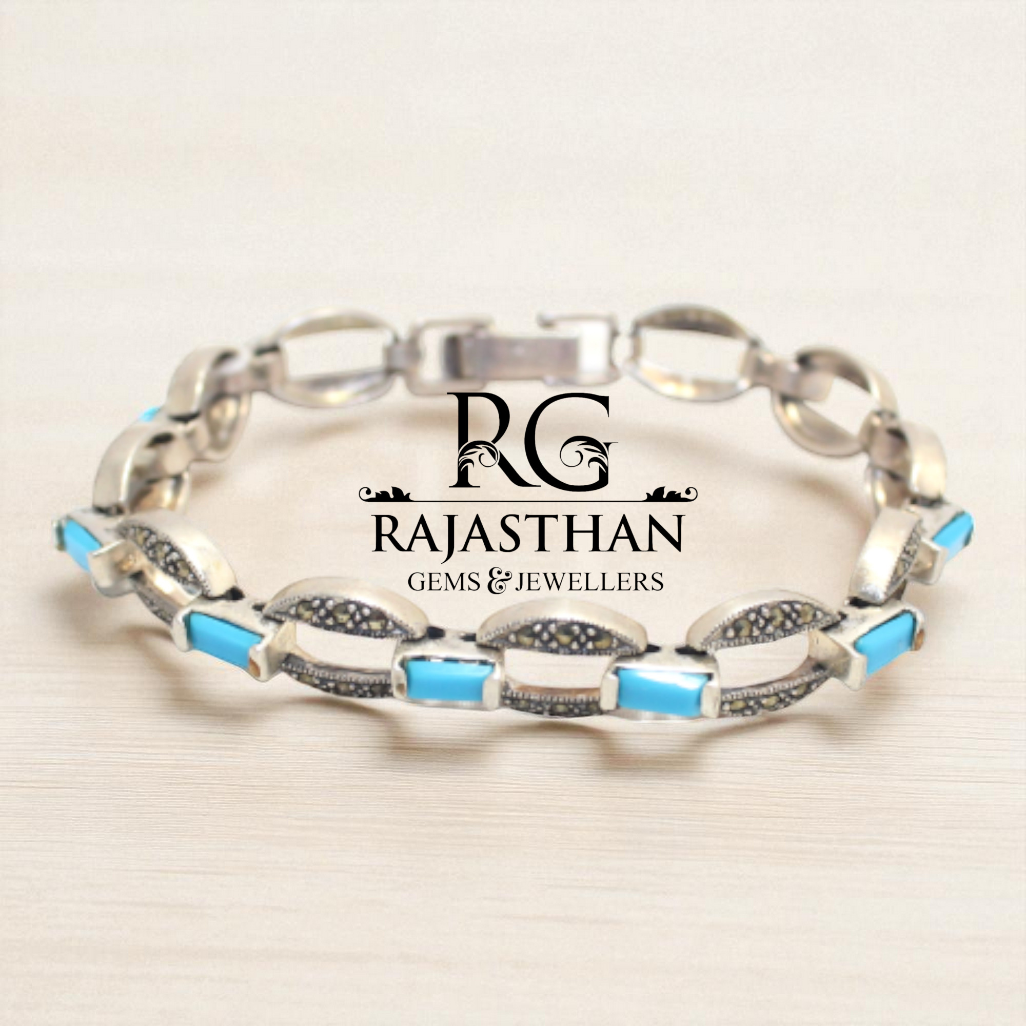 Rajasthan Gems Bracelet Silver Sterling 925 Jewelry Turquoise & Marcasite Stone Women Handmade Gift F994