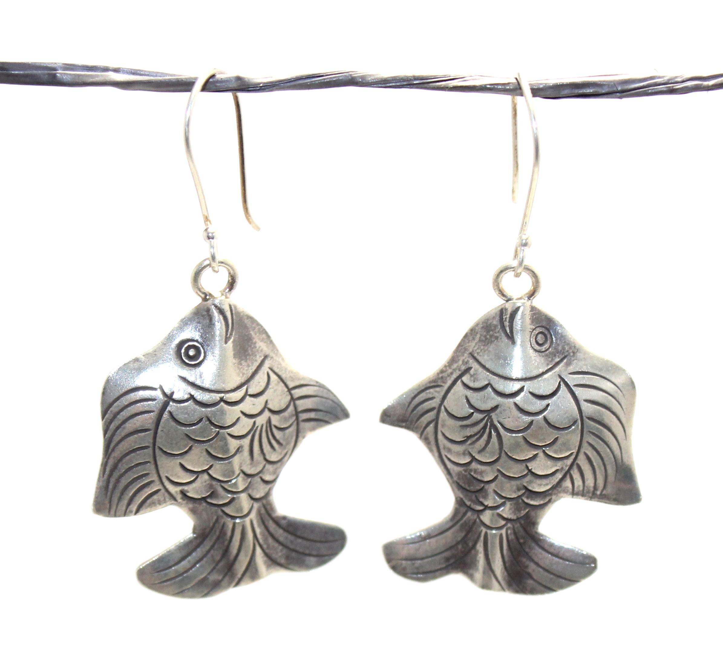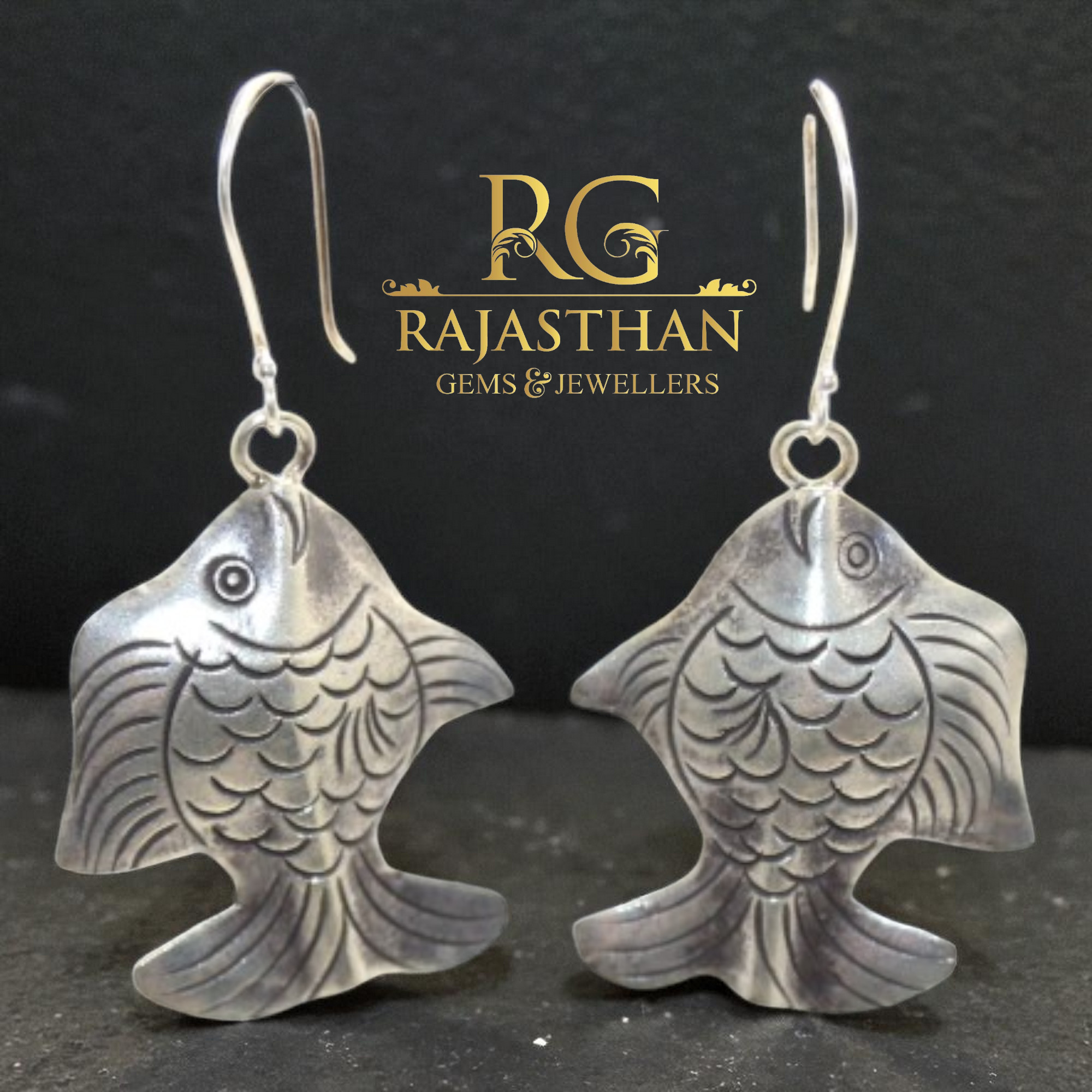 Rajasthan Gems Charm Fish Dangle Earrings 925 Sterling Silver Handmade Women Gift G682
