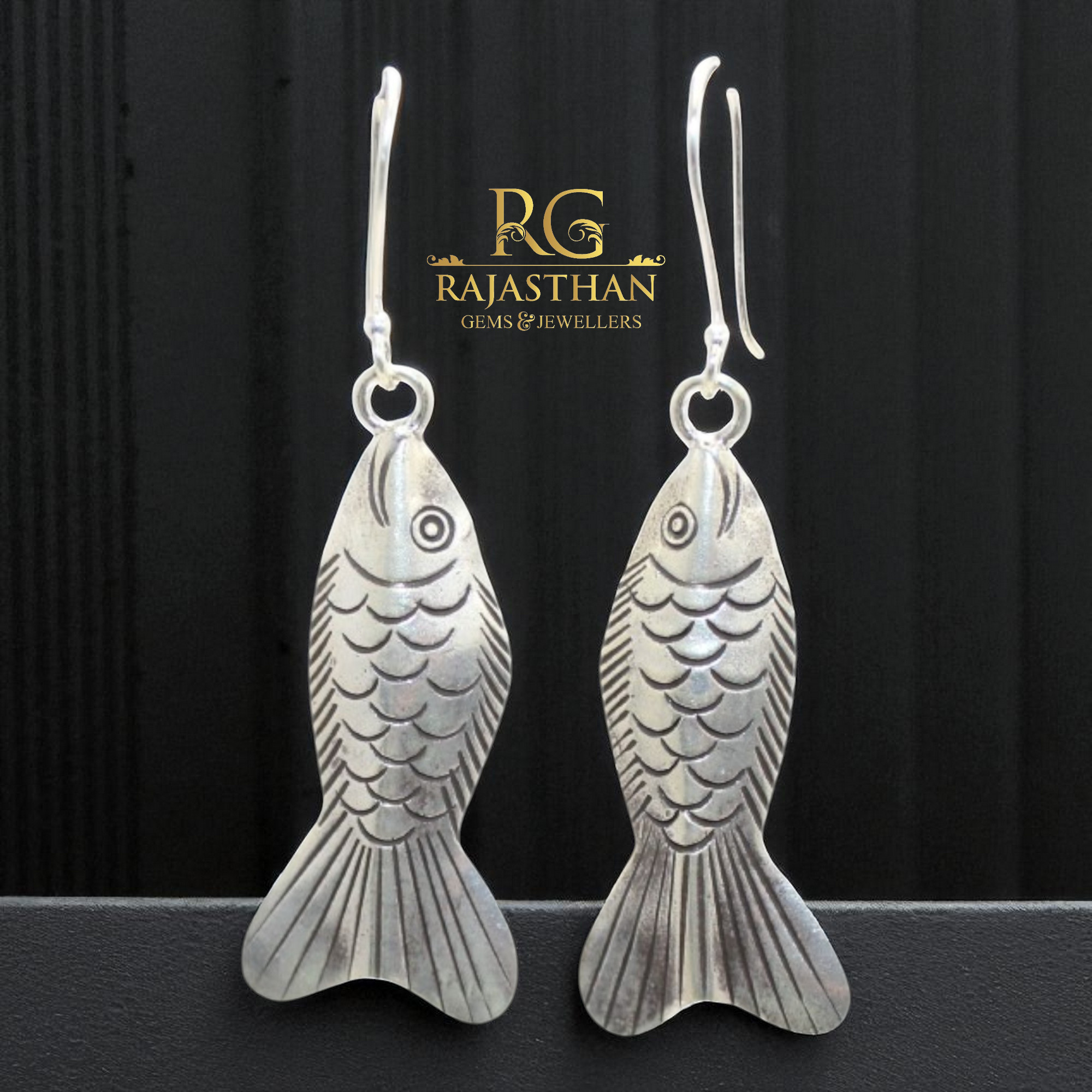 Rajasthan Gems Charm Fish Earrings 925 Sterling Silver Traditional Tribal Handmade Women Gift G455