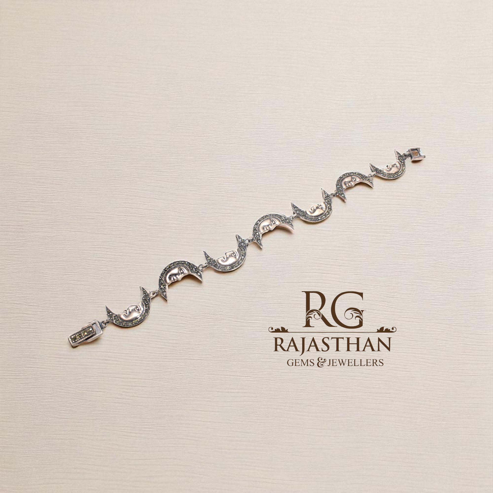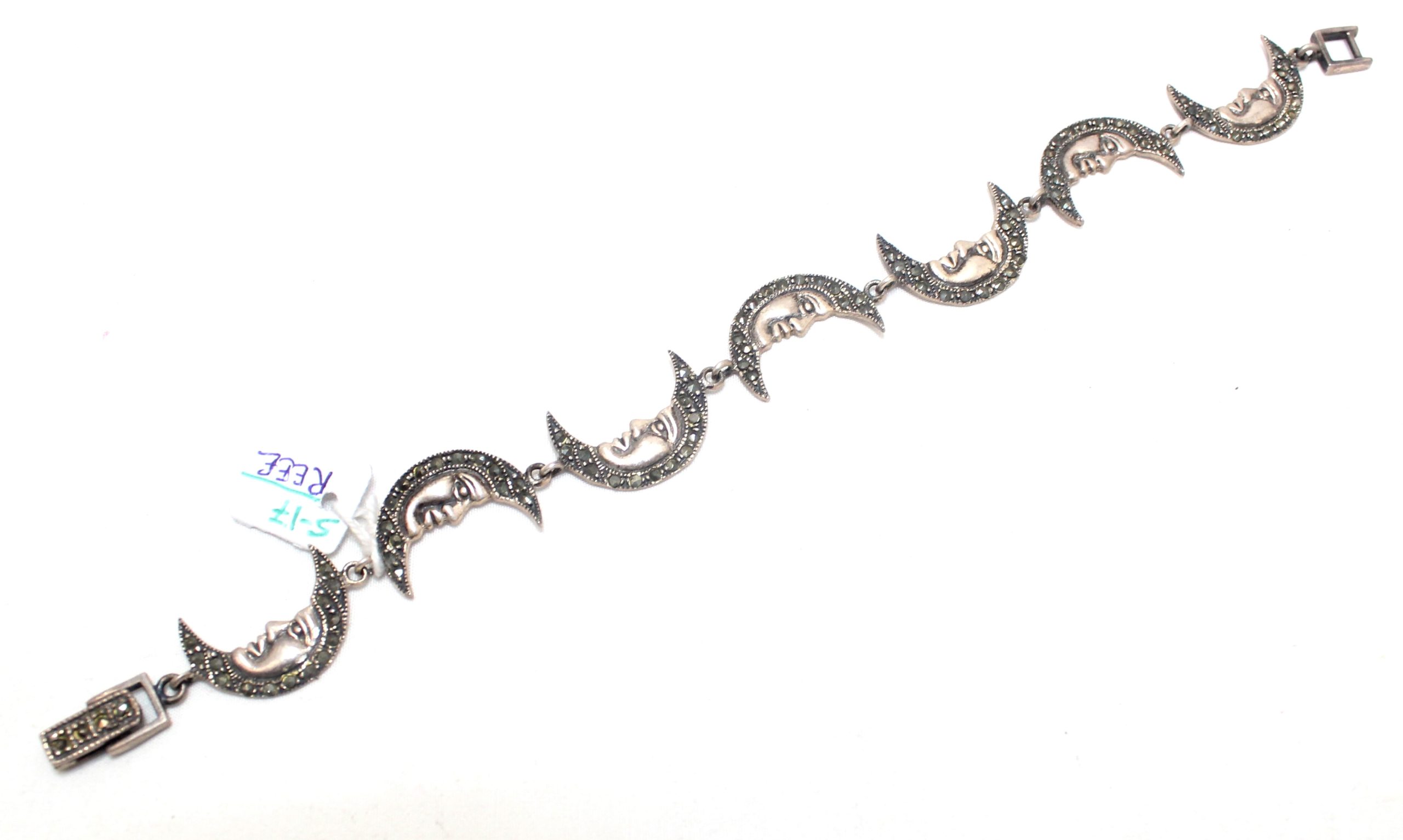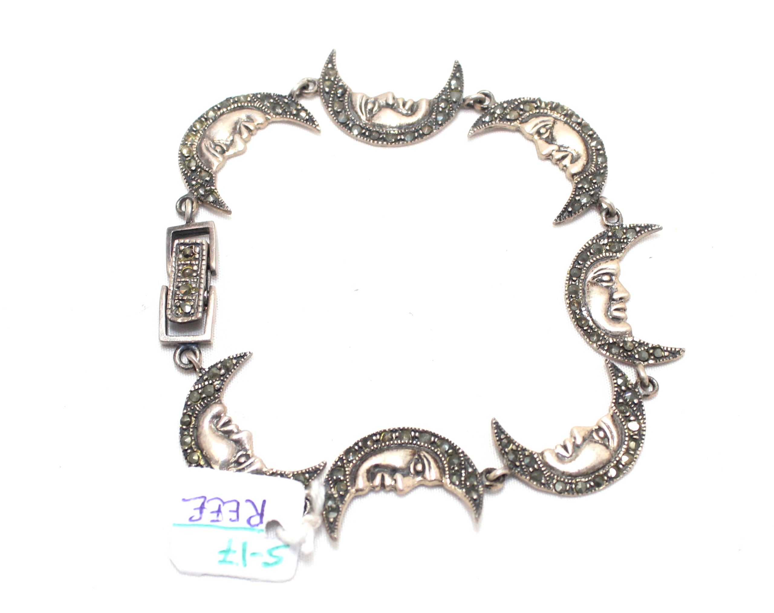 Rajasthan Gems Charm Half Moon Bracelet Silver Sterling 925 Jewelry Marcasite Stone Women Handmade Gift F955