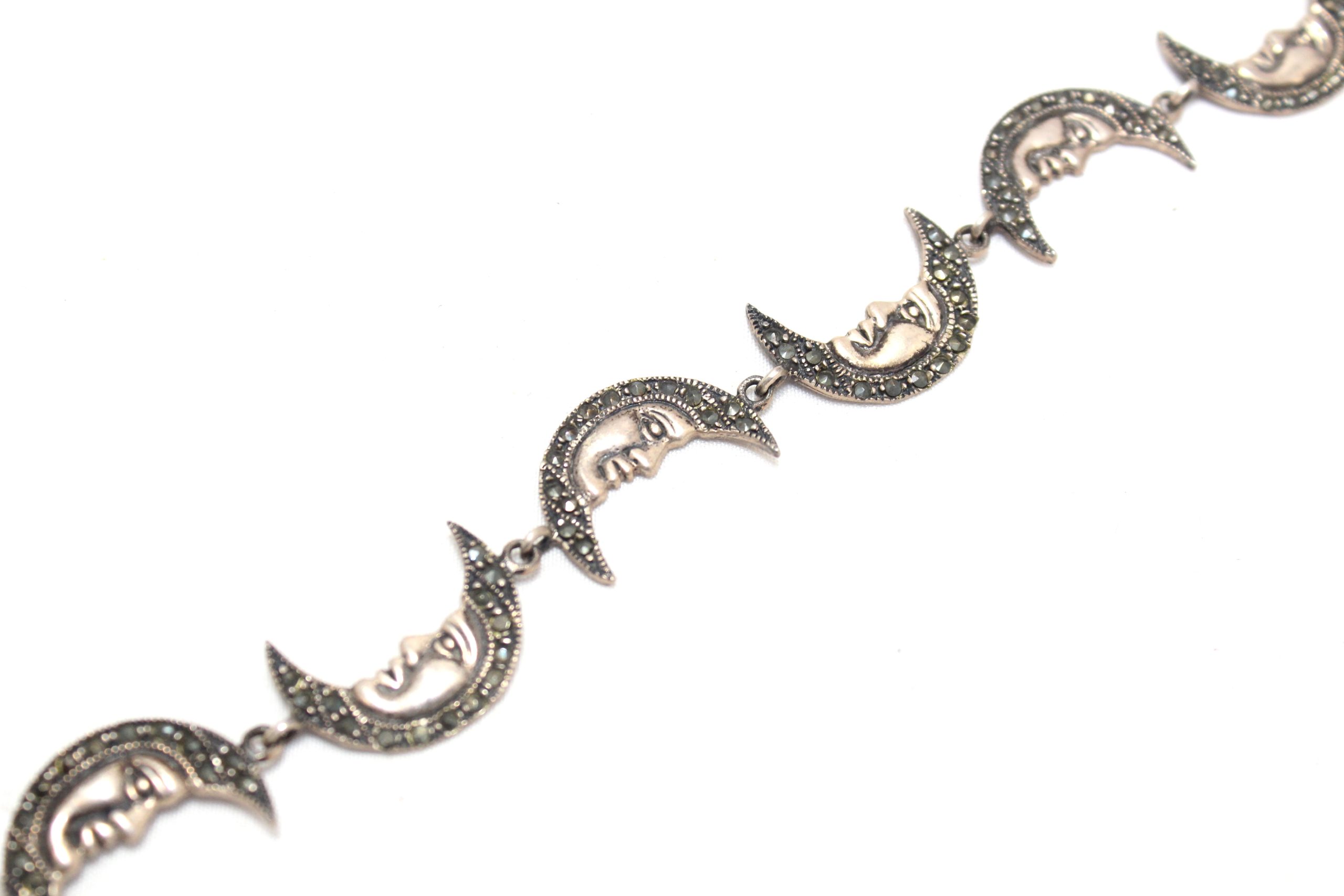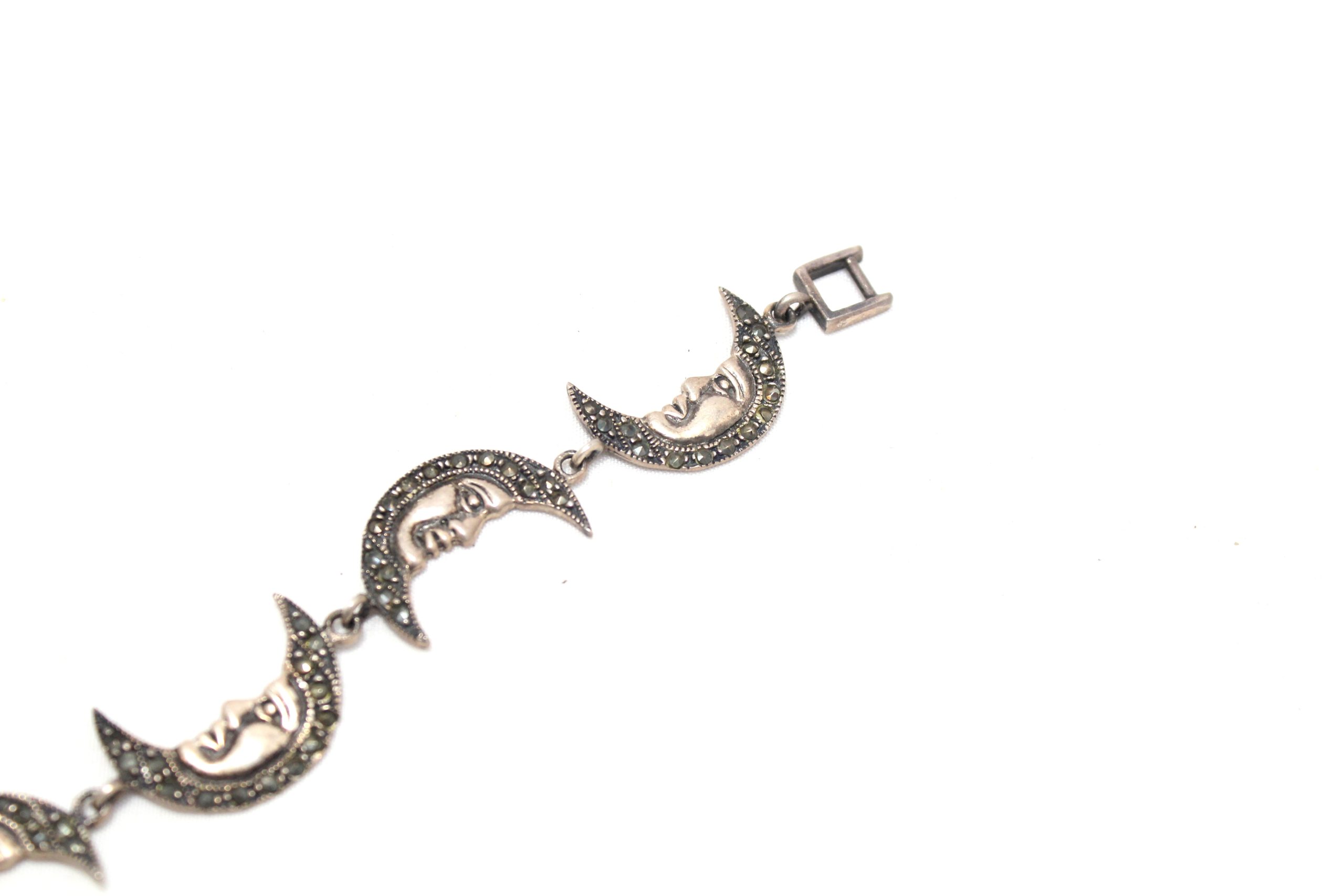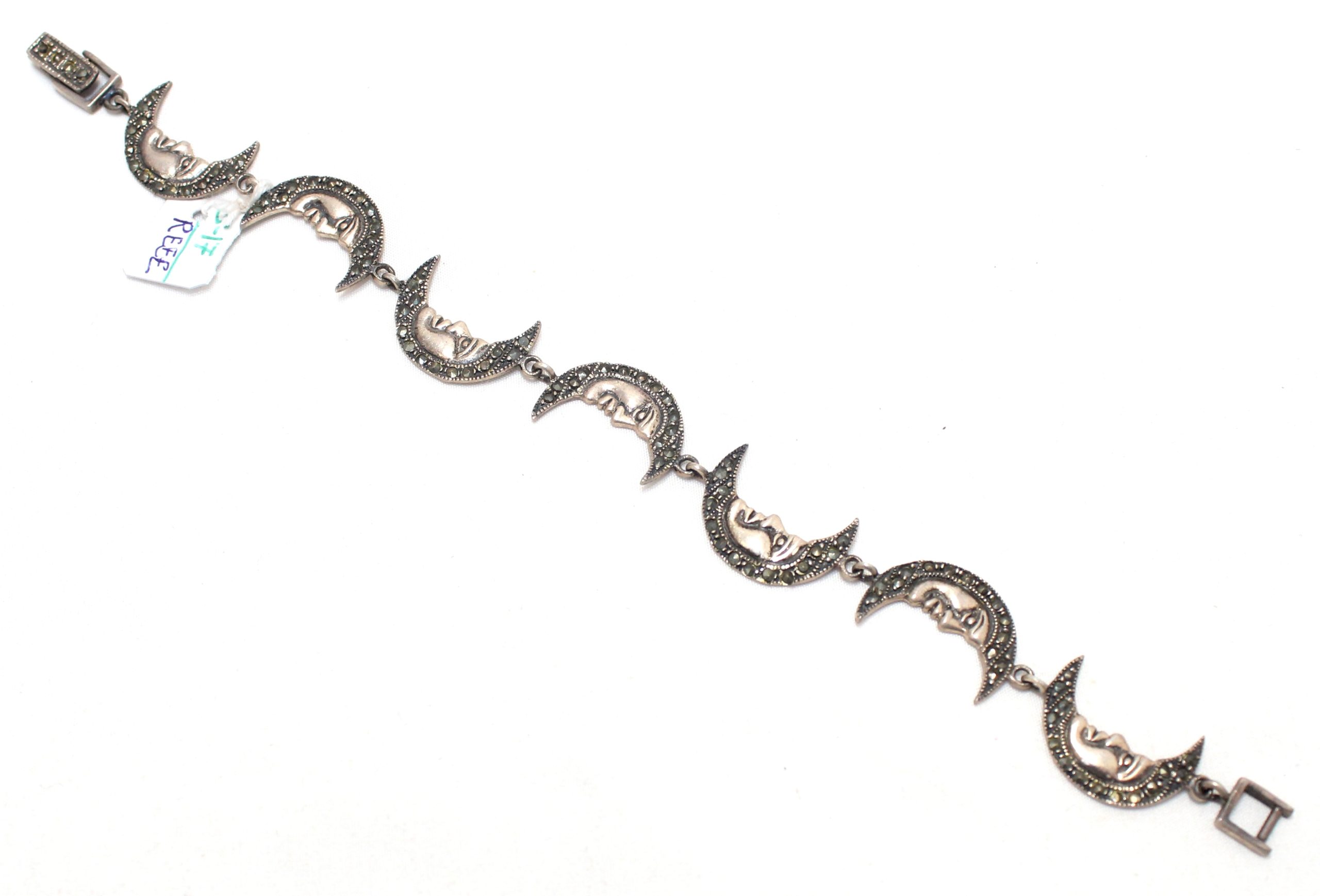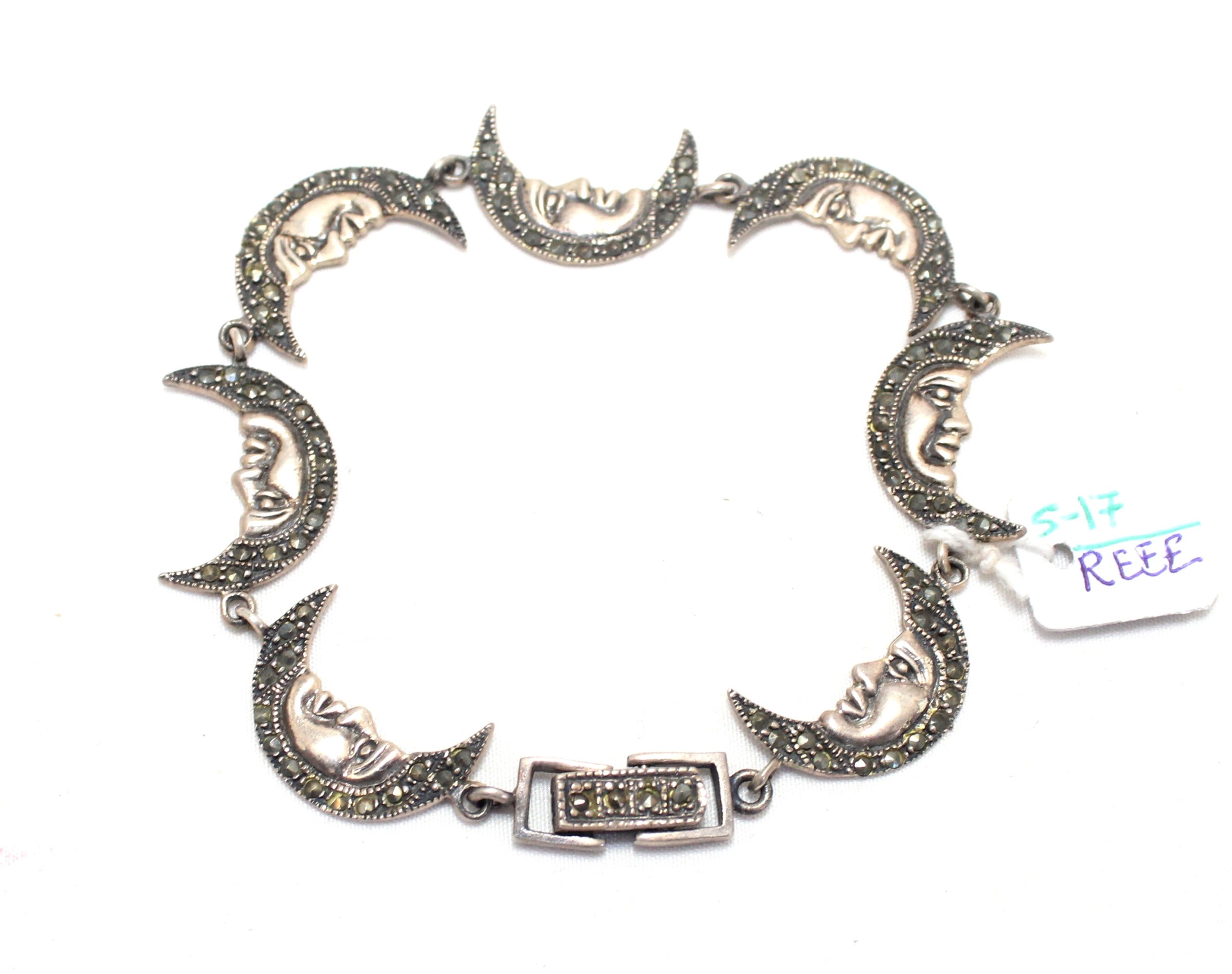 Rajasthan Gems Charm Half Moon Bracelet Silver Sterling 925 Jewelry Marcasite Stone Women Handmade Gift F955