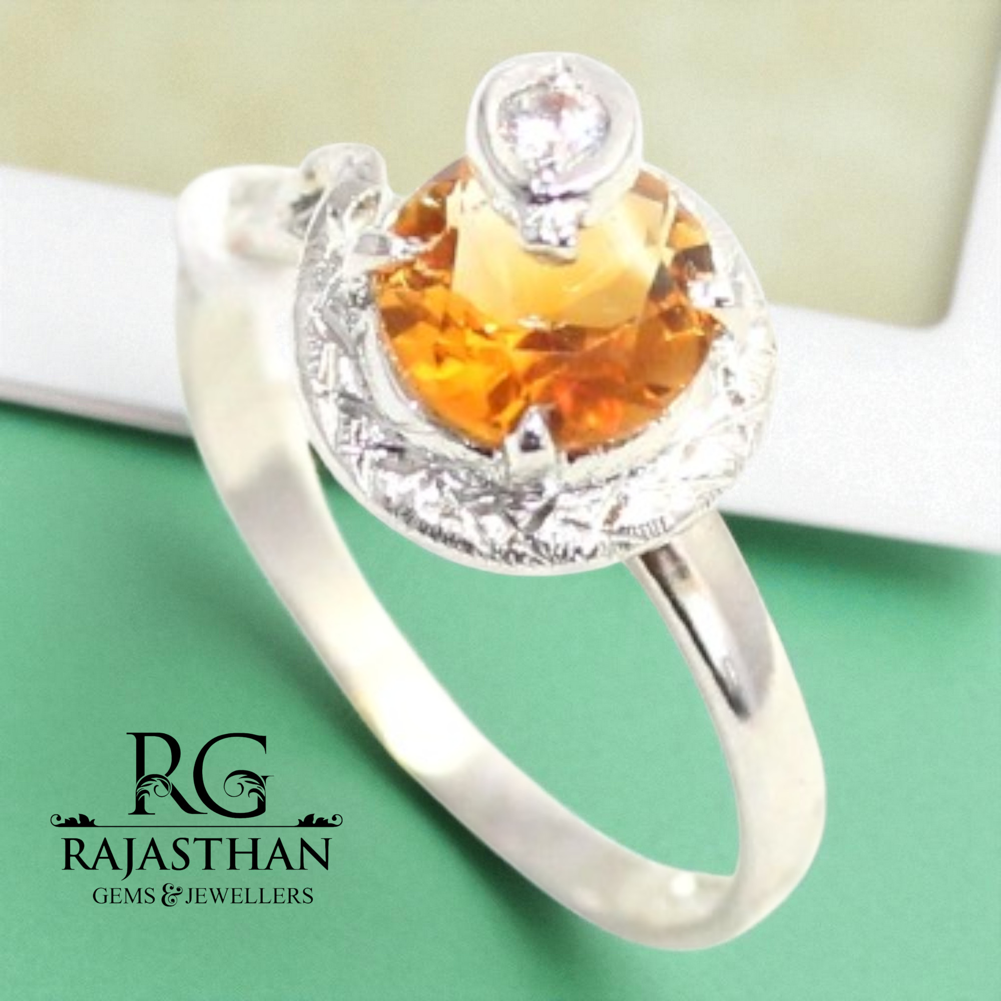 Rajasthan Gems Cobra Snake Ring 925 Sterling Silver Natural Golden Topaz & Cubic Zirconia CZ Stone Unisex Women Men Handmade Gift G392