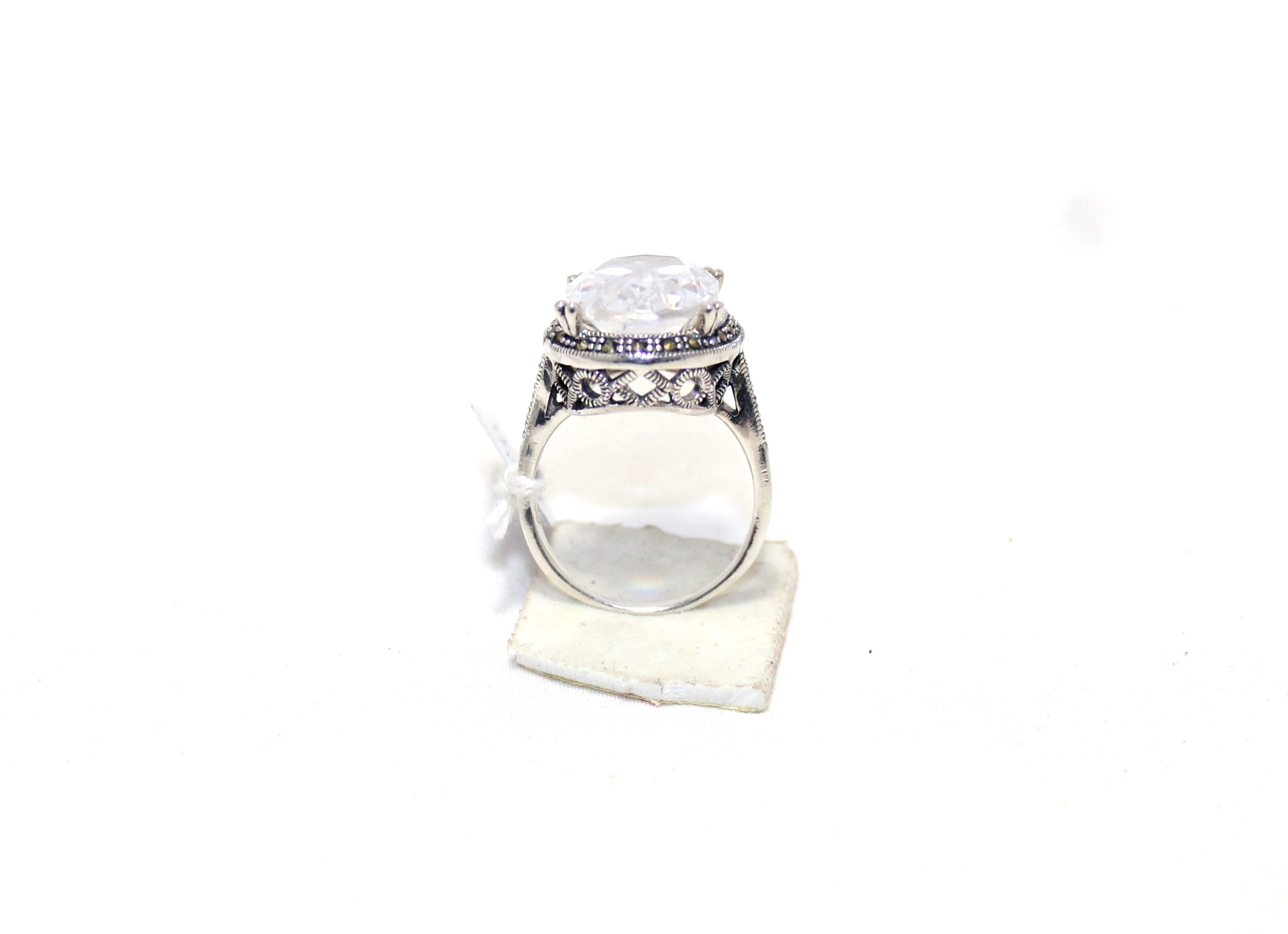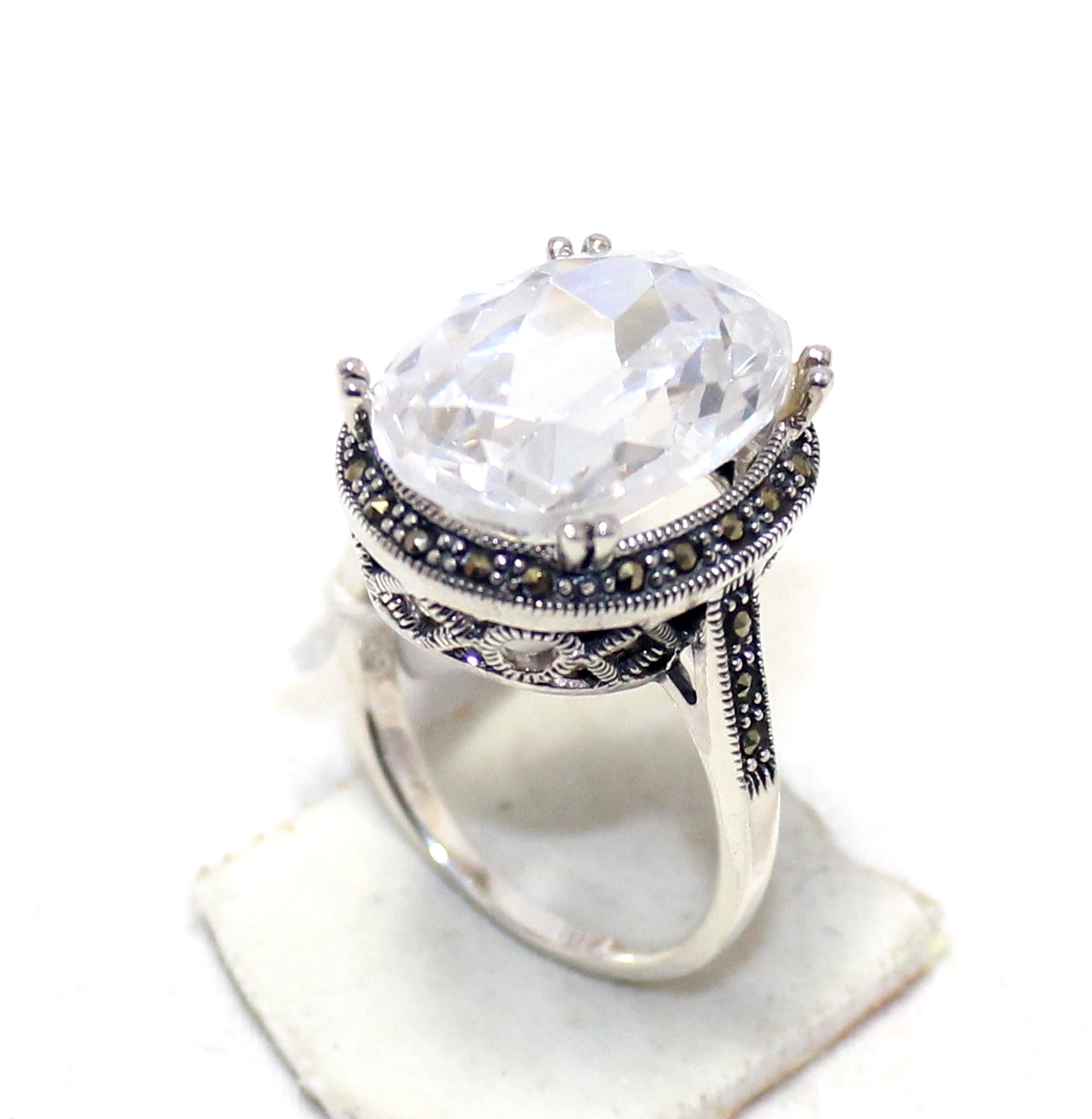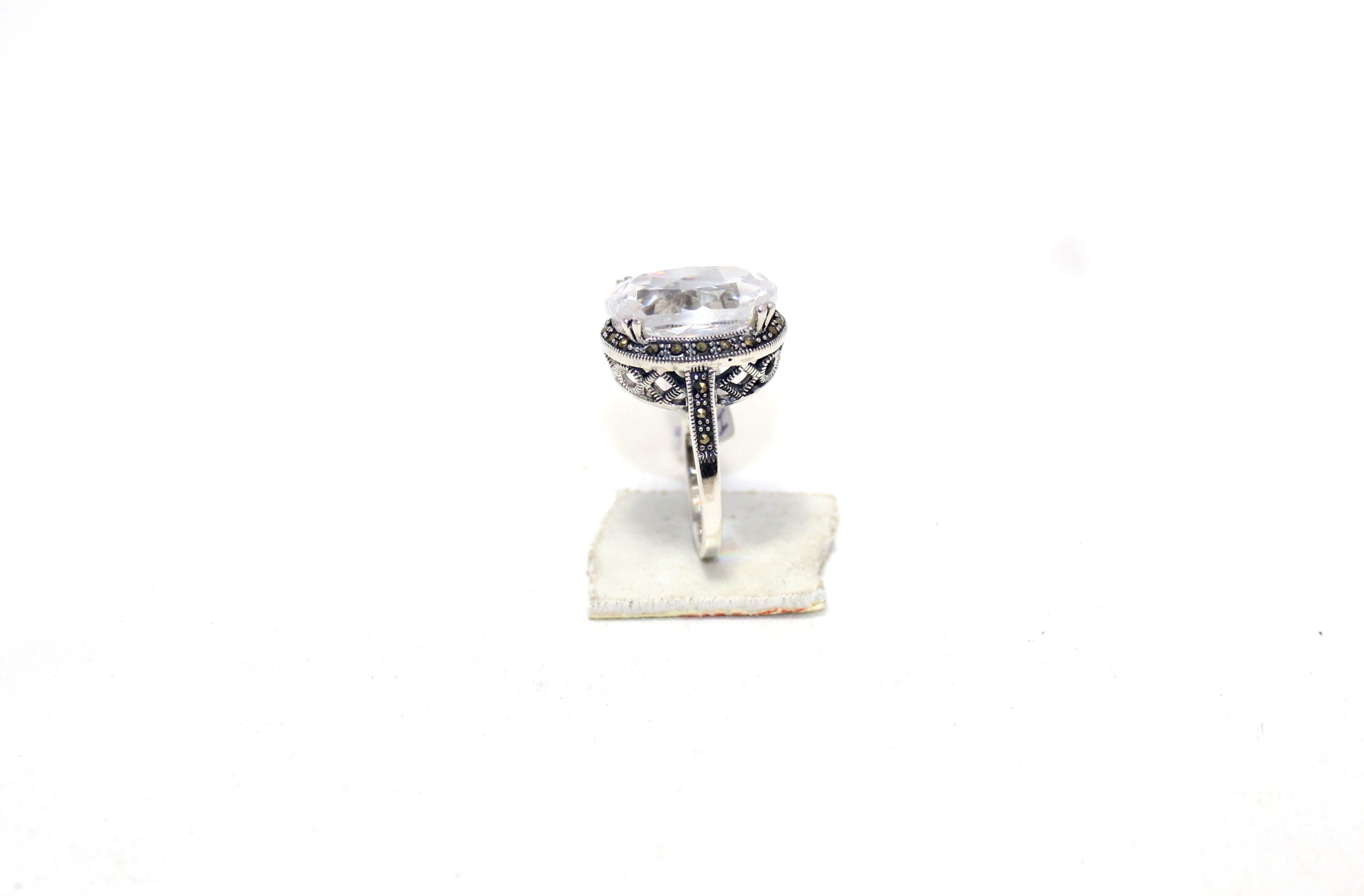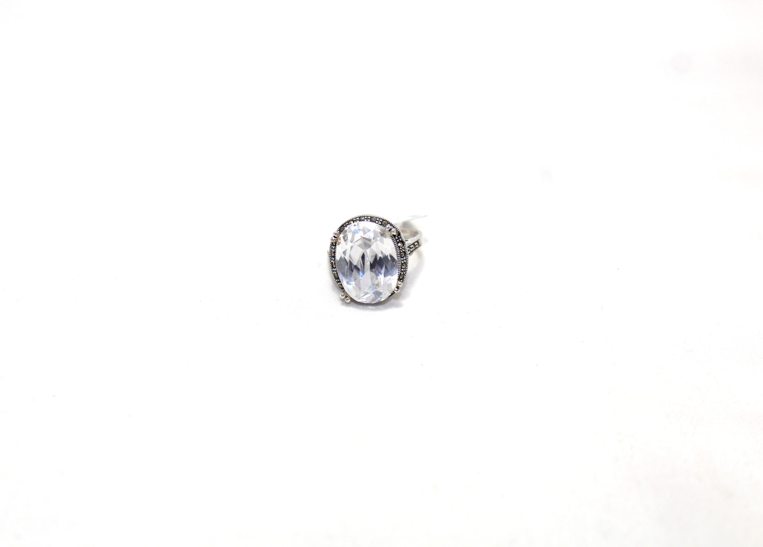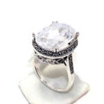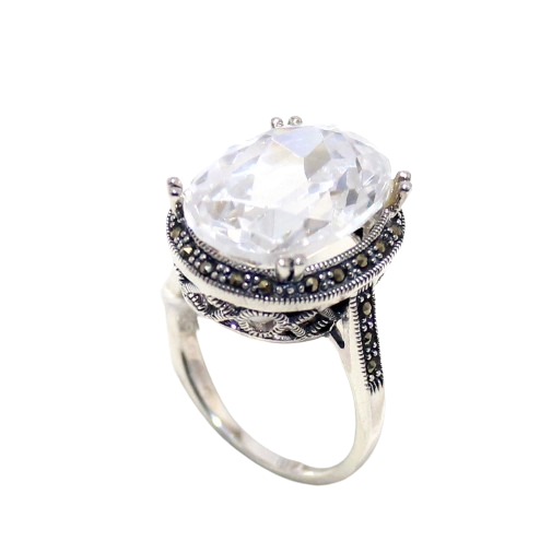 Rajasthan Gems Cocktail Ring Silver 925 Sterling Cubic Zirconia CZ Zircon & Marcasite Stone Handmade Women Gift H658