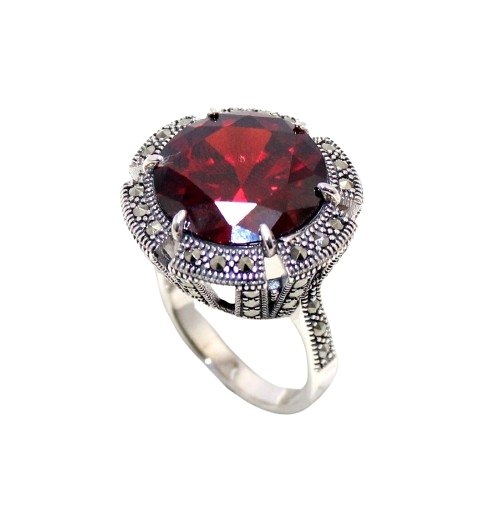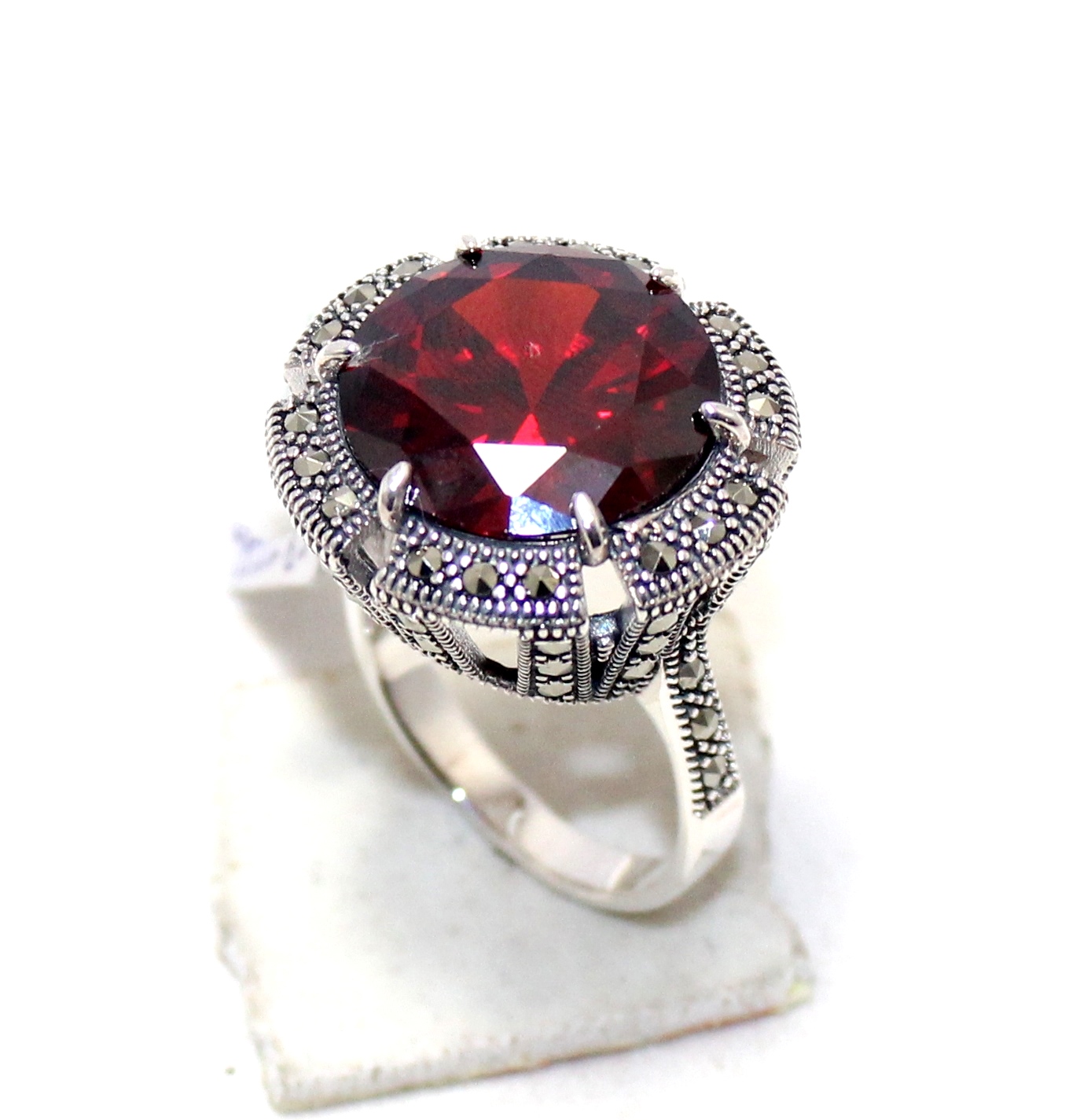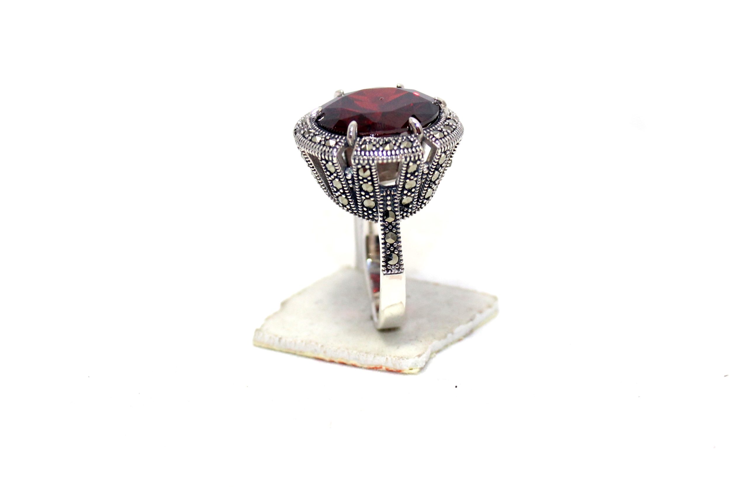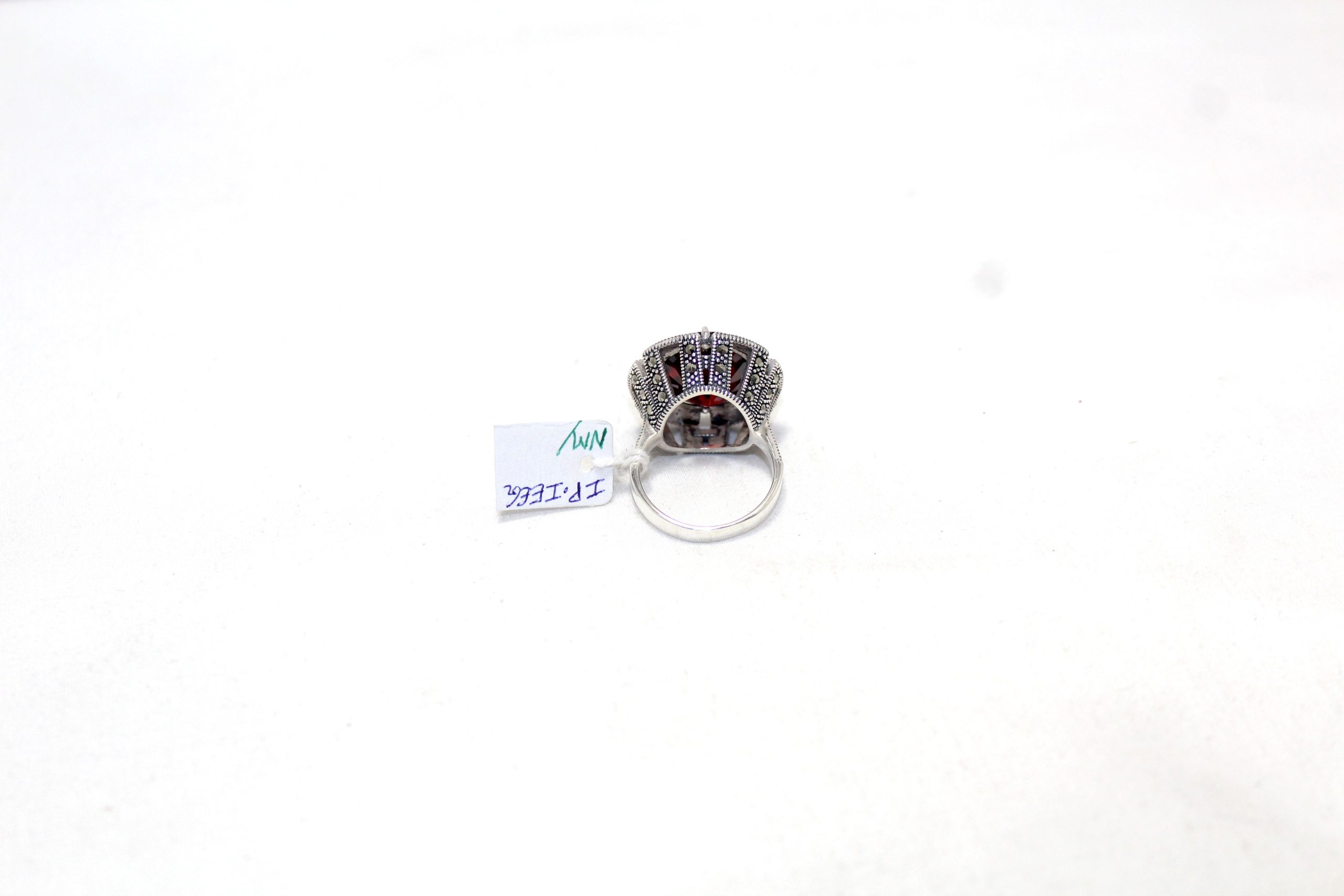 Rajasthan Gems Cocktail Ring Silver 925 Sterling Cubic Zirconia CZ Zircon & Marcasite Stone Handmade Women Gift H663