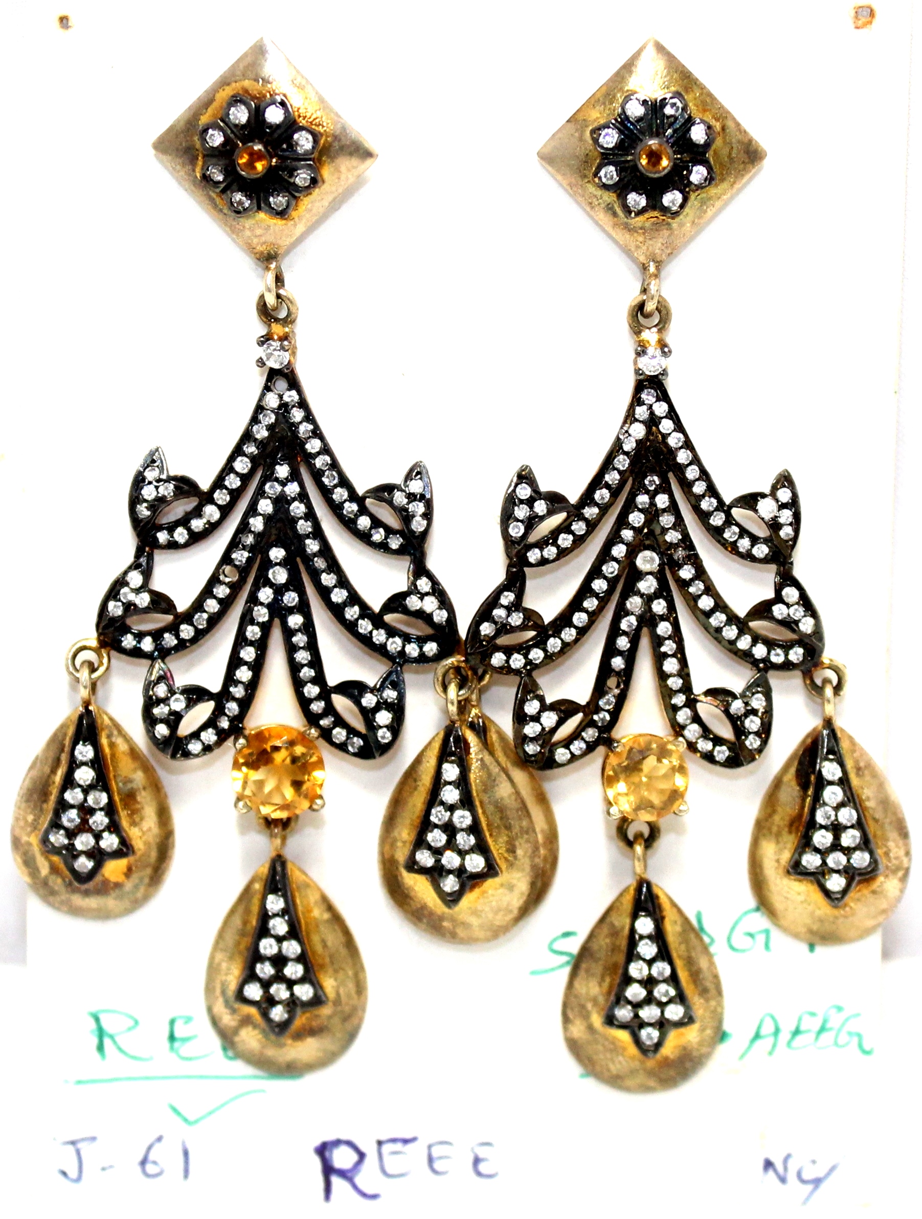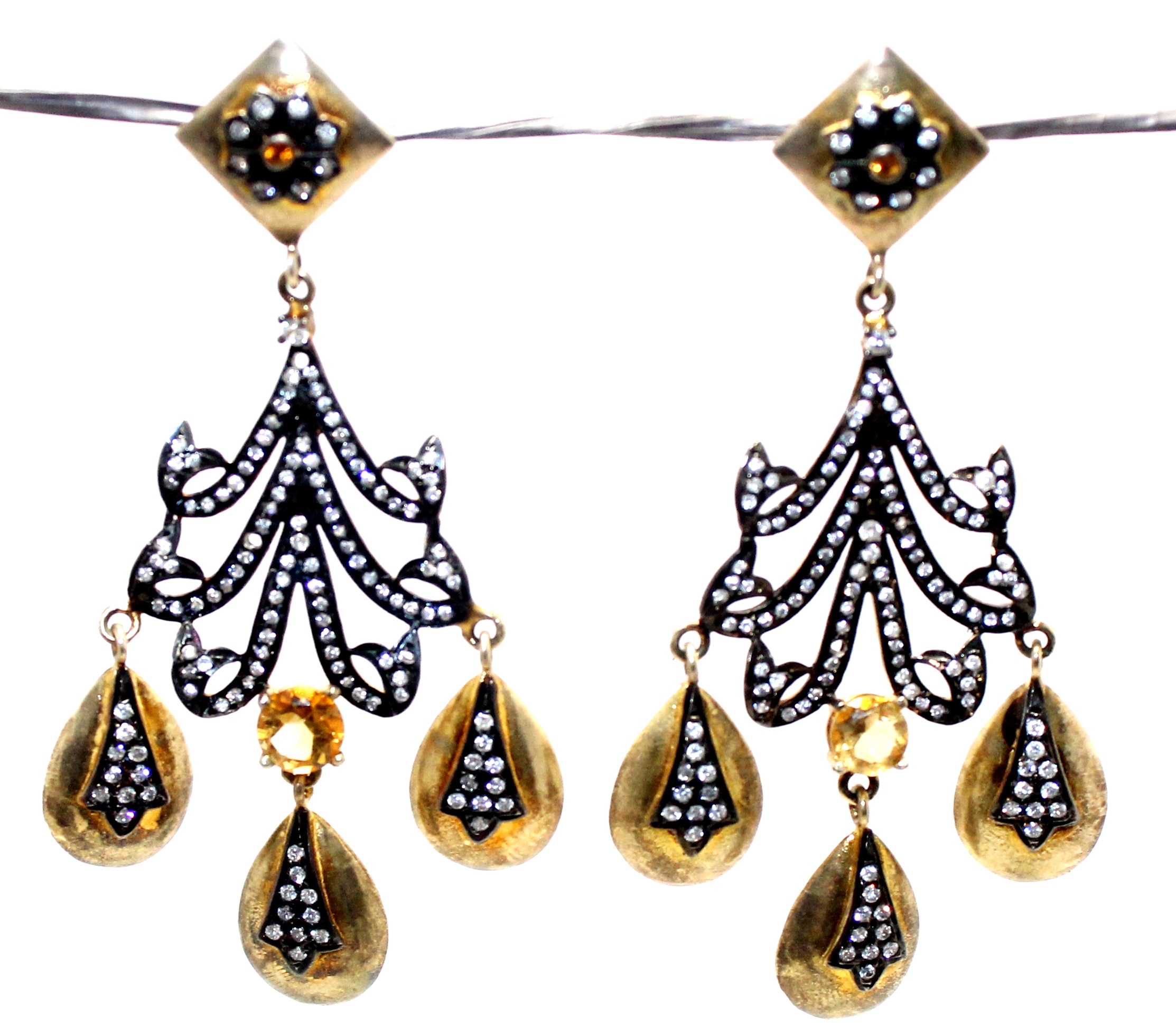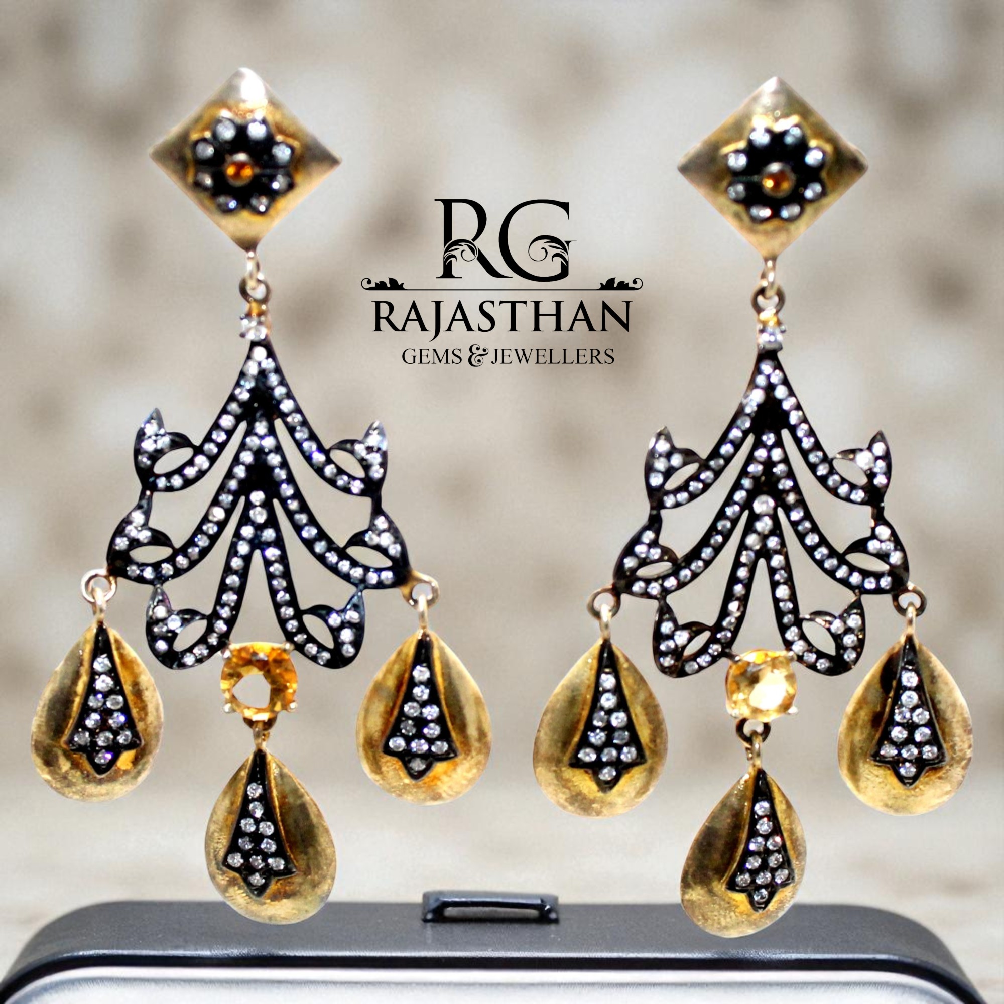 Rajasthan Gems Dangle Earrings 925 Sterling Silver Gold Rhodium Designer Natural Golden Topaz Gemstone & Cubic Zirconia CZ Stone Handmade Gift Women G793