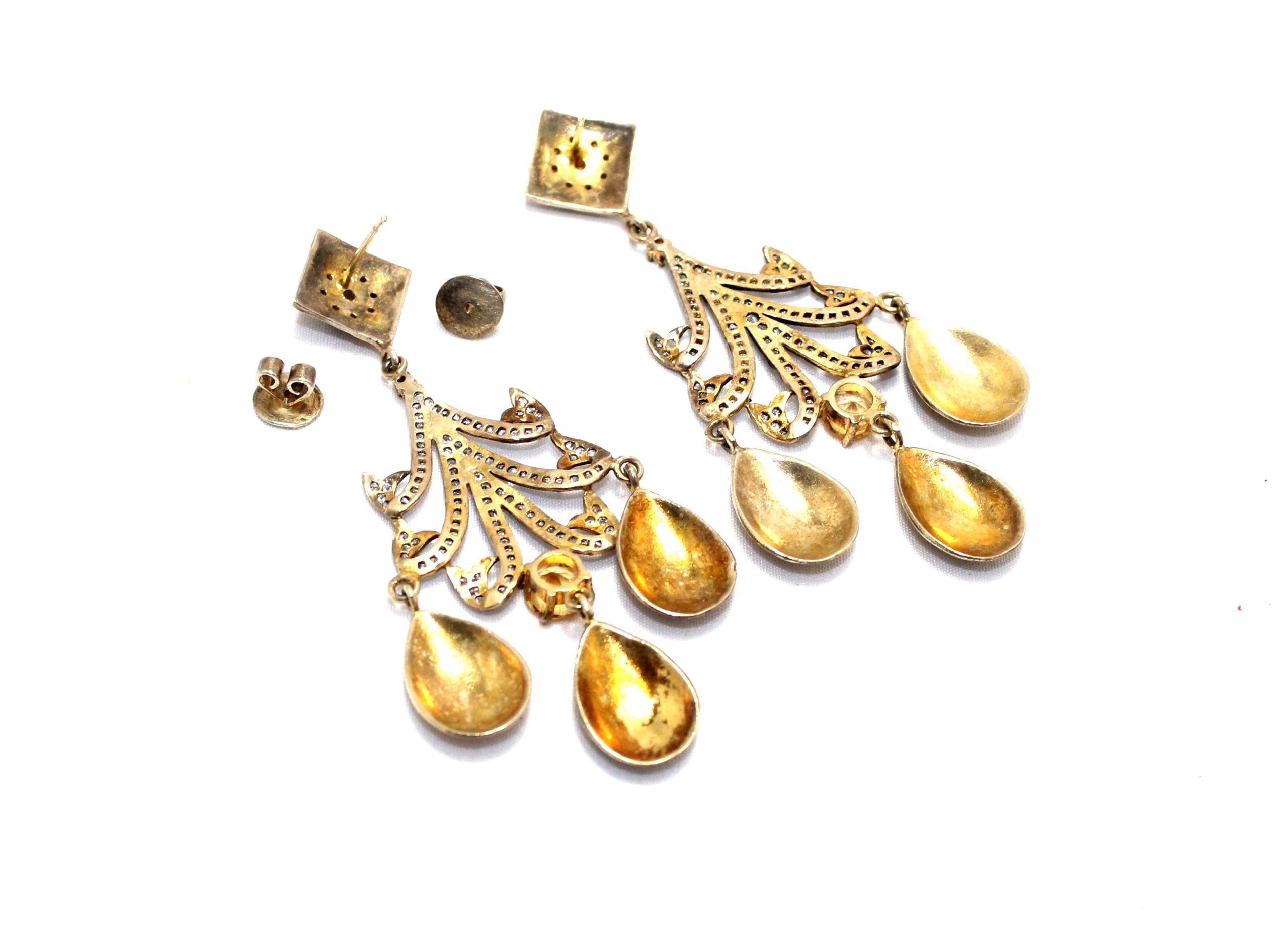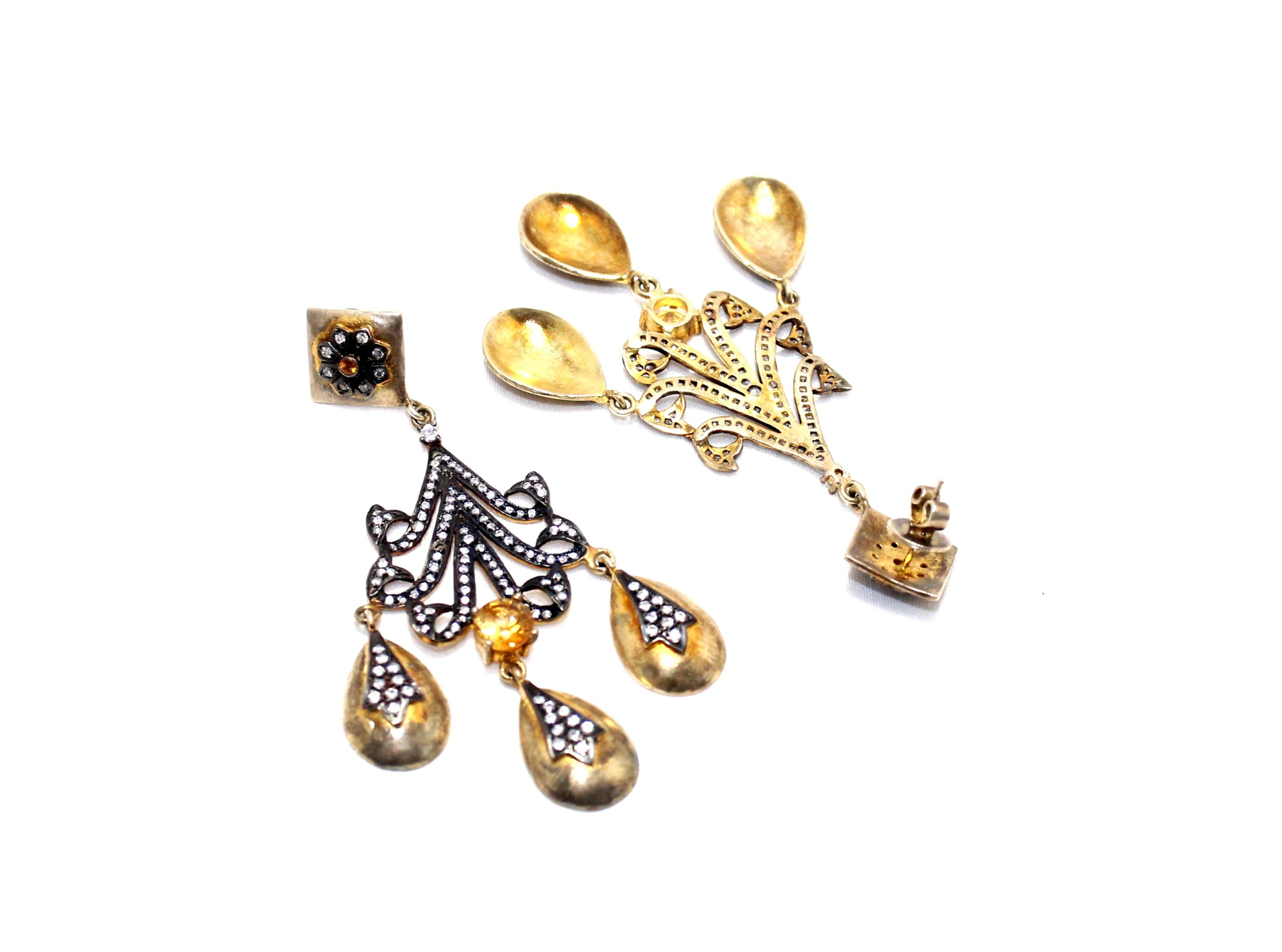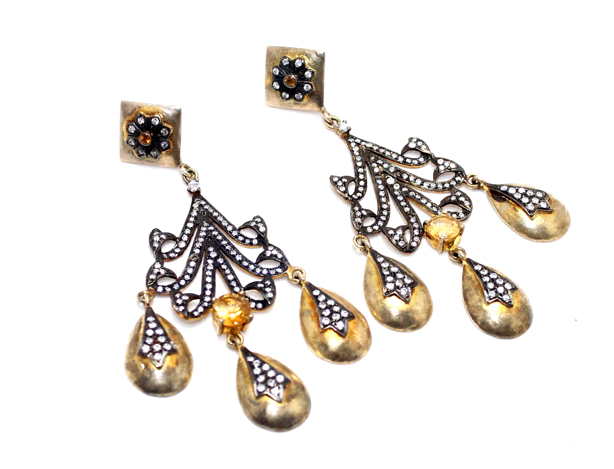 Rajasthan Gems Dangle Earrings 925 Sterling Silver Gold Rhodium Designer Natural Golden Topaz Gemstone & Cubic Zirconia CZ Stone Handmade Gift Women G793