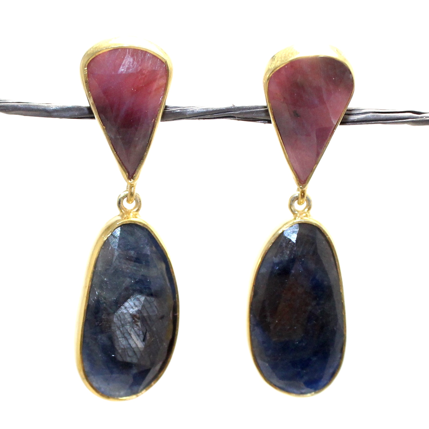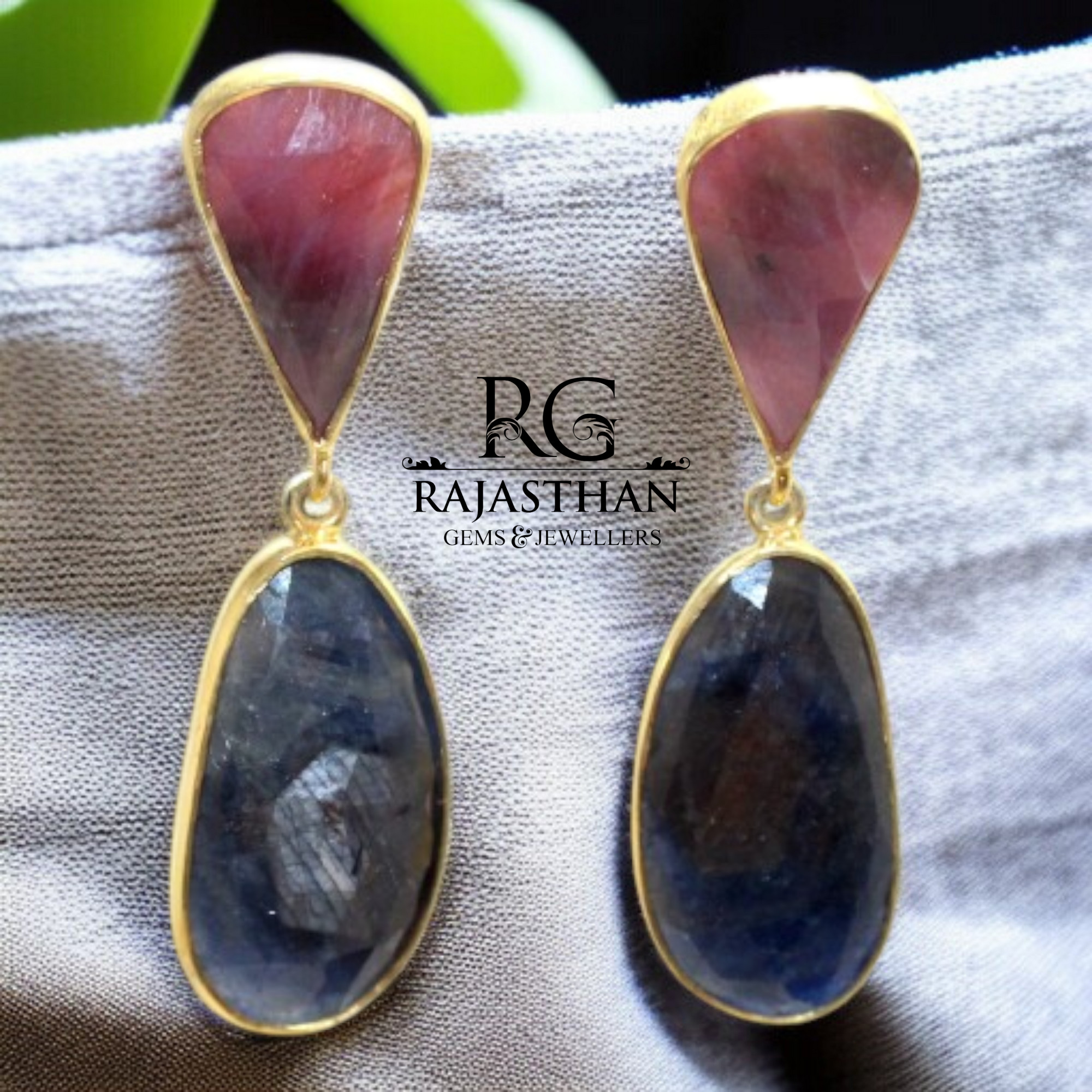 Home » Shop » Rajasthan Gems Dangle Earrings 925 Sterling Silver Gold Rhodium Designer Natural Multi Sapphire Gem Stone Gemstone Handmade Gift Women G634