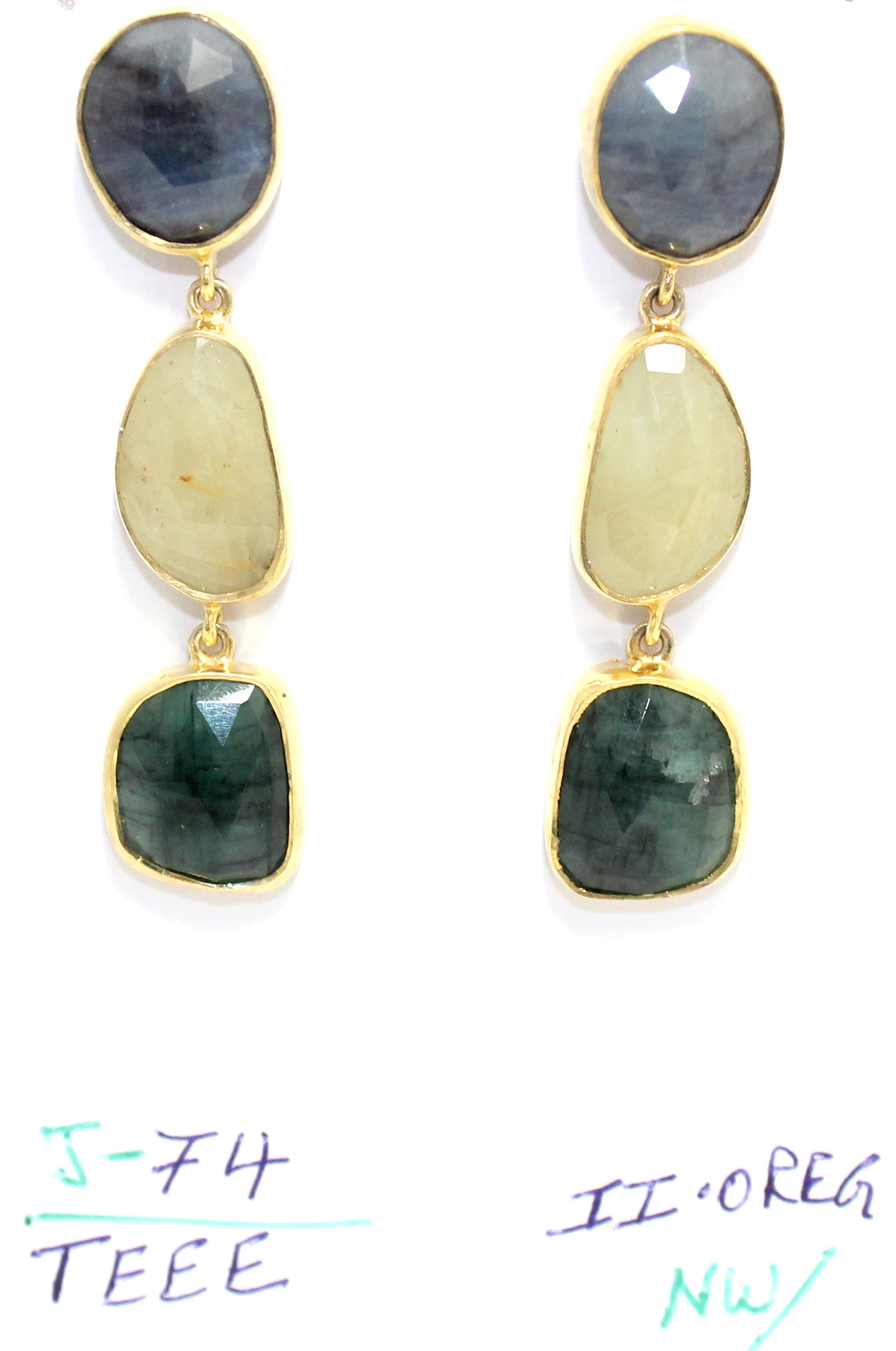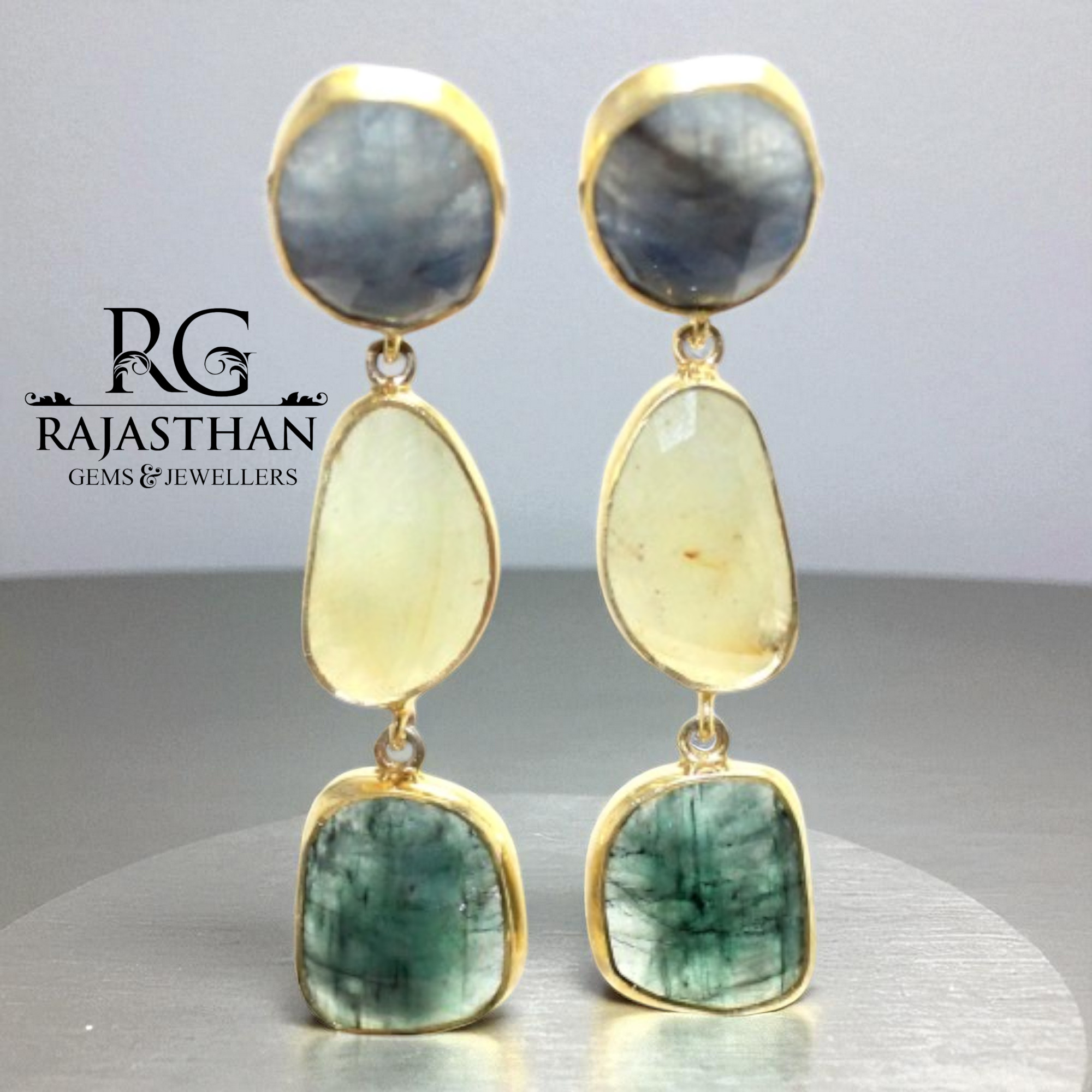 Rajasthan Gems Dangle Earrings 925 Sterling Silver Gold Rhodium Designer Natural Multi Sapphire Gem Stone Gemstone Handmade Gift Women G642