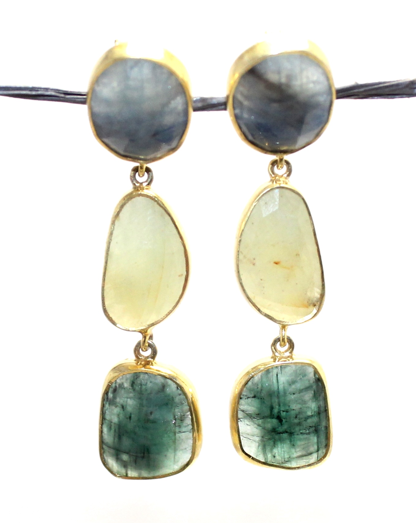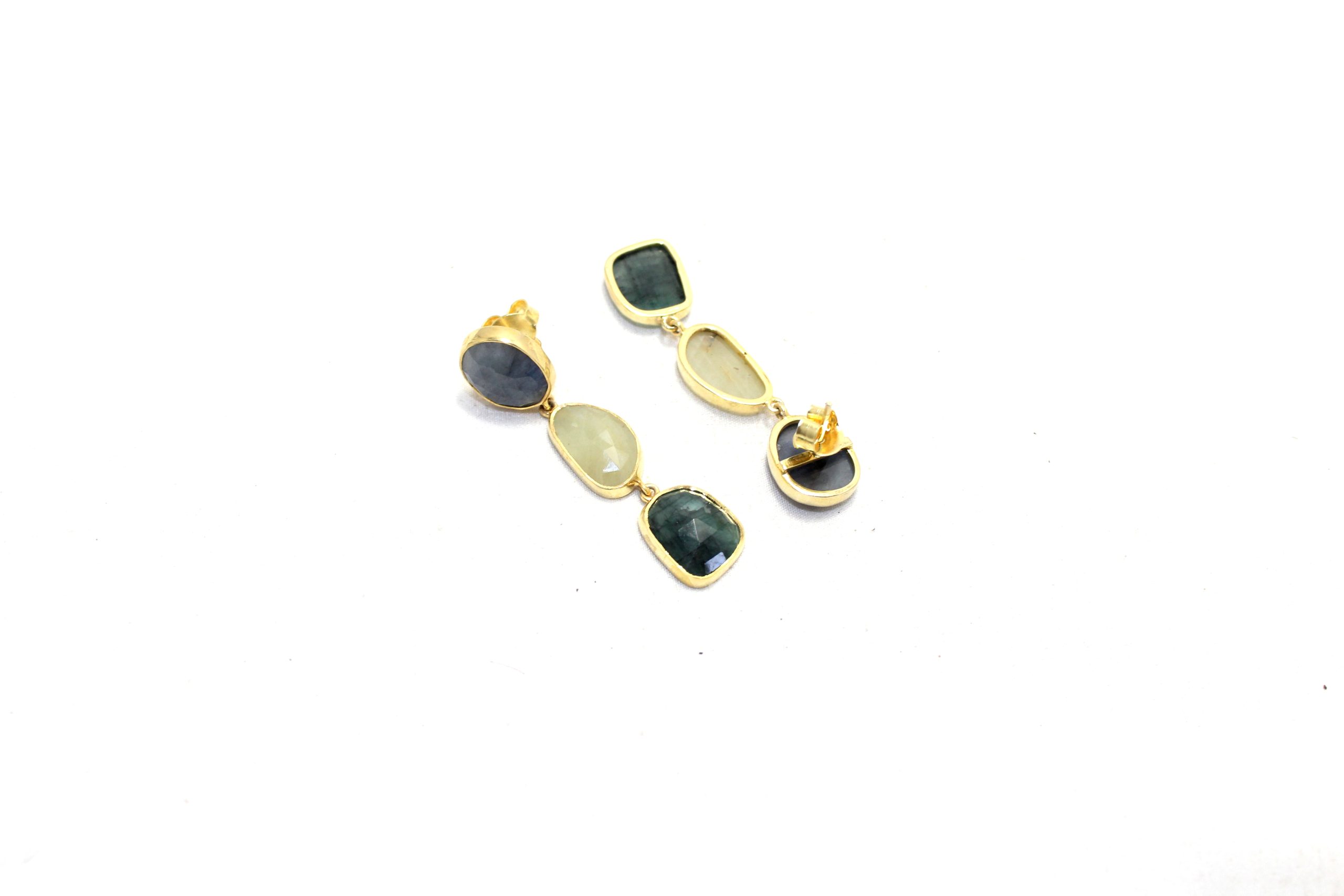 Home » Shop » Rajasthan Gems Dangle Earrings 925 Sterling Silver Gold Rhodium Designer Natural Multi Sapphire Gem Stone Gemstone Handmade Gift Women G642