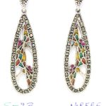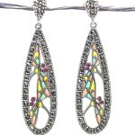 Rajasthan Gems Dangle Earrings 925 Sterling Silver Marcasite & Red Onyx Gem Stone Enamel Meena Work Handmade Women Gift H532
