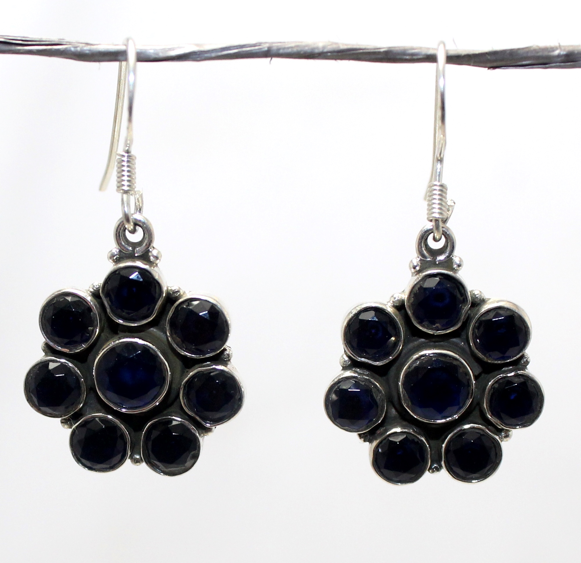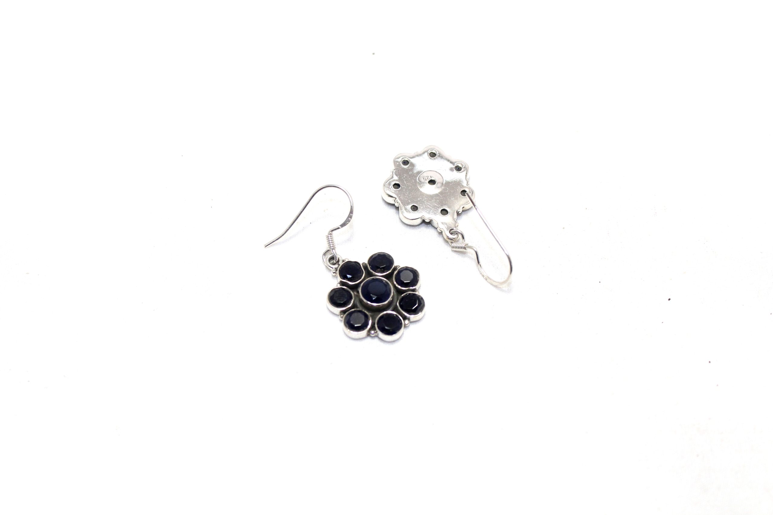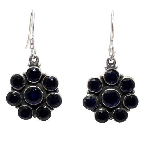 Rajasthan Gems Dangle Earrings 925 Sterling Silver Natural Blue Onyx Gem Stone Handmade Women Gift H607