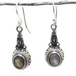 Rajasthan Gems Dangle Earrings 925 Sterling Silver Natural Labradorite Gem Stone Handmade Traditional Women Gift G857